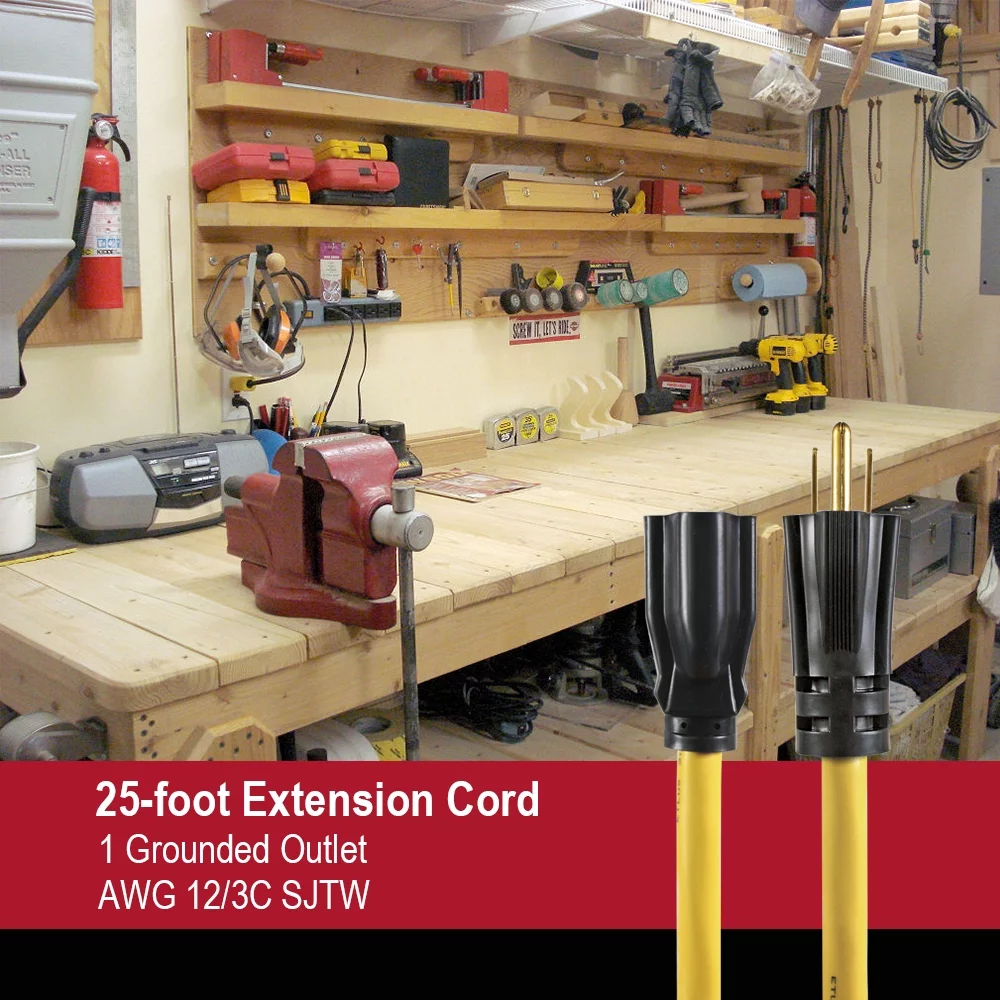 Hyper Tough 25FT 12/3 Extension Cord Yellow For Outdoor Use