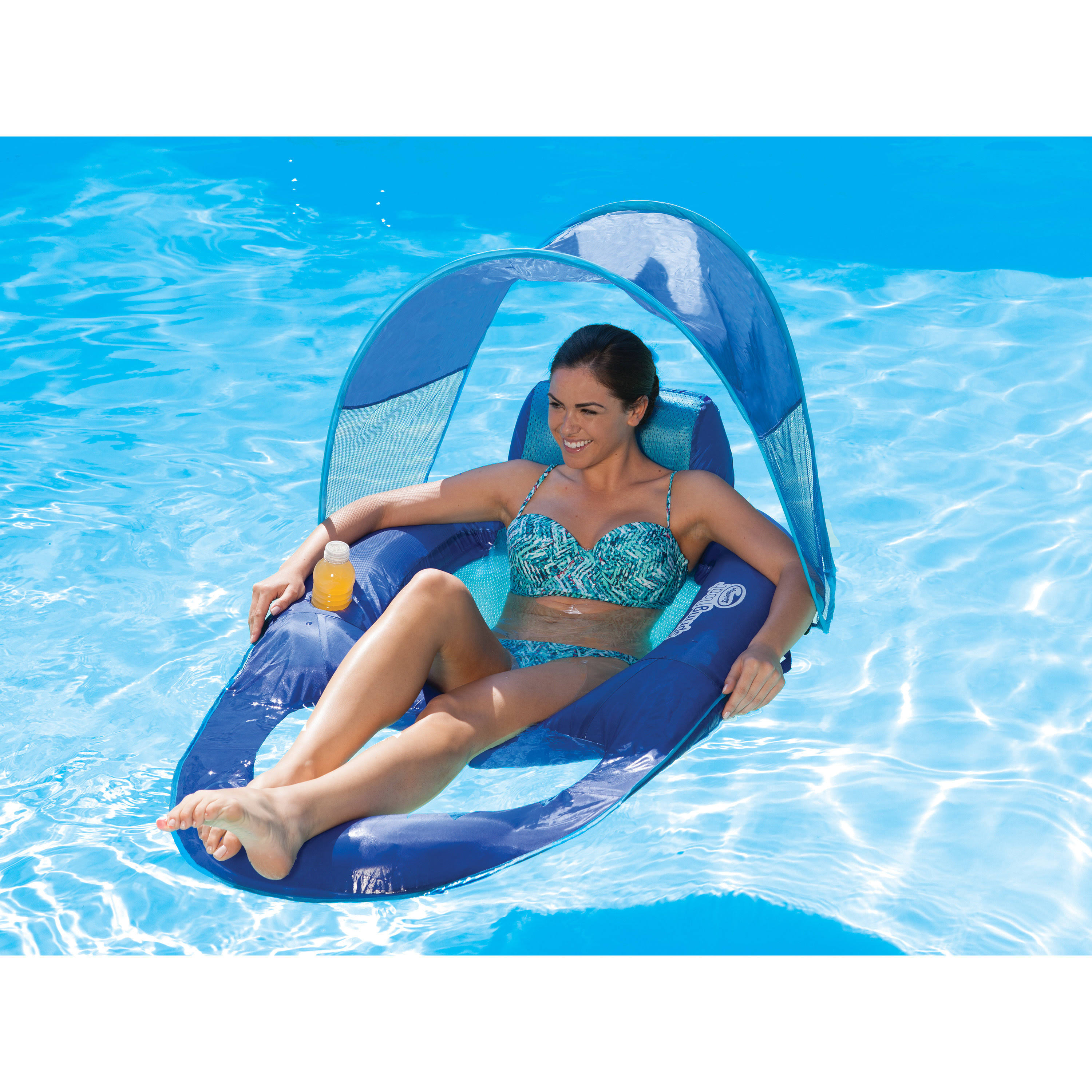 Swimways Spring Pool Float Recliner with Canopy - 2 Pack - Megean
