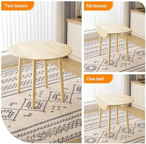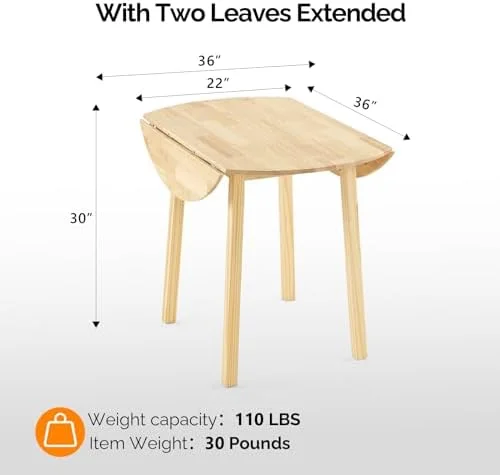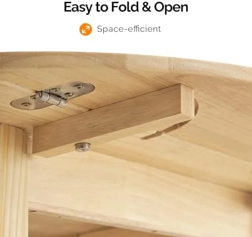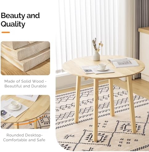 VINGLI 35" Solid Wood Kitchen Table, Drop Leaf Dining Room Desk for Small Spaces, Small Kitchen, Expandable Folding Round Table for Home, Apartment,Office, Light Oak - Curated Treasures Market