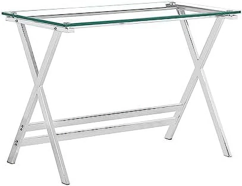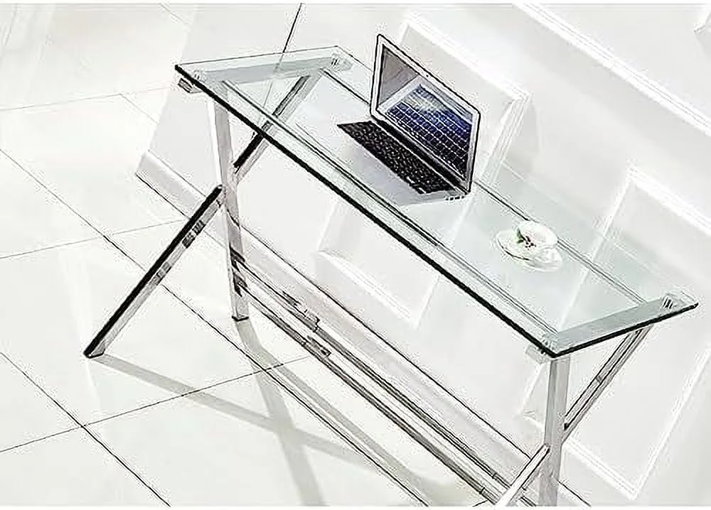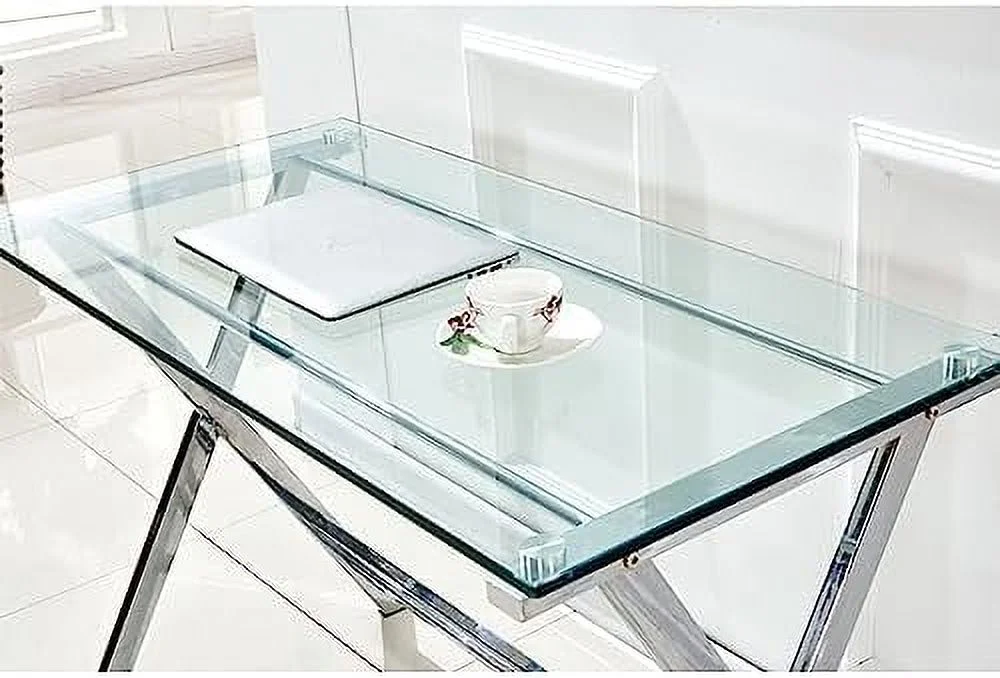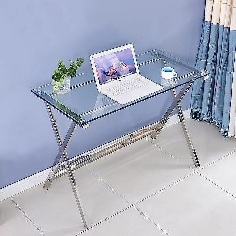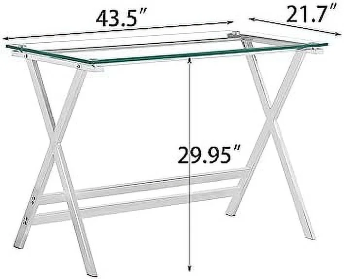 YPDCHB Modern Glass Computer Desk Clear Study Table - Gaming Desks Study Desk and Workstation Table for Small Spaces - Stainless Steel Frame 43.5" x 21.7" x 29.9" - Curated Treasures Market