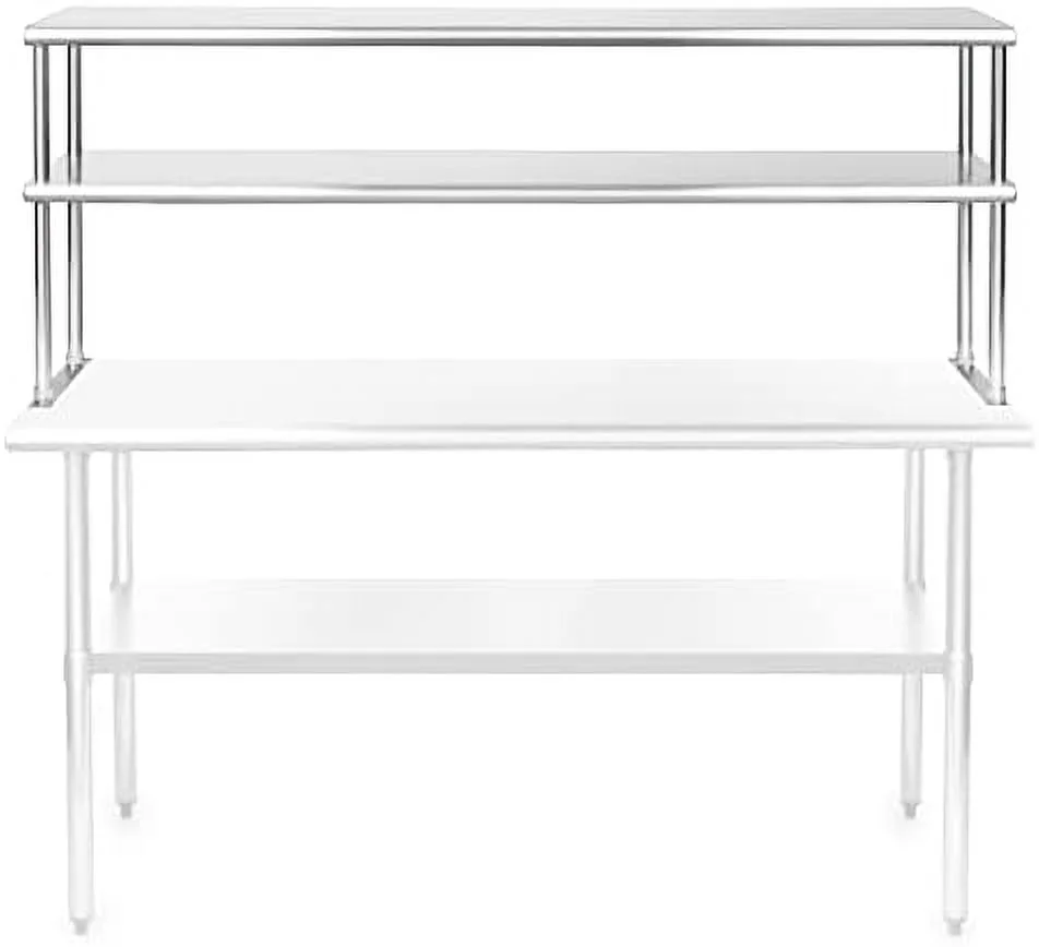 GEROBOOM NSF Stainless Steel Commercial 2 Tier Double Overshelf 48 in. x 12 in. for Kitchen Prep & Work Table - Curated Treasures Market