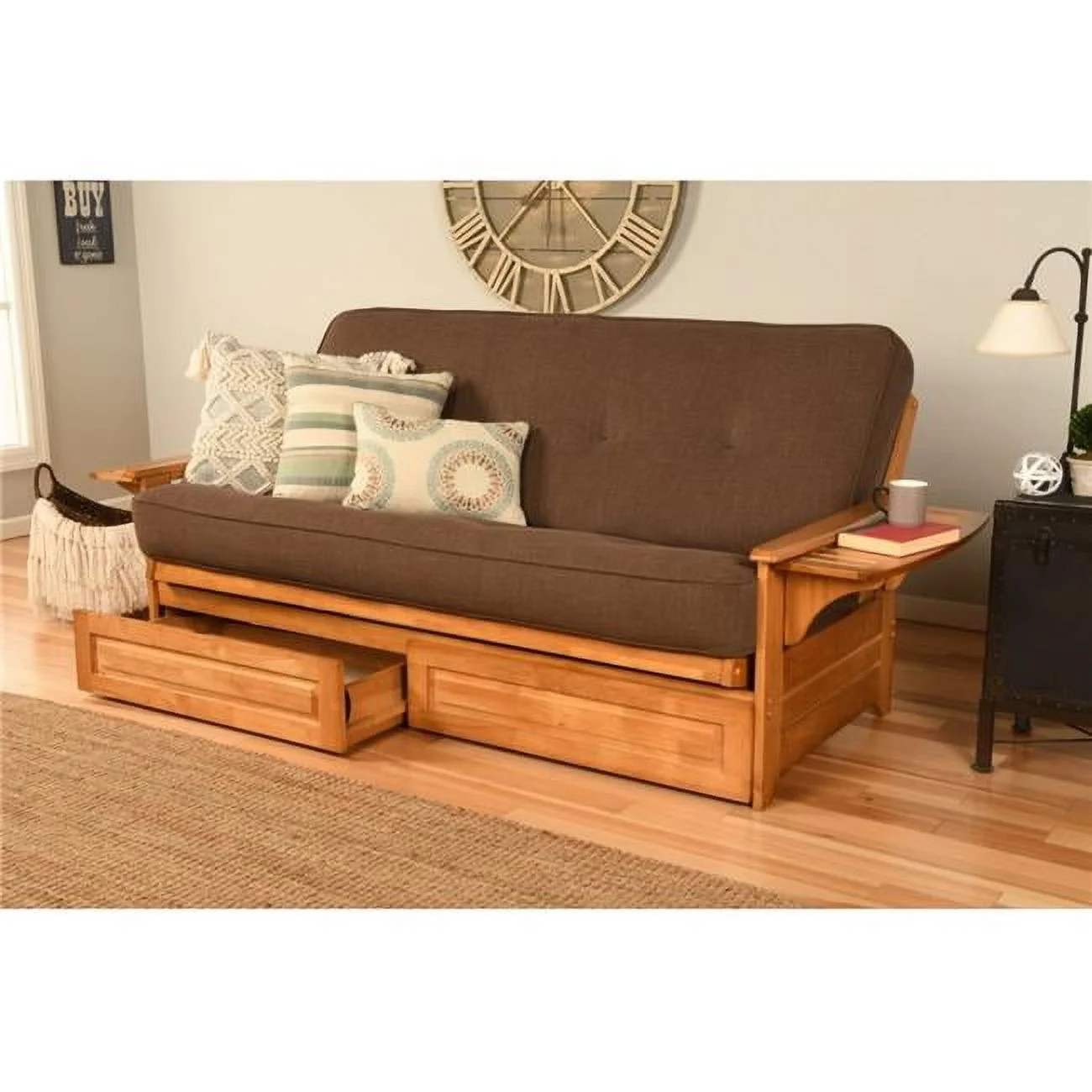 Albany Futon in Rustic Walnut Finish, Multiple Colors - Curated Treasures Market