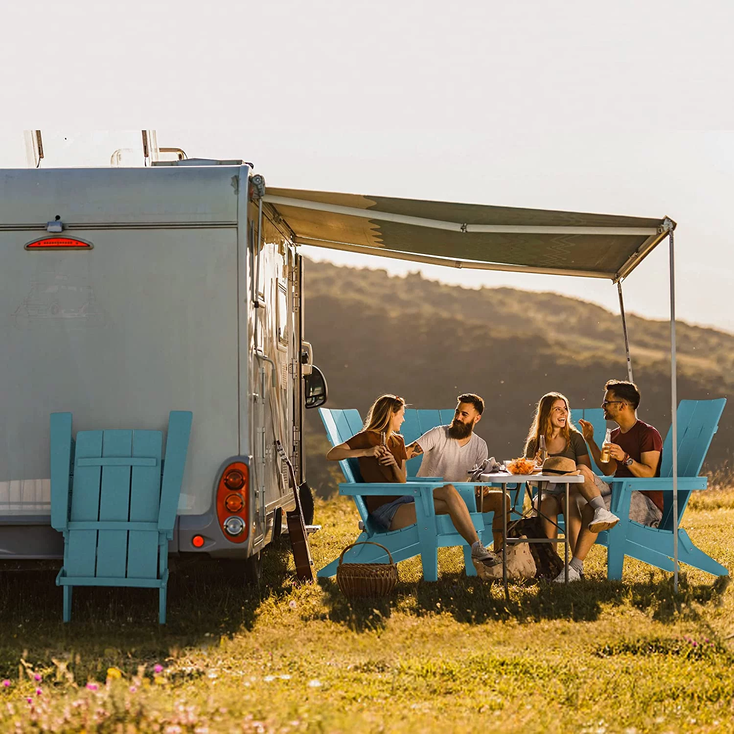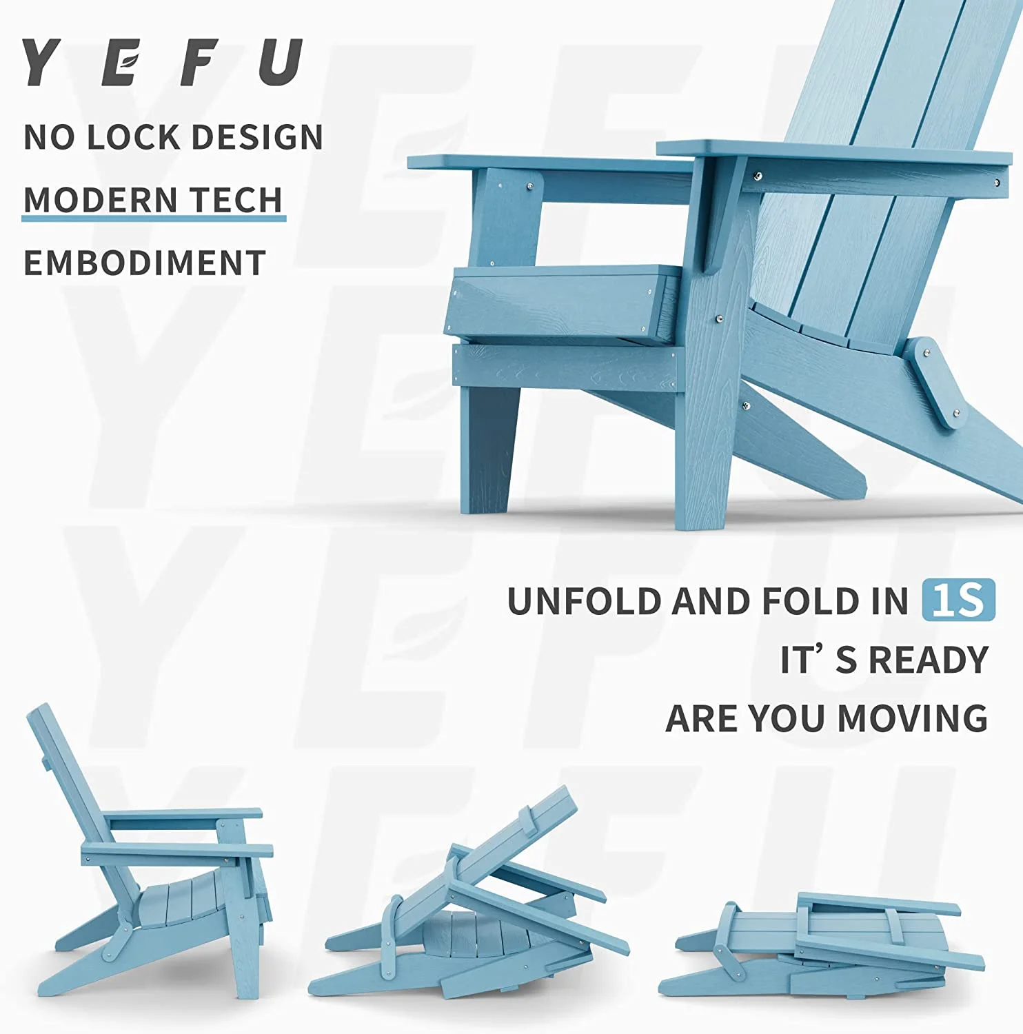 Modern Folding Adirondack Chair Plastic, 1s Expand/Store Upgrade Unlocked Weather-Resistant-Baby Blue - Curated Treasures Market