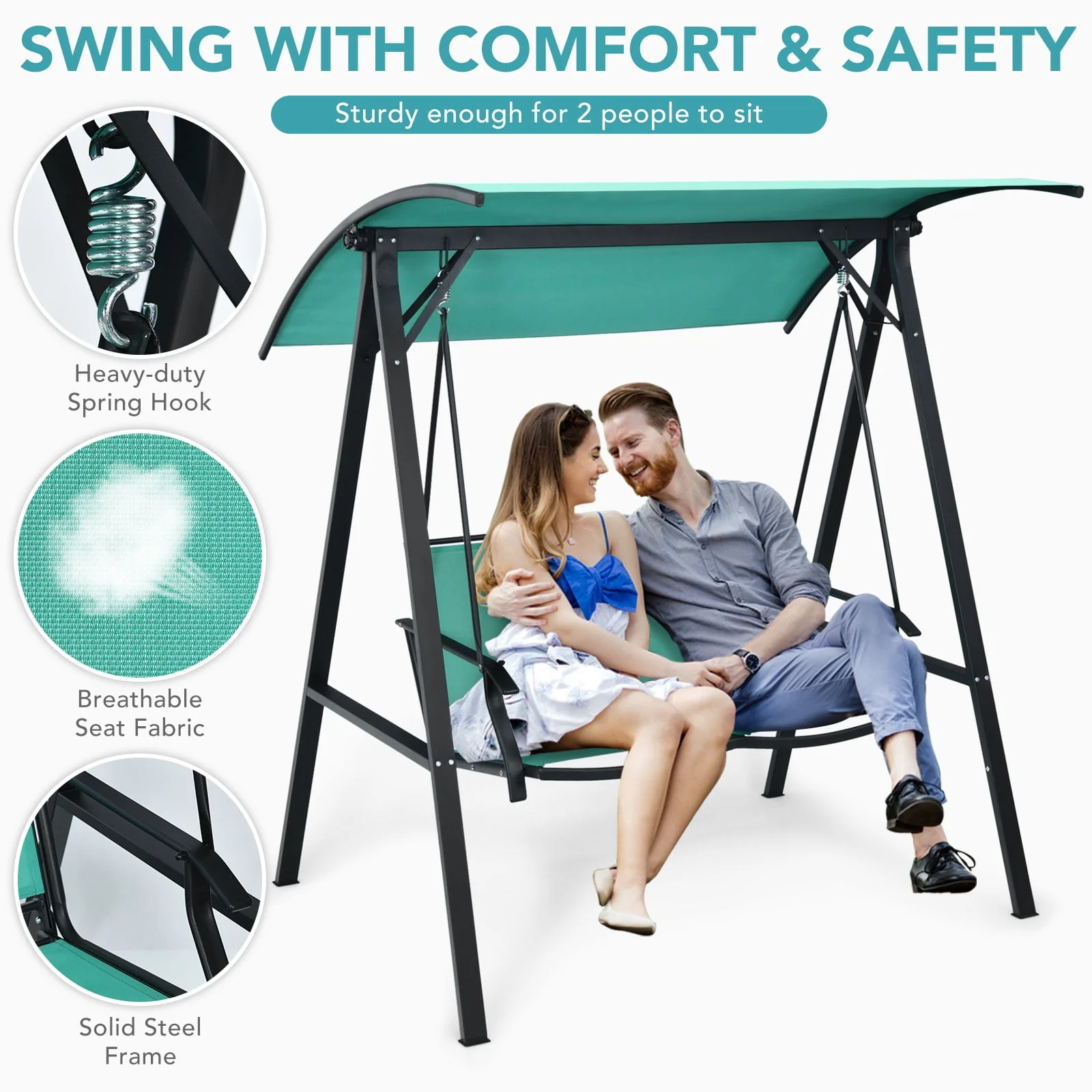 Costway Outdoor 2-Seat Swing Loveseat with Canopy Hanging Swing Beige