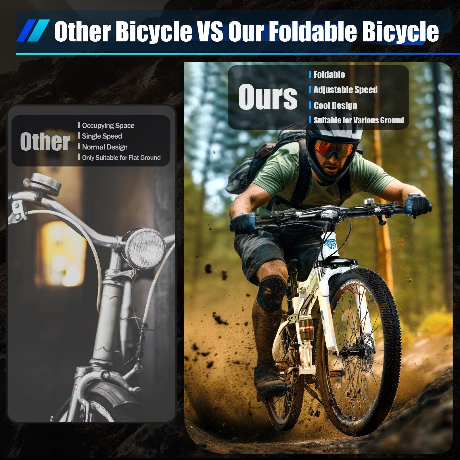 26 Mountain Bike 21-Speed Folding Men Women Bikes Dual Disc Brake MTB Bicycle