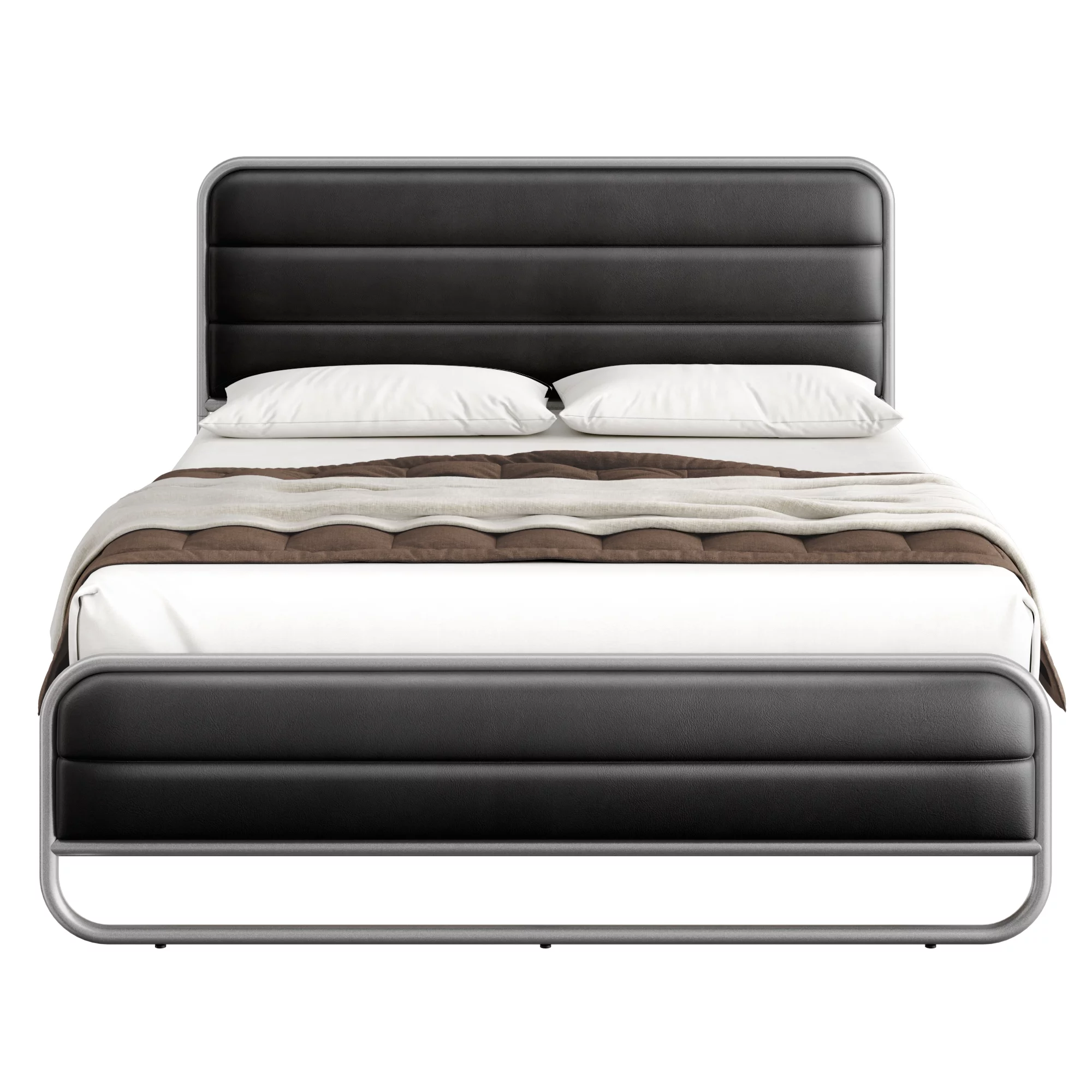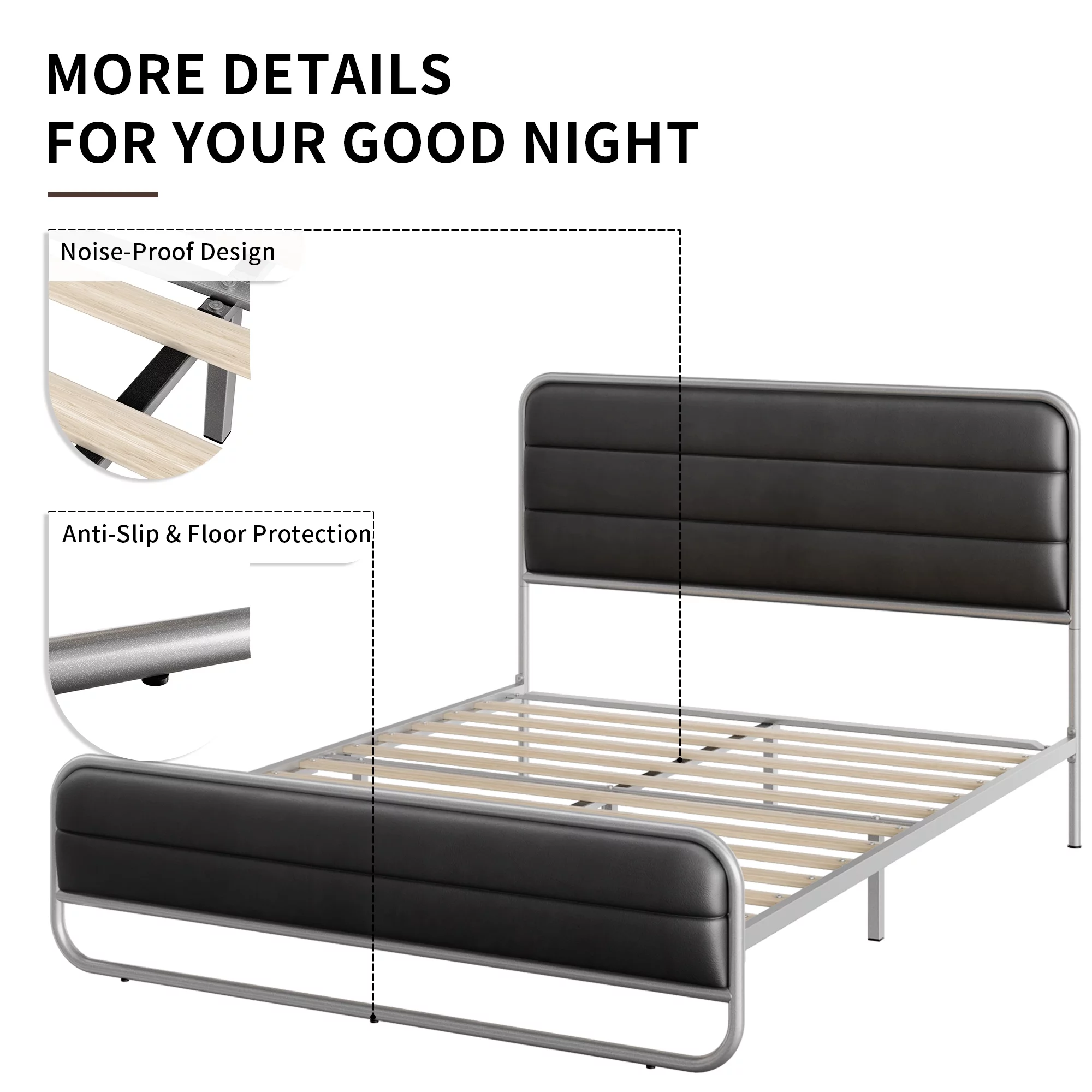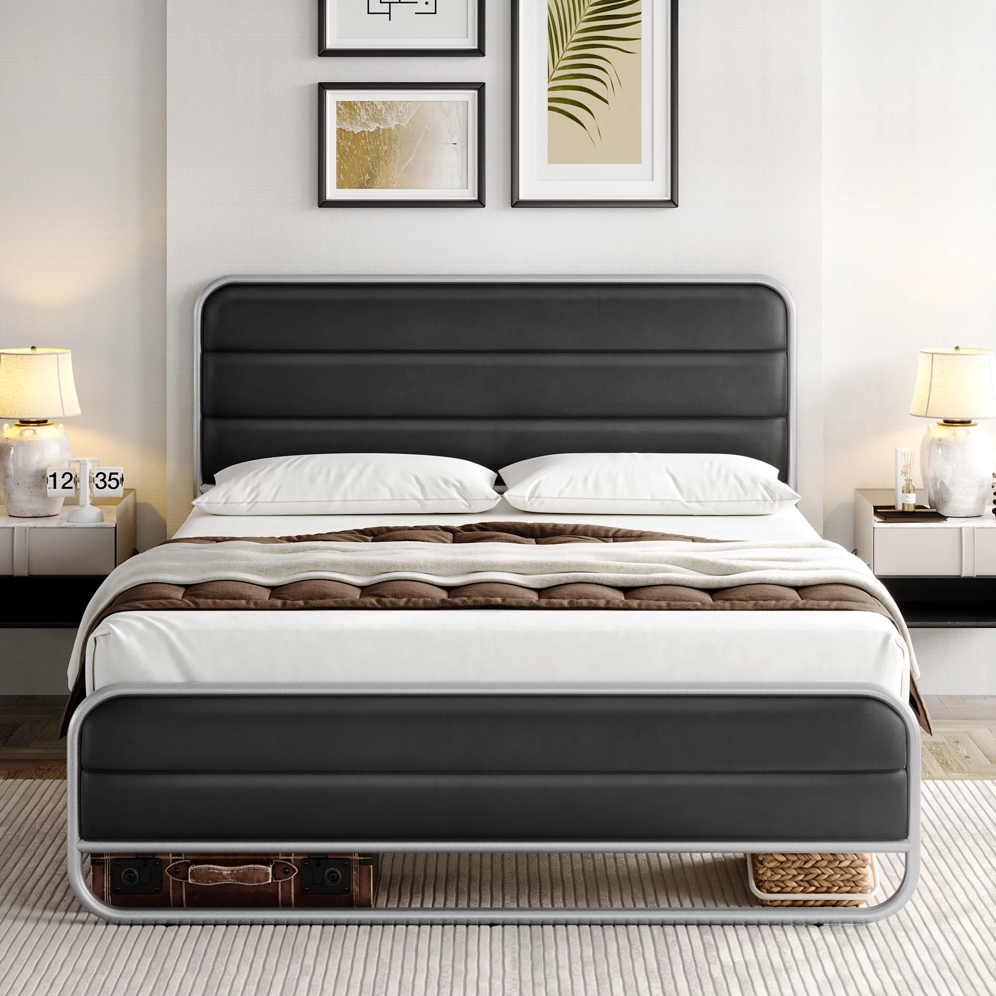 Homfa Full Bed Frame with PU Leather Upholstered Headboard, Silver Metal Tubular Platform Bed with 10.6 Under Bed Storage, Black