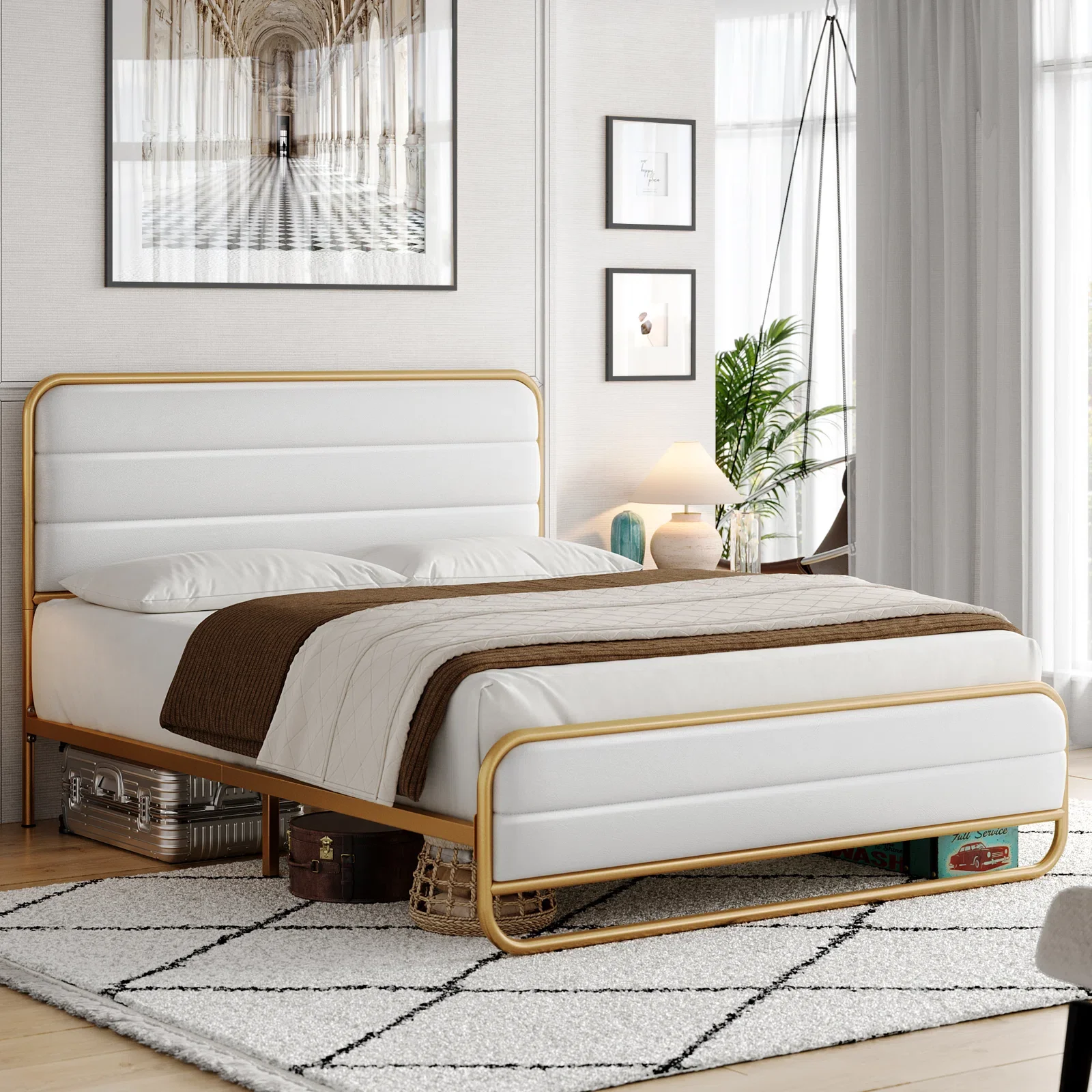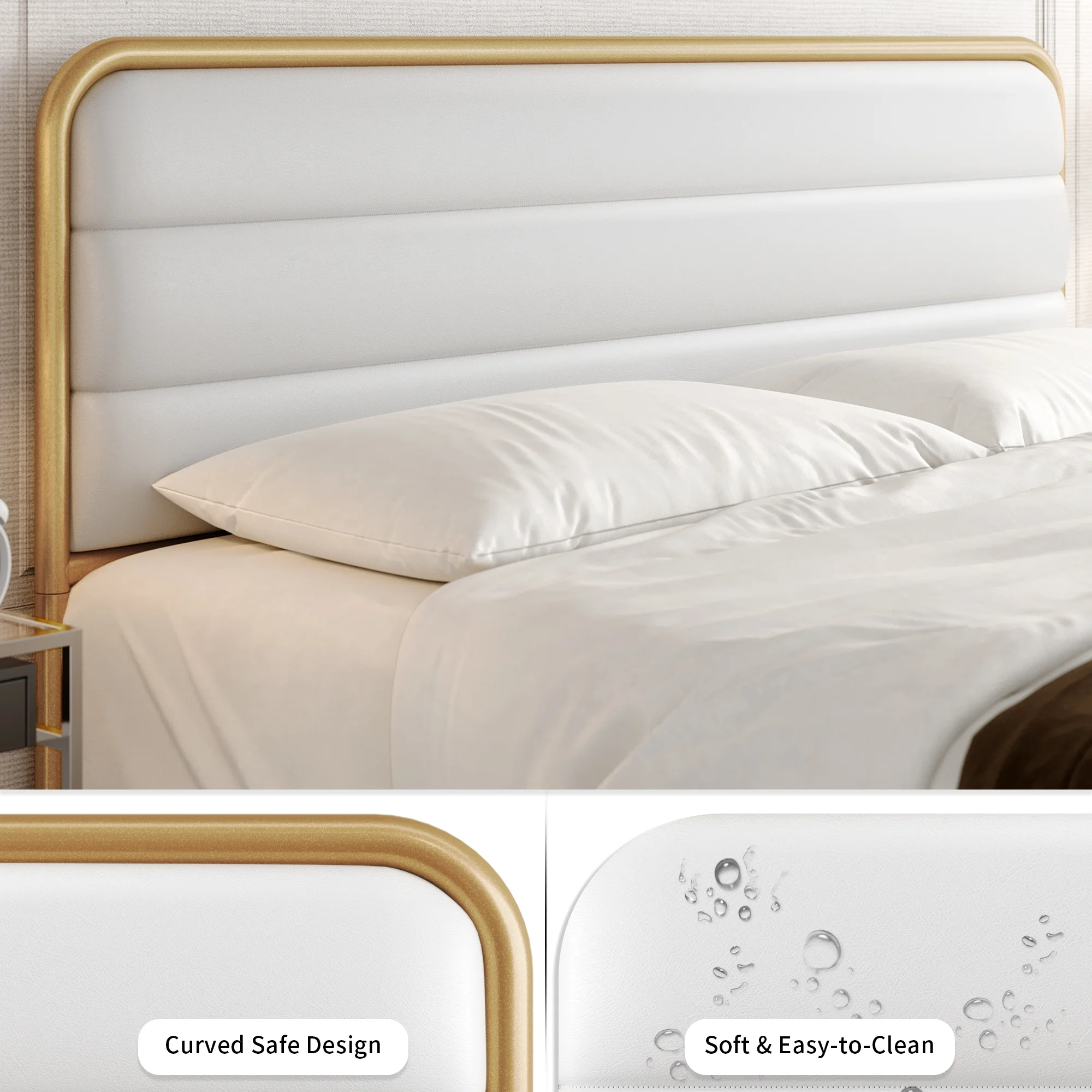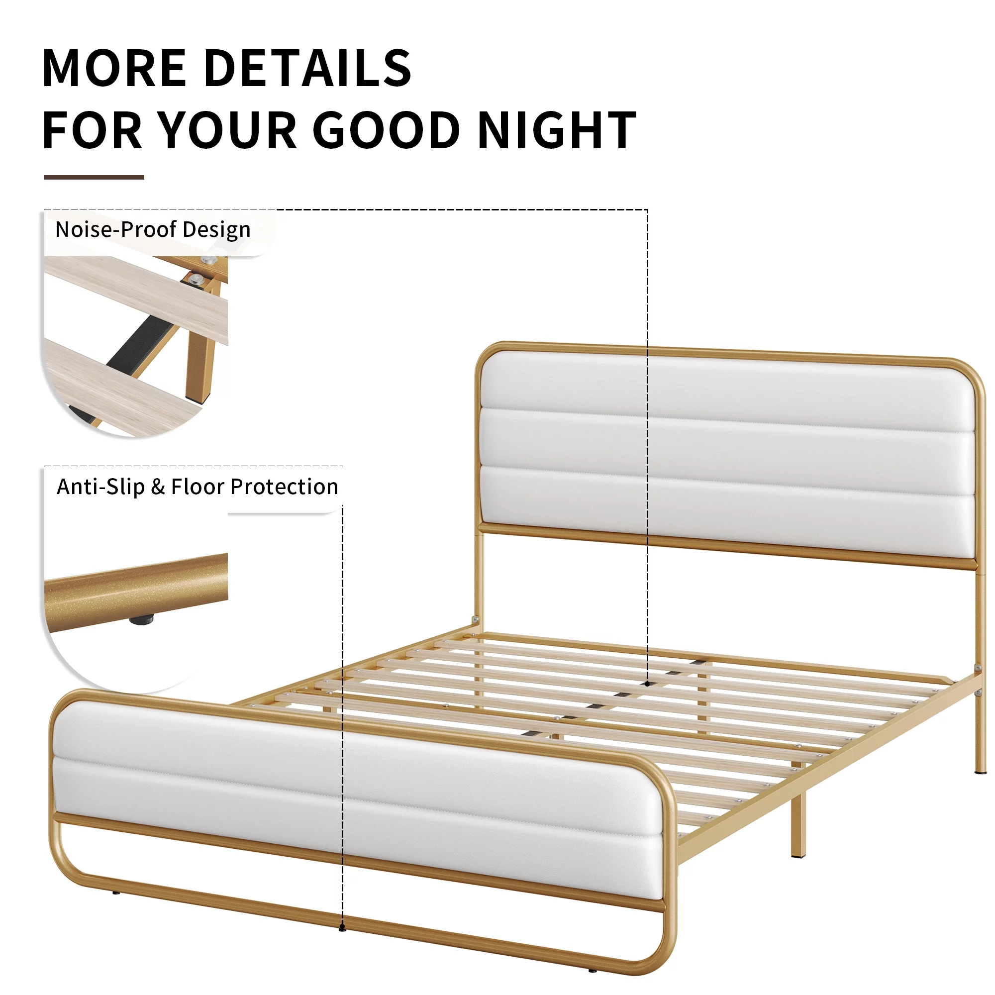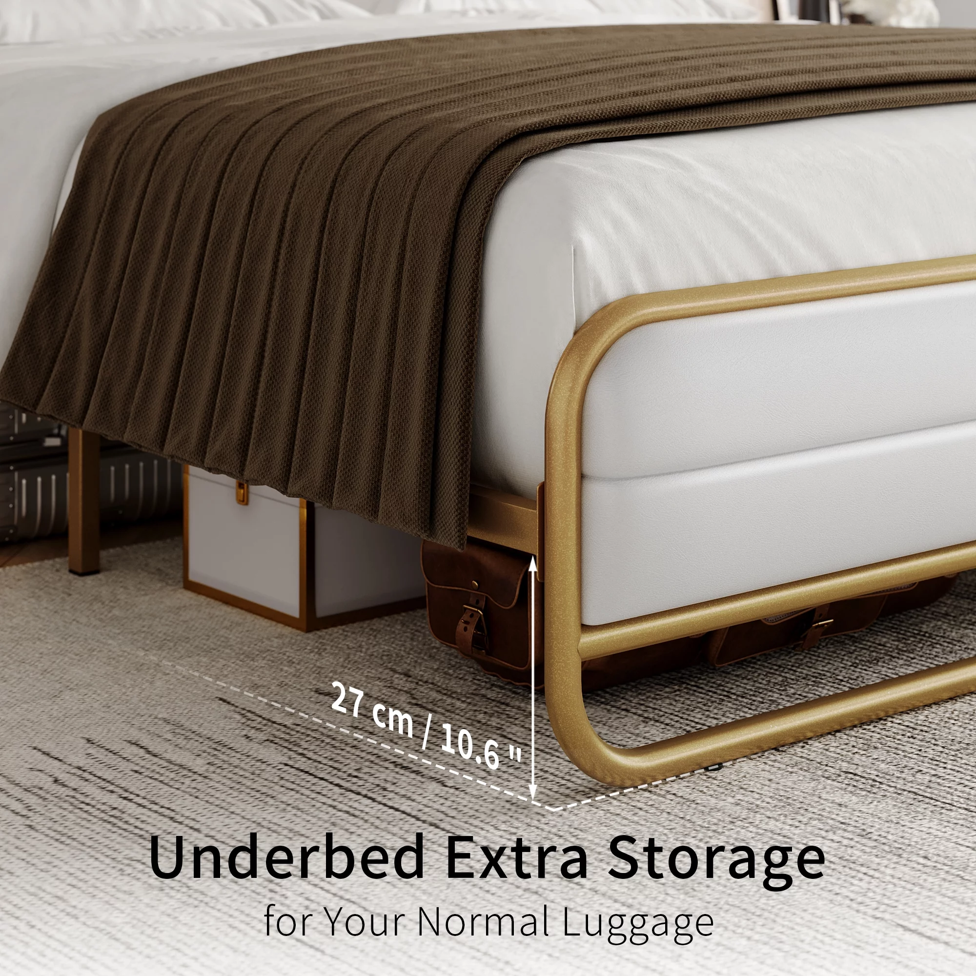 Homfa Full Bed Frame with PU Leather Upholstered Headboard, Silver Metal Tubular Platform Bed with 10.6 Under Bed Storage, Black