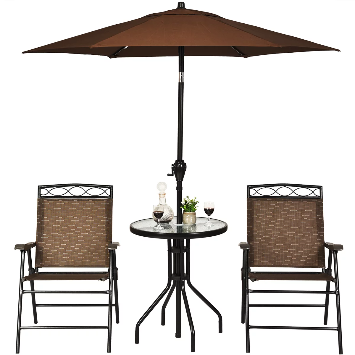 Gymax 3PCS Bistro Set Conversation Set Pub Patio Outdoor w/ Folding Chairs Table