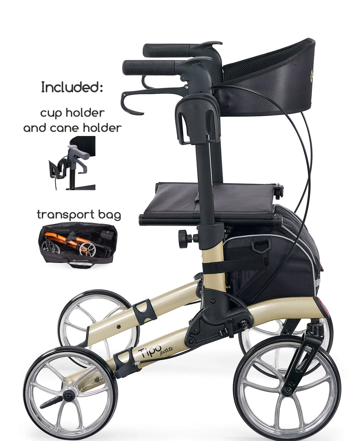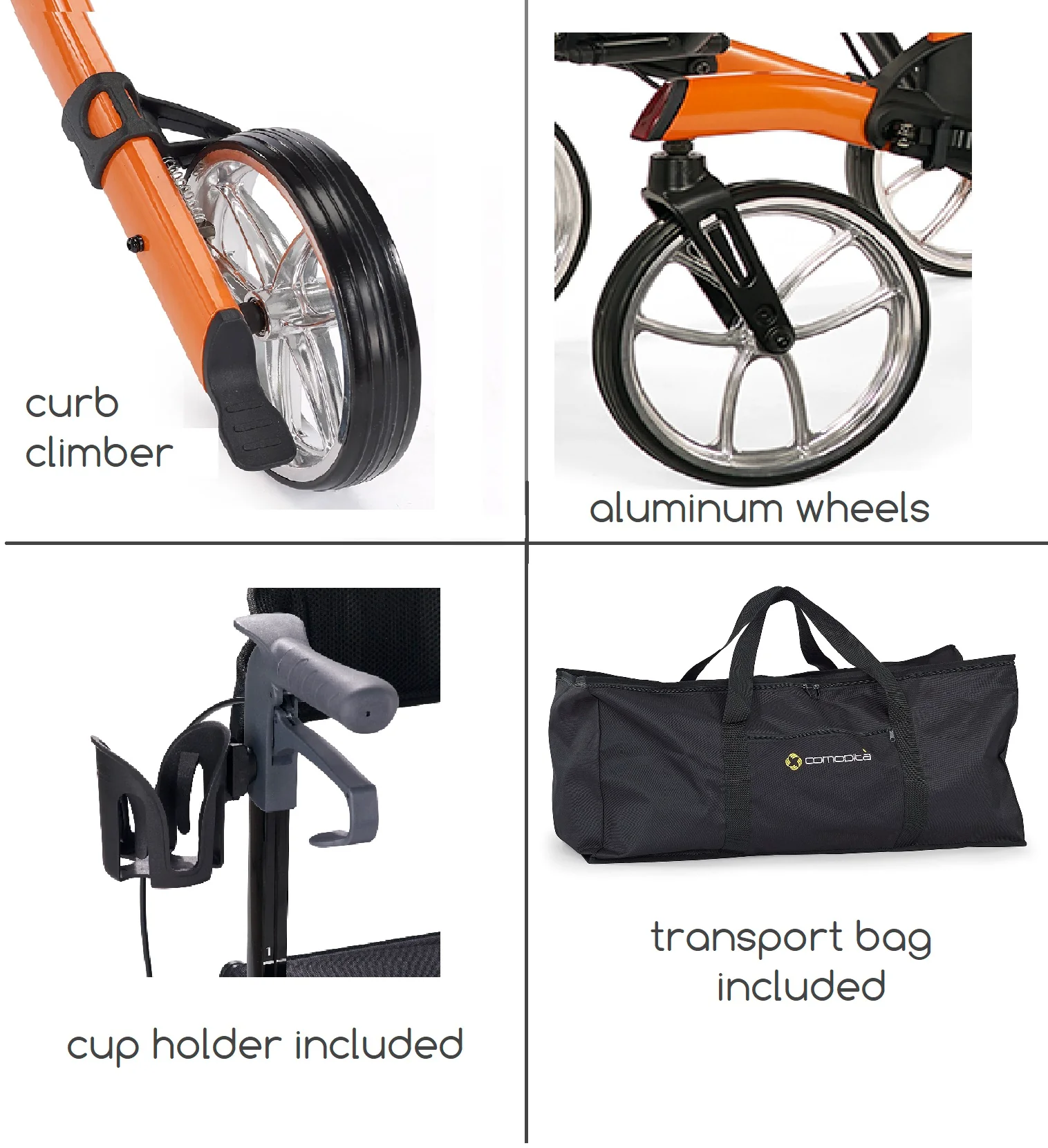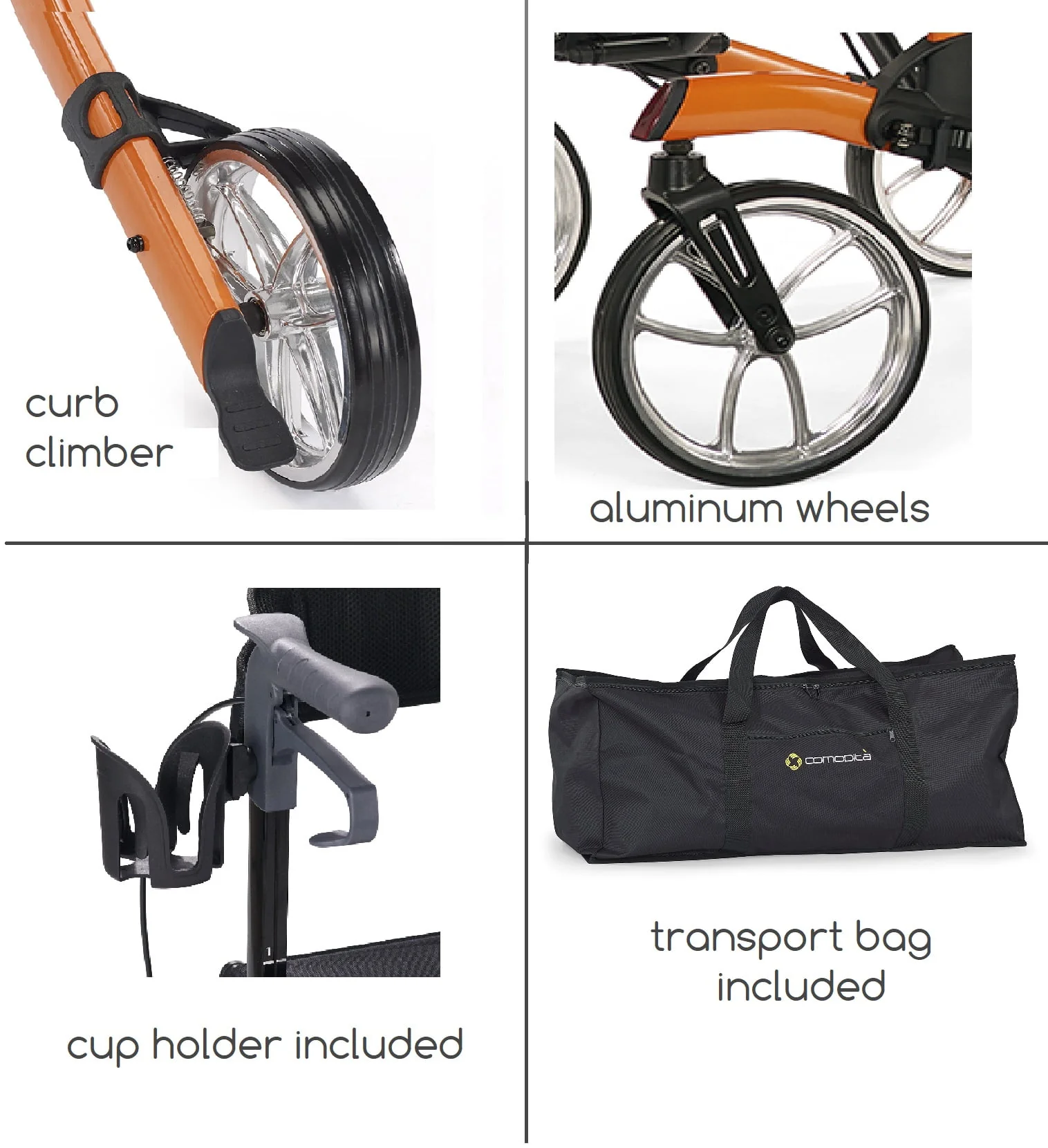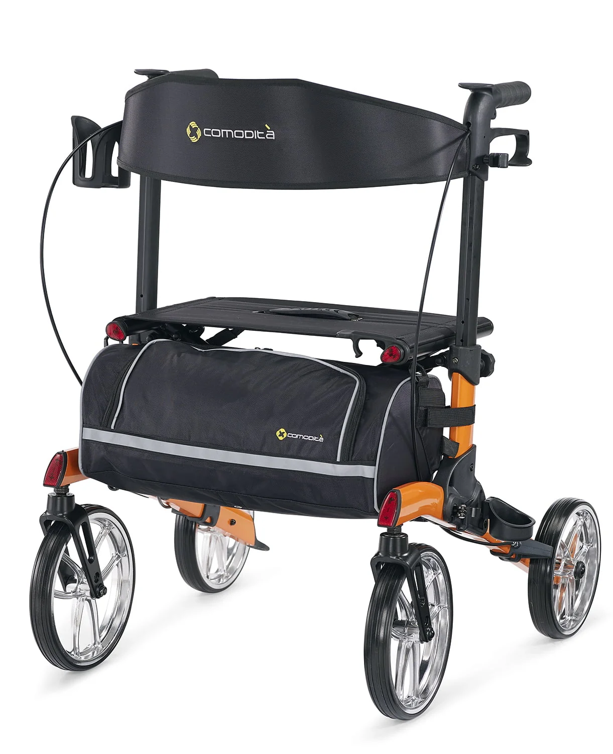 Comodita Tipo Petite Compact Rollator with Double Fold Action and Extra Large 10 Aluminum Front Wheels (Metallic Orange)