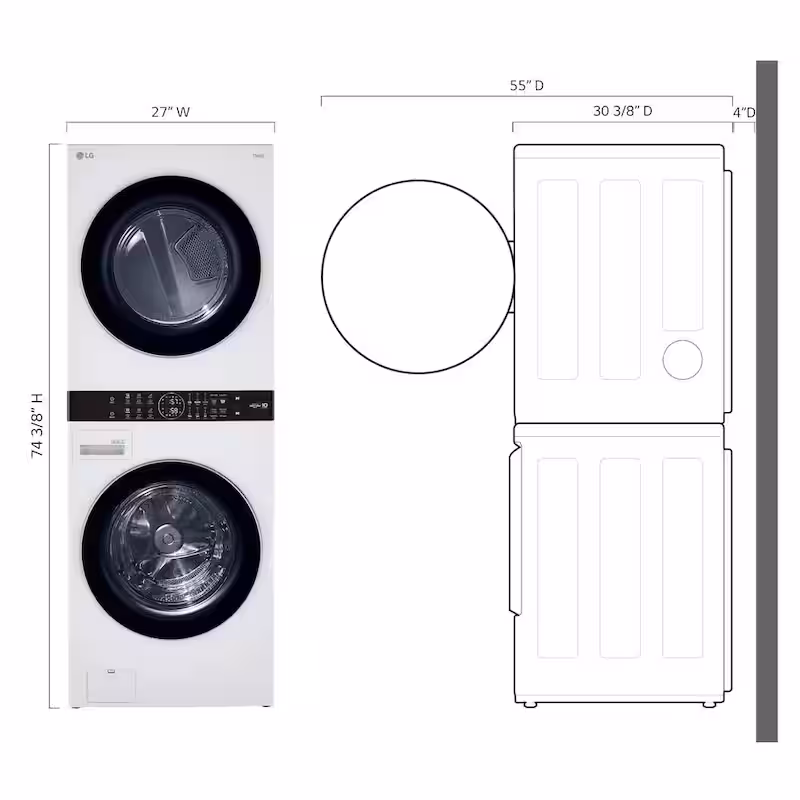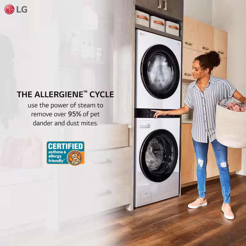 WashTower Stacked SMART Laundry Center 4.5 Cu.Ft. Front Load Washer & 7.4 Cu.Ft. Gas Dryer in White