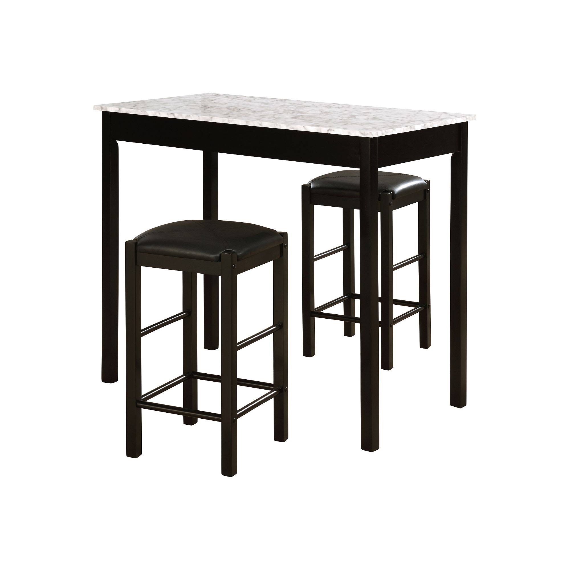 Linon Lancer 3 Piece Tavern Set, Faux Black Marble - Megean