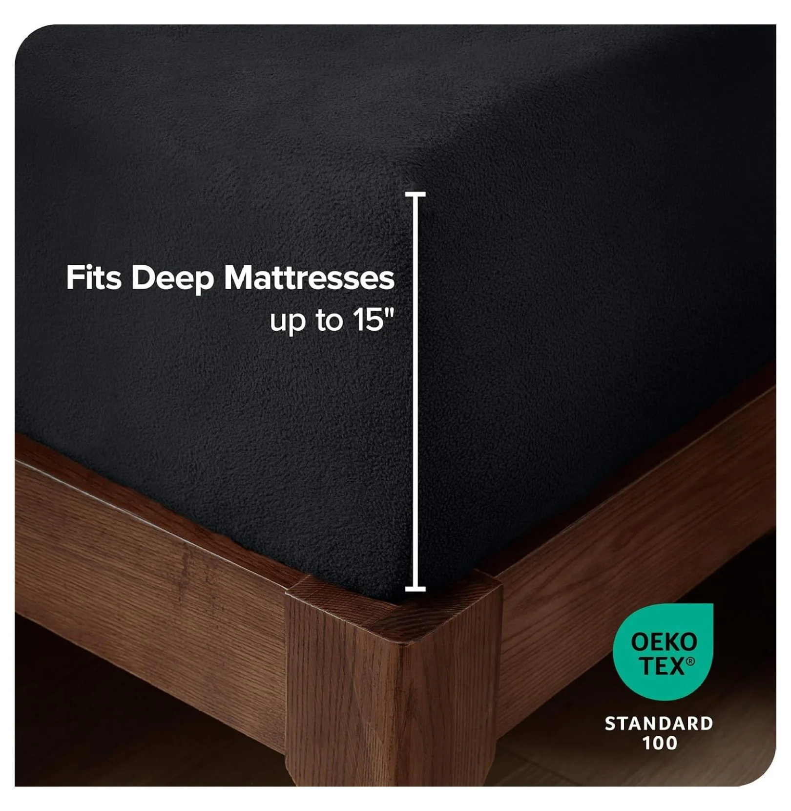 Super Soft Fleece Fitted Sheet - Twin Extra Long Size - Extra Plush Polar Fleece, No-Pilling - Deep Pocket - All Season Cozy Warmth (Twin XL, Black)