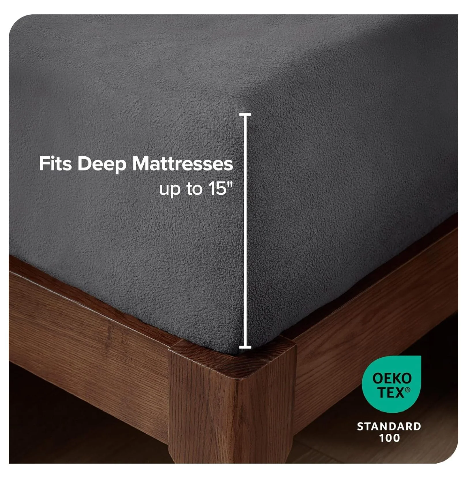 Super Soft Fleece Fitted Sheet - Full Size (2 Pack) - Extra Plush Polar Fleece, No-Pilling - Deep Pocket - All Season Cozy Warmth (Full, Grey)