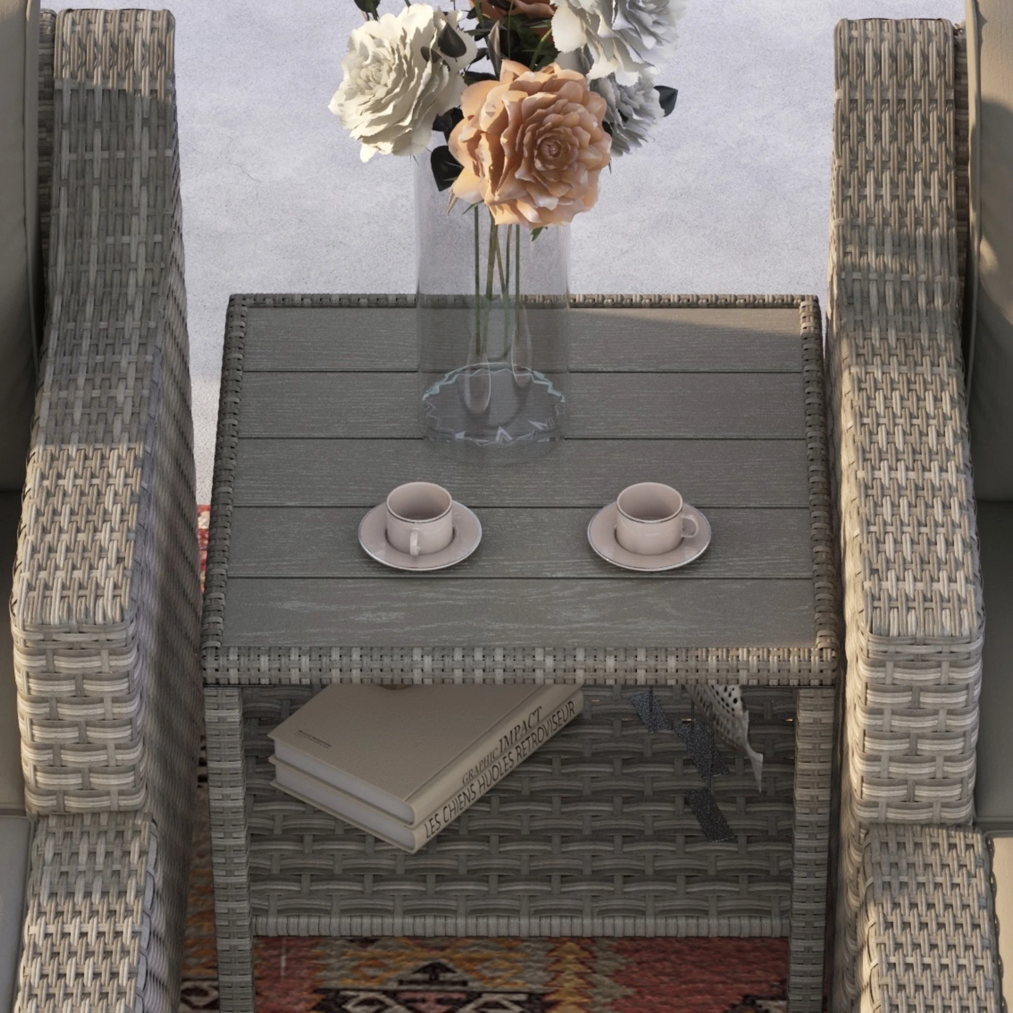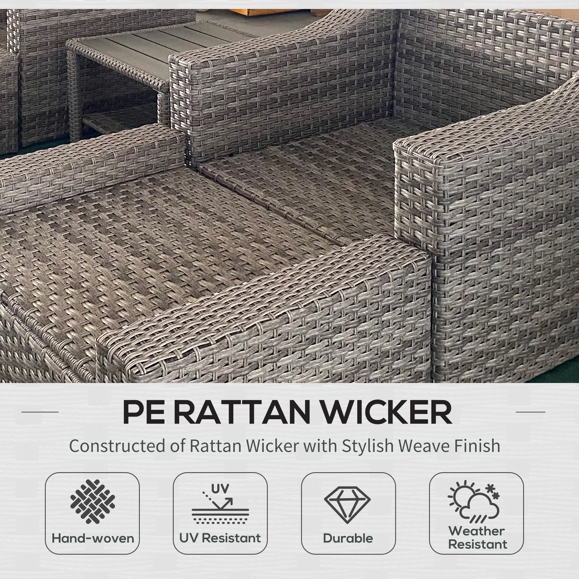 Outsunny 5 Piece Patio Furniture Set, Chairs, Ottoman, Coffee Table, Gray - Curated Treasures Market