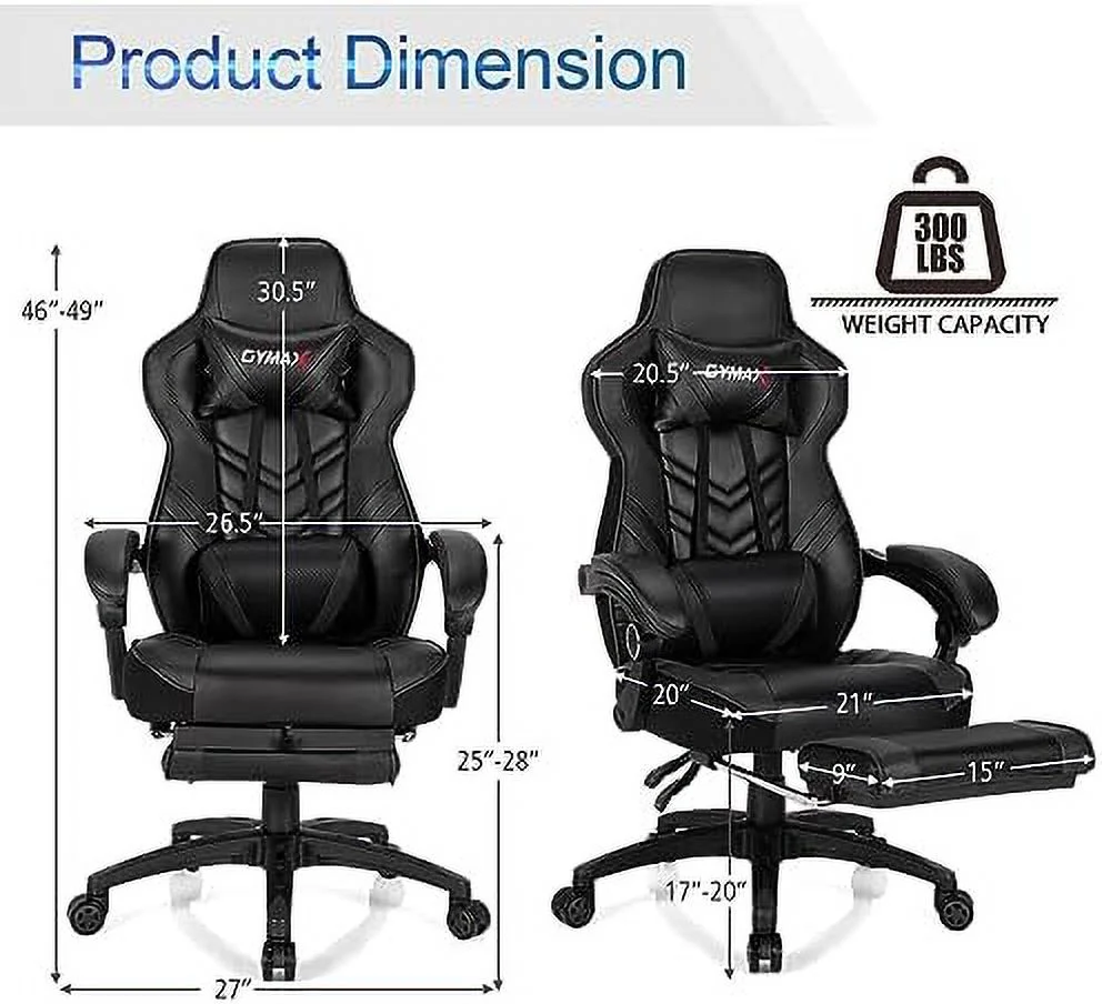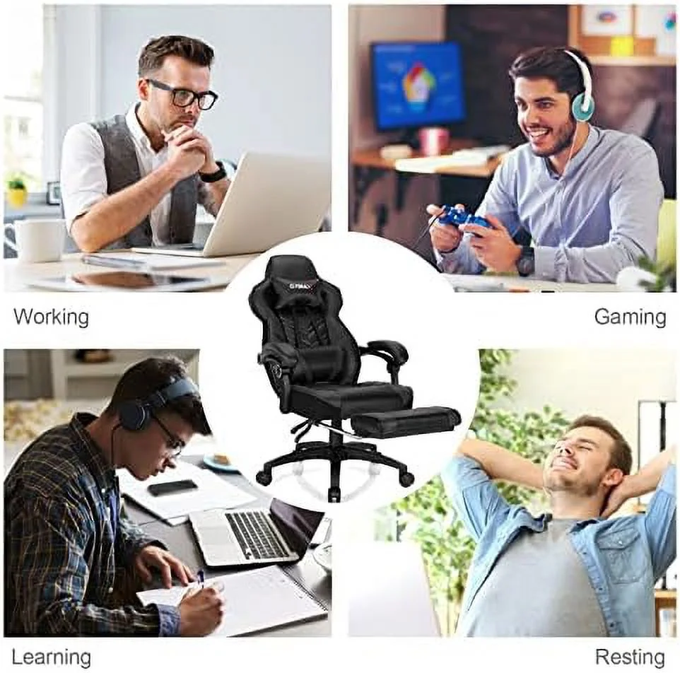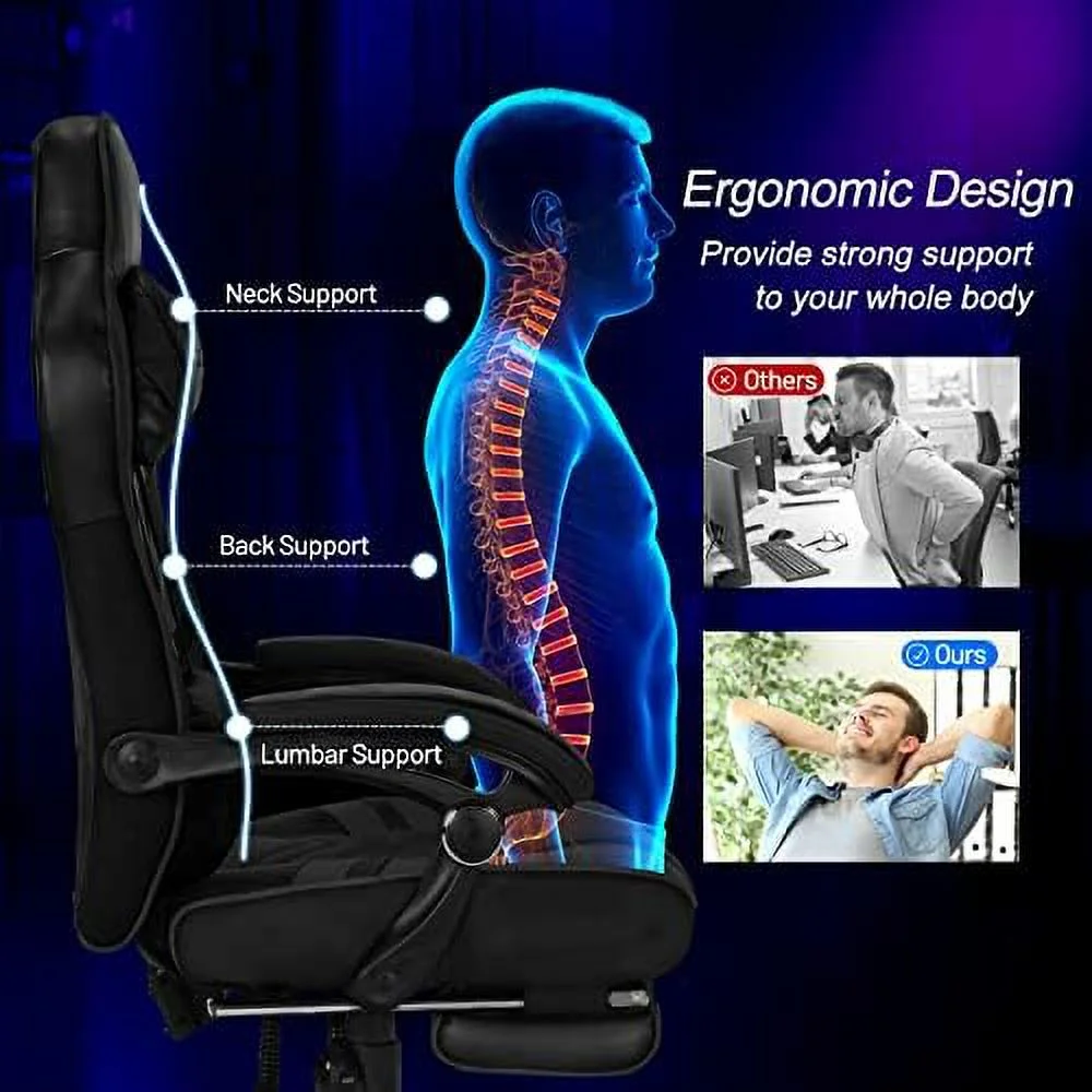 ZFGSUIJN Gaming Chair Video Game Chair with Footrest and Lumbar Support Racing Style PU Leather Computer Chair Ergonomic Adjustable Swivel Task Chair Blue - Curated Treasures Market