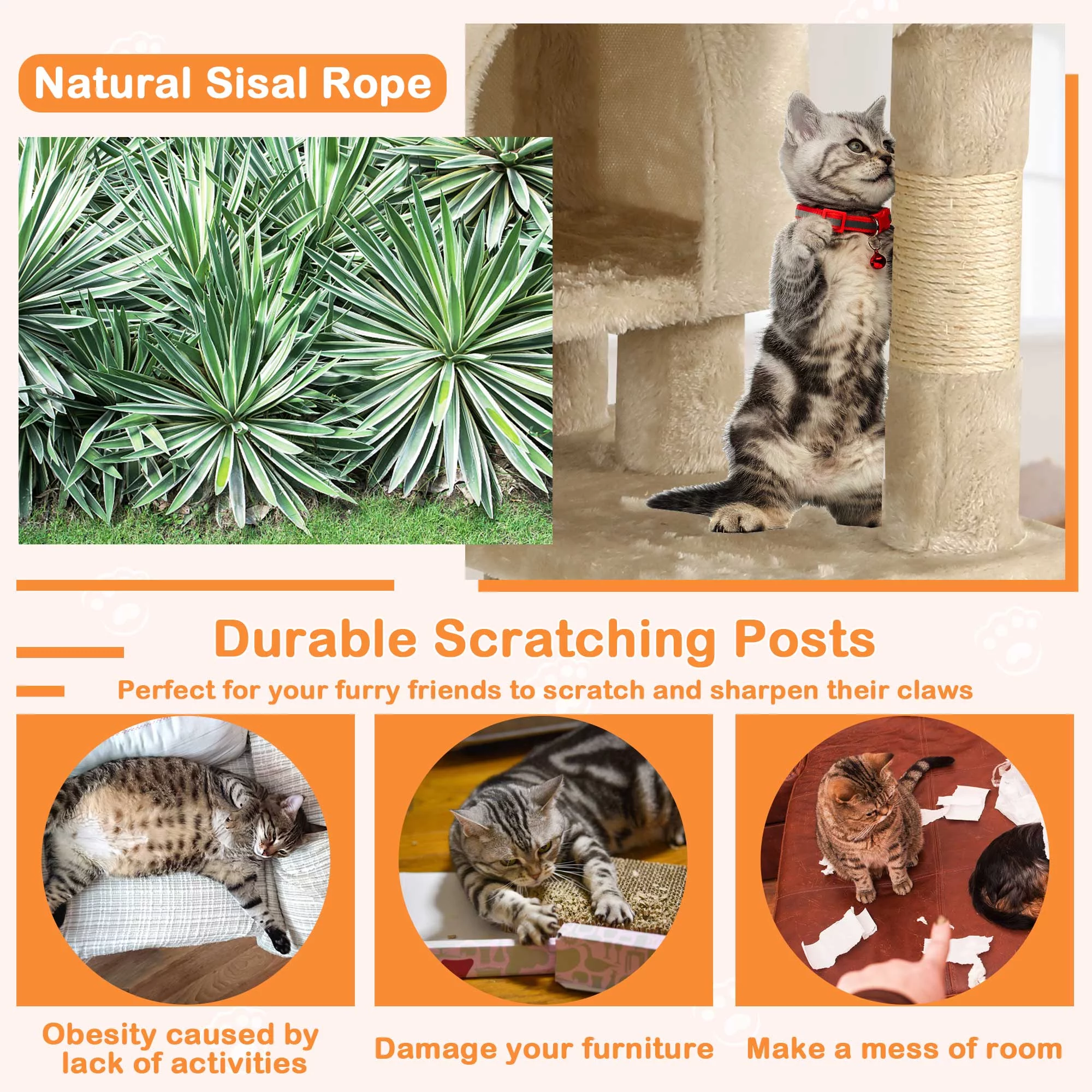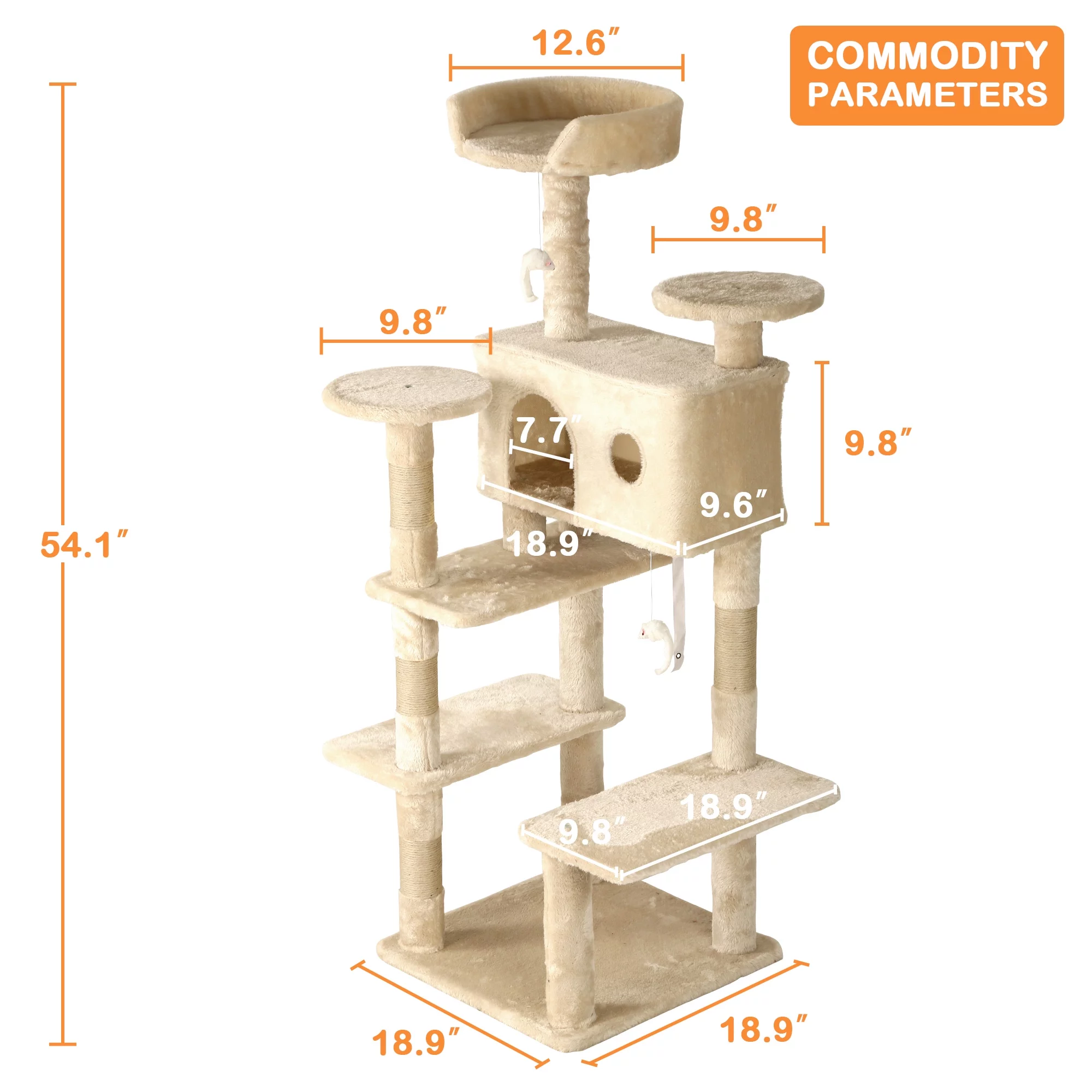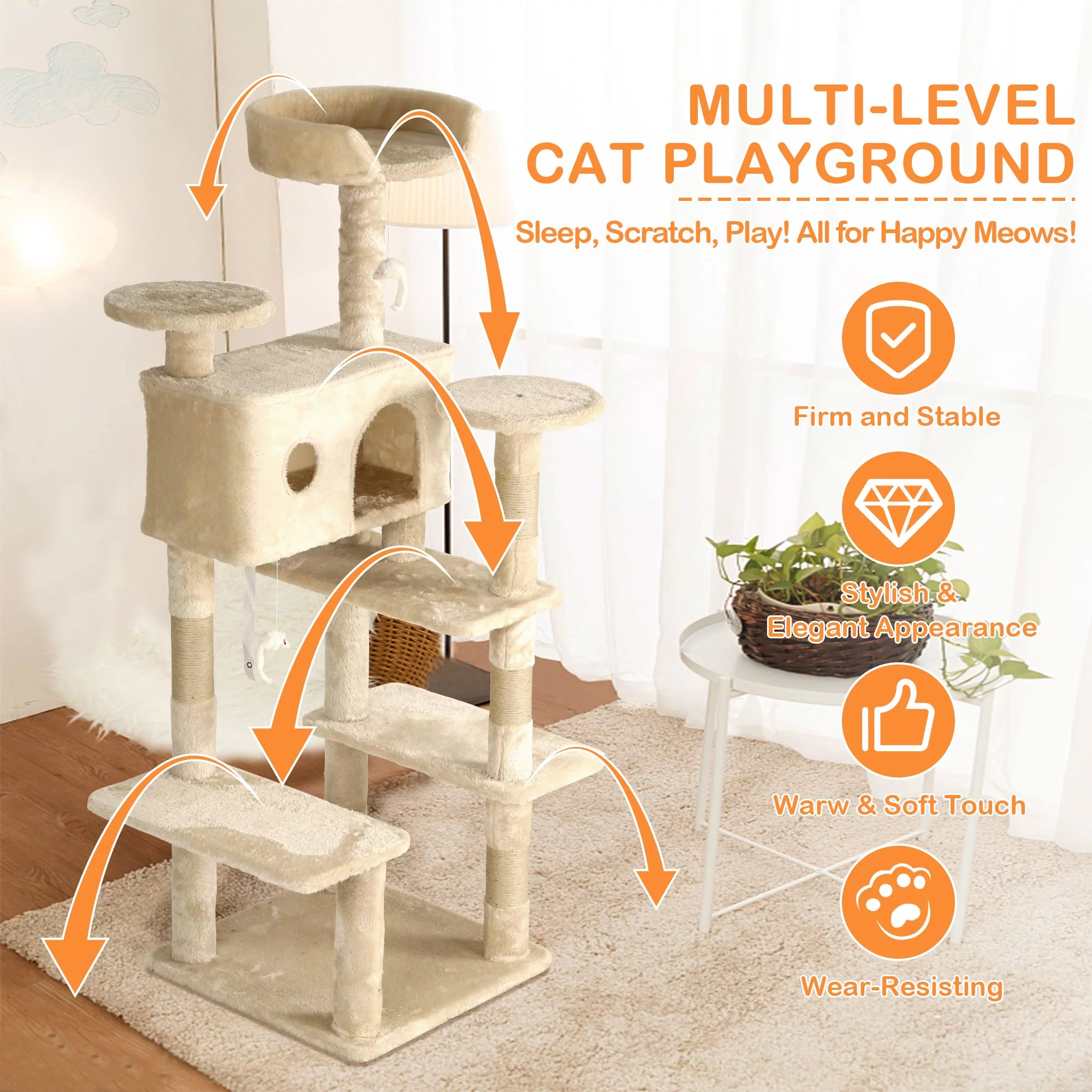 YRLLENSDAN 54in Cat Tree Tower with Cat Scratching Post,Multi-Level Cat Condo Cat Tree for Indoor Cats Stand House Furniture Kittens Activity Tower with Funny Toys for Kitty Pet Play House,Beige - Curated Treasures Market