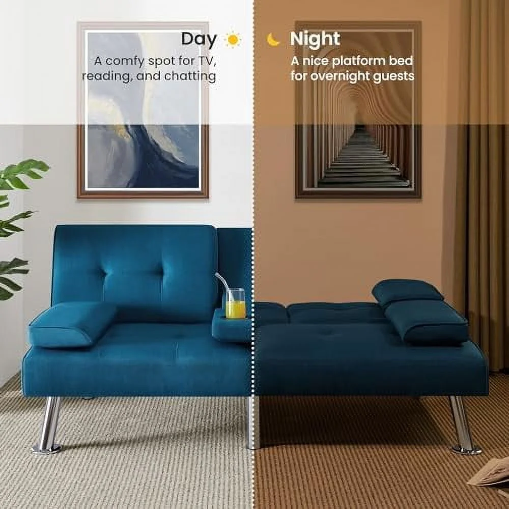 SJUIONG Convertible Sofa Bed Adjustable Couch Sleeper Modern Faux Leather Recliner Reversible Loveseat Folding Daybed Guest Bed Removable Armrests Cup Holders 3 Angles 772lb Capacity - Curated Treasures Market