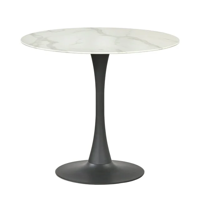 TMS Rho 35.5" Round Indoor Pedestal Dining Table, Black/White Faux Marble - Curated Treasures Market