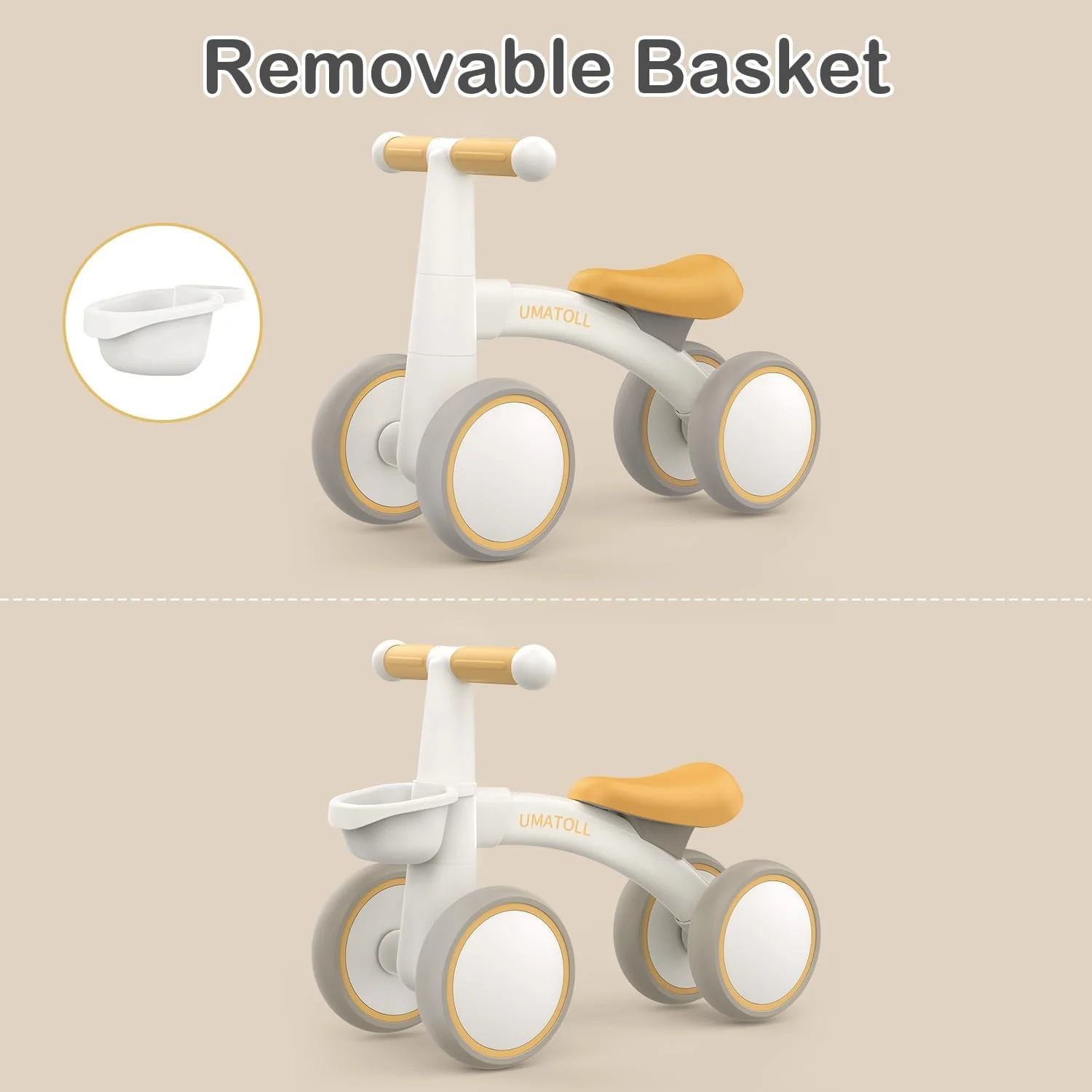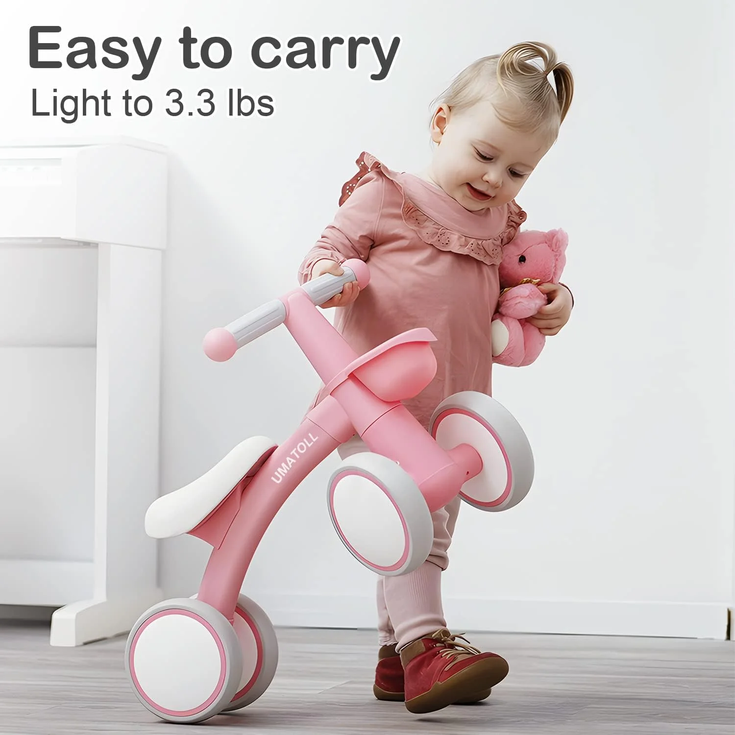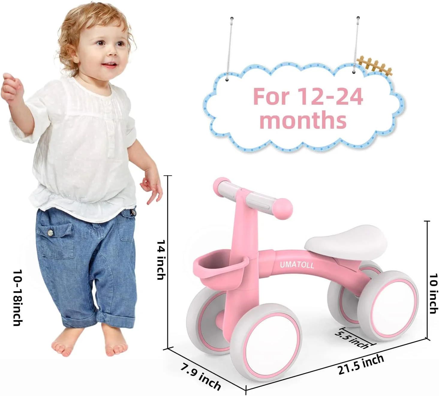 Baby Balance Bike for 1 Year Old Boys Girls, 12-24 Months Toddler Balance Bike with Removable Basket, Adjustable Seat, 4 Wheels Infant Bike, First Birthday Gift, Pink - Curated Treasures Market