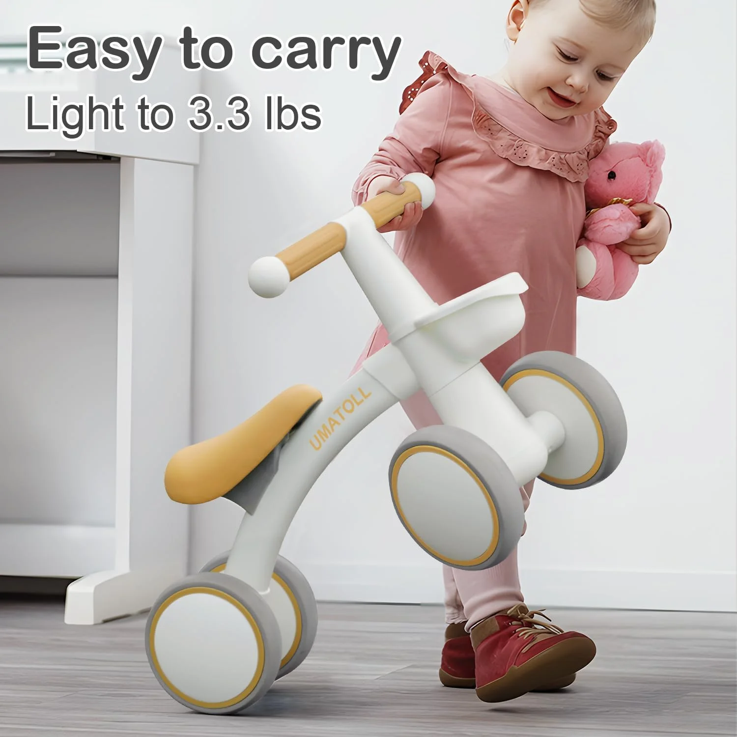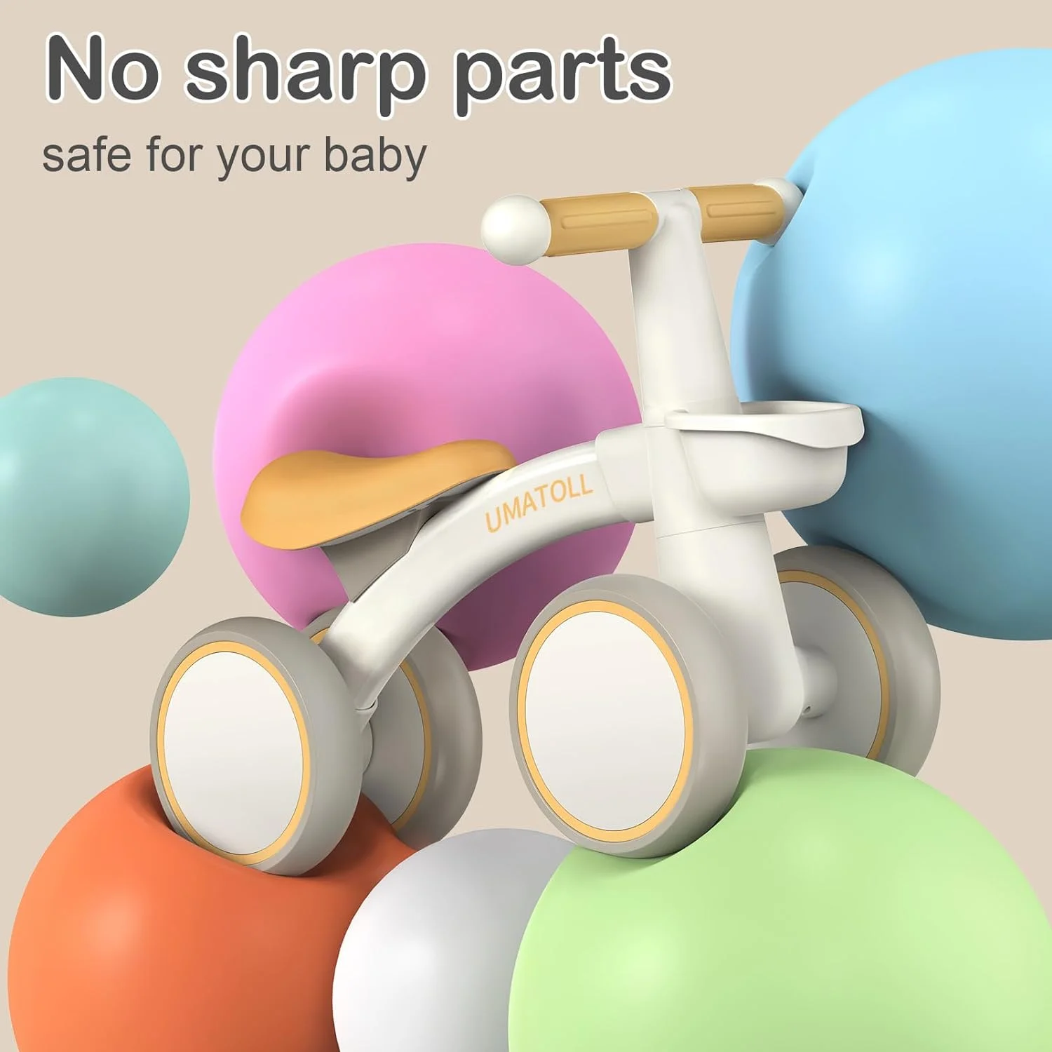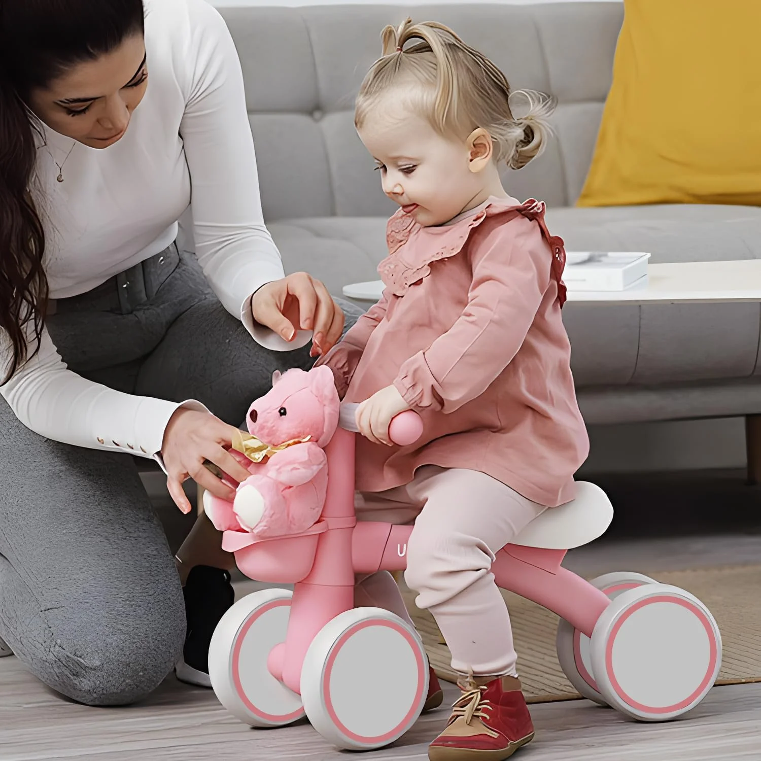 Baby Balance Bike for 1 Year Old Boys Girls, 12-24 Months Toddler Balance Bike with Removable Basket, Adjustable Seat, 4 Wheels Infant Bike, First Birthday Gift, Pink - Curated Treasures Market