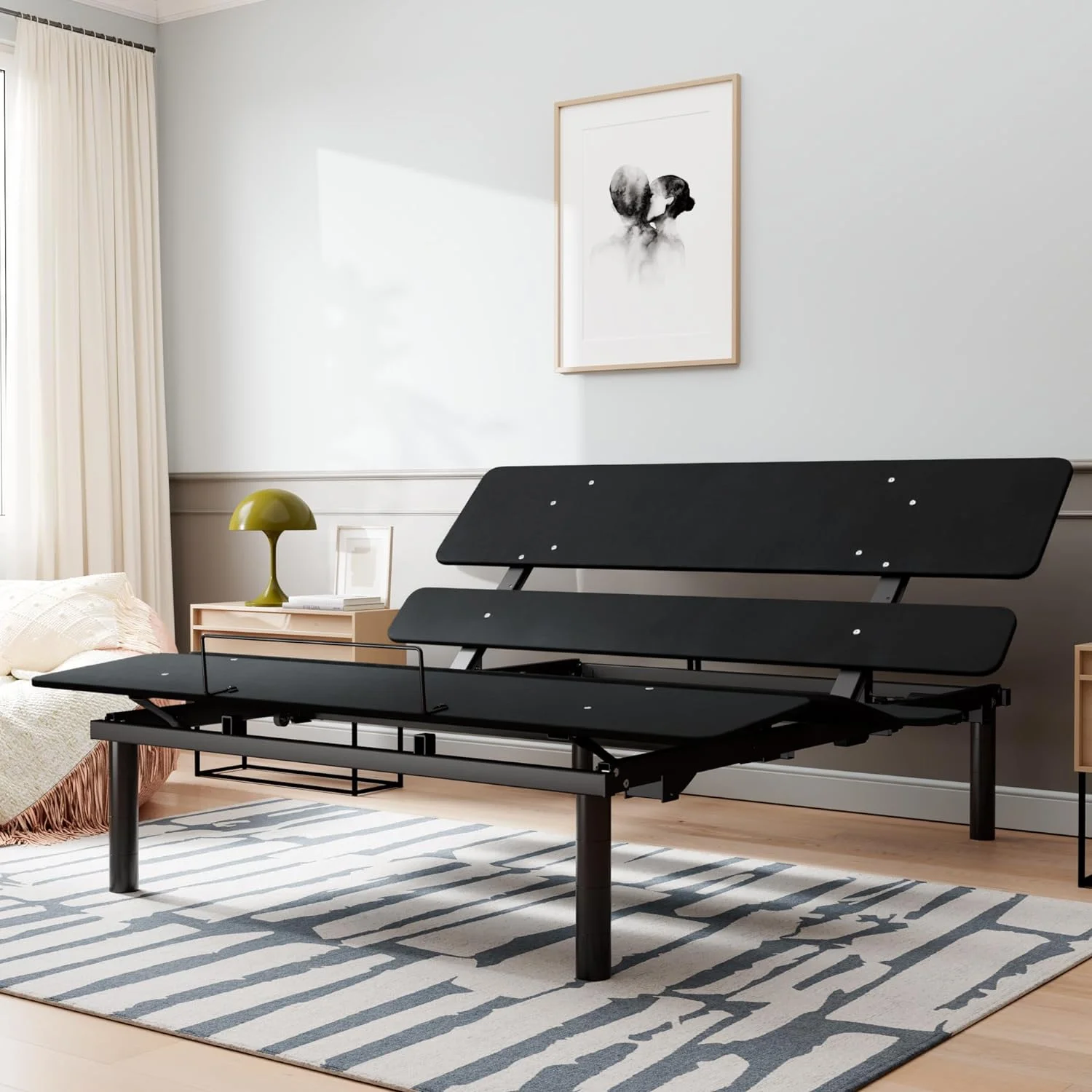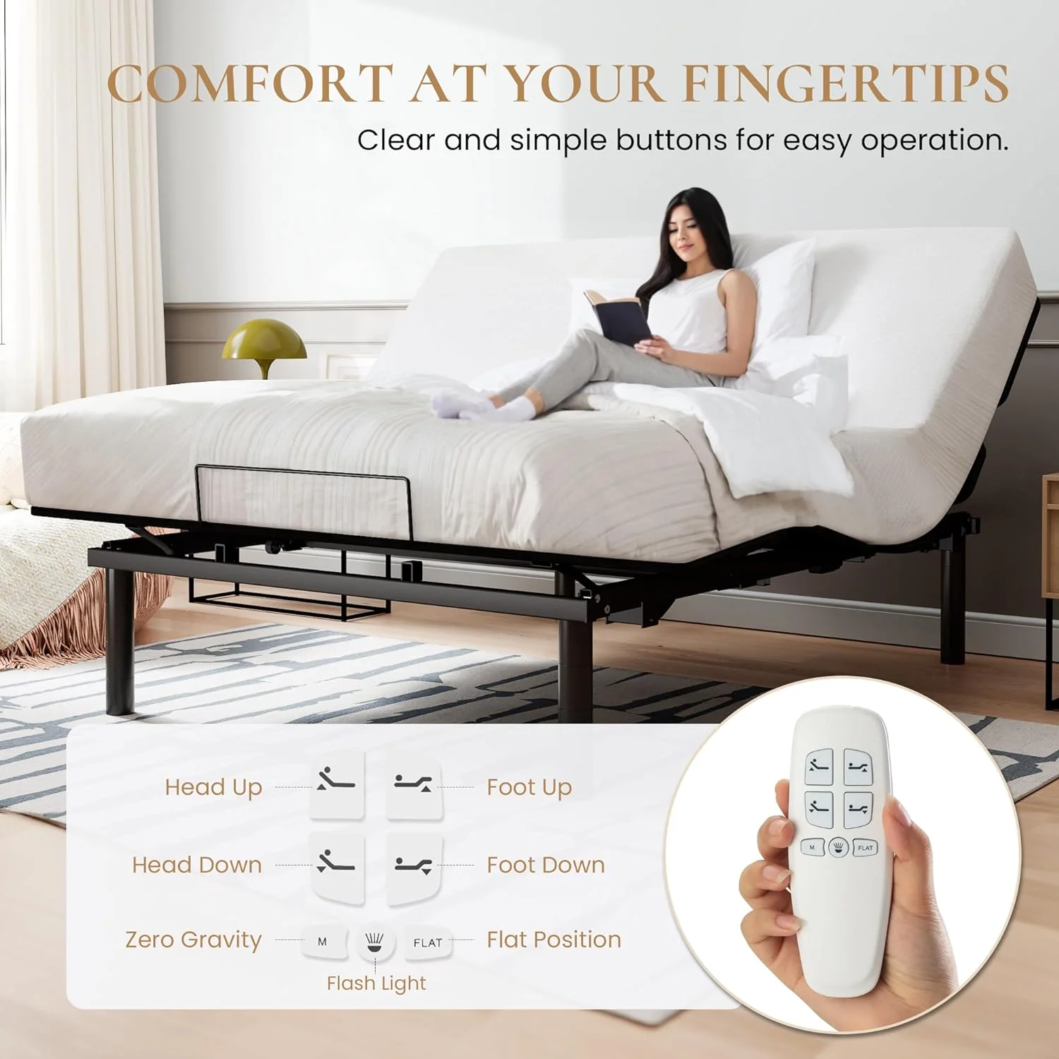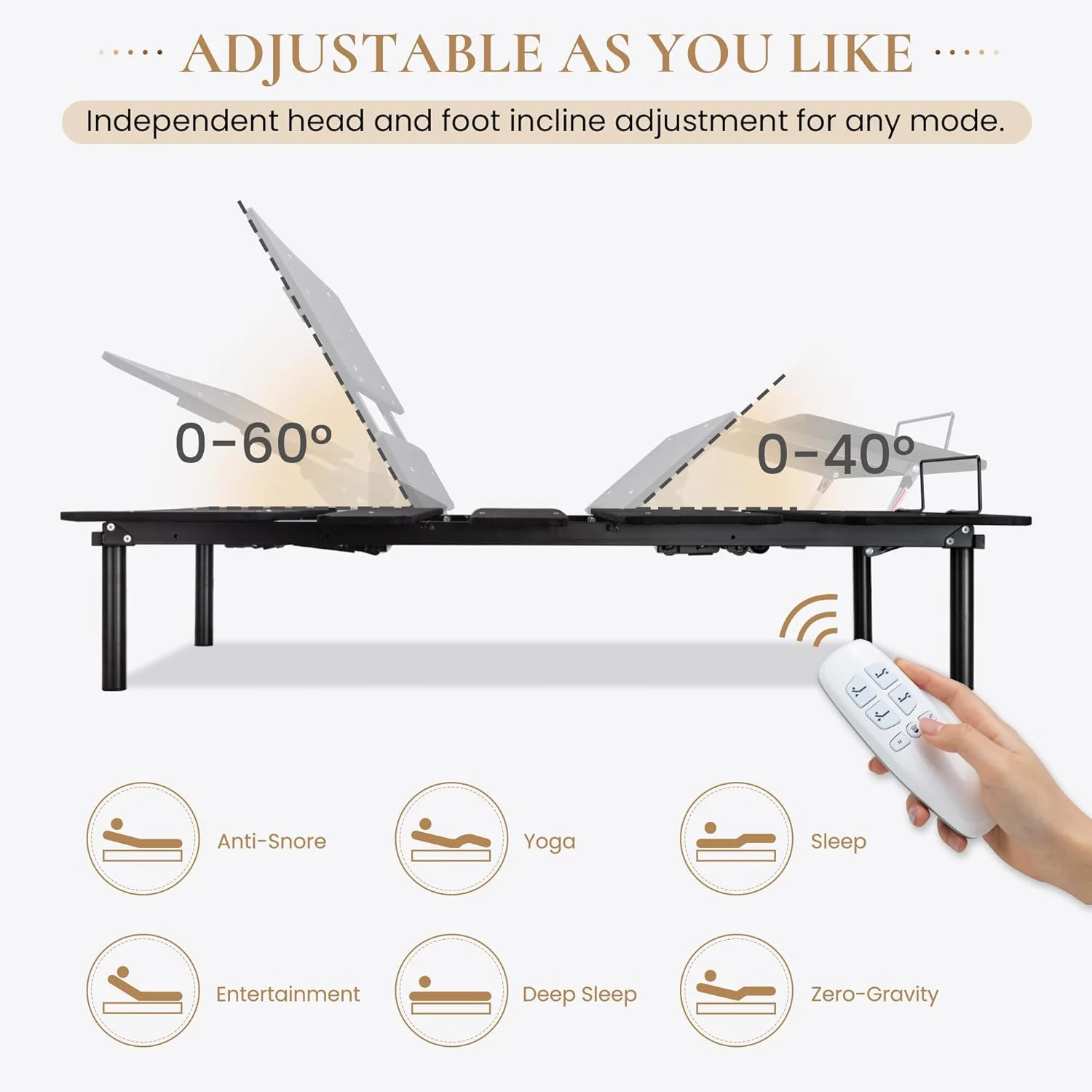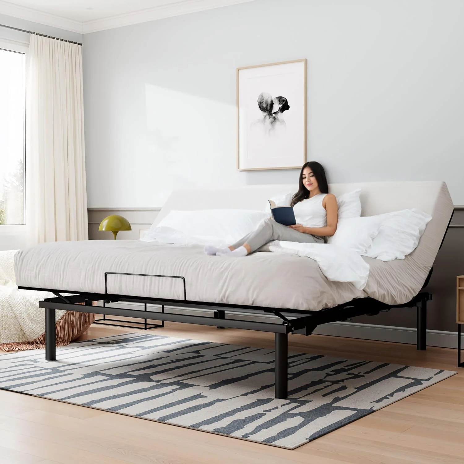 Ergonomic Electric Adjustable Queen Bed Base, Adjustable Leg Design, Independent Head and Foot Incline, Wireless Remote Control with Quiet Motor - Curated Treasures Market