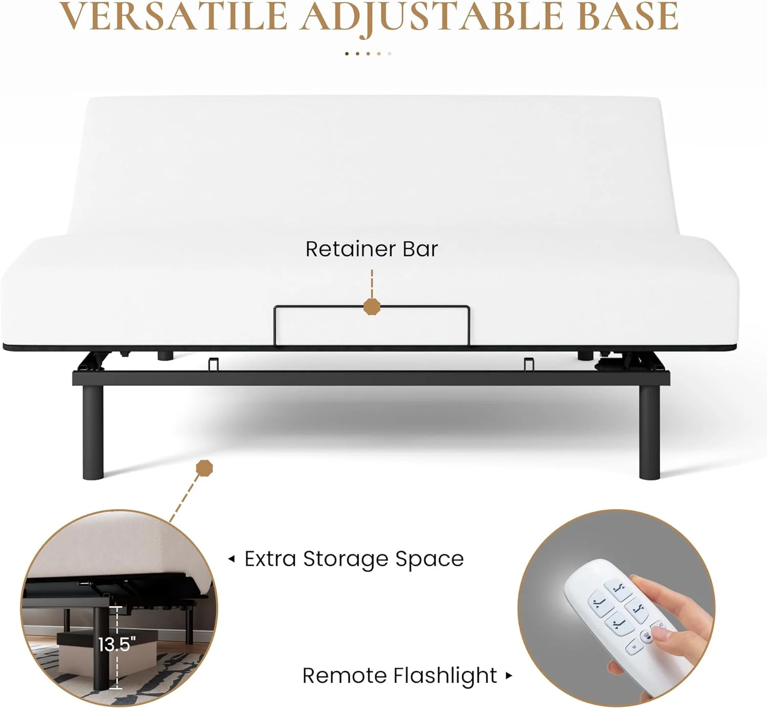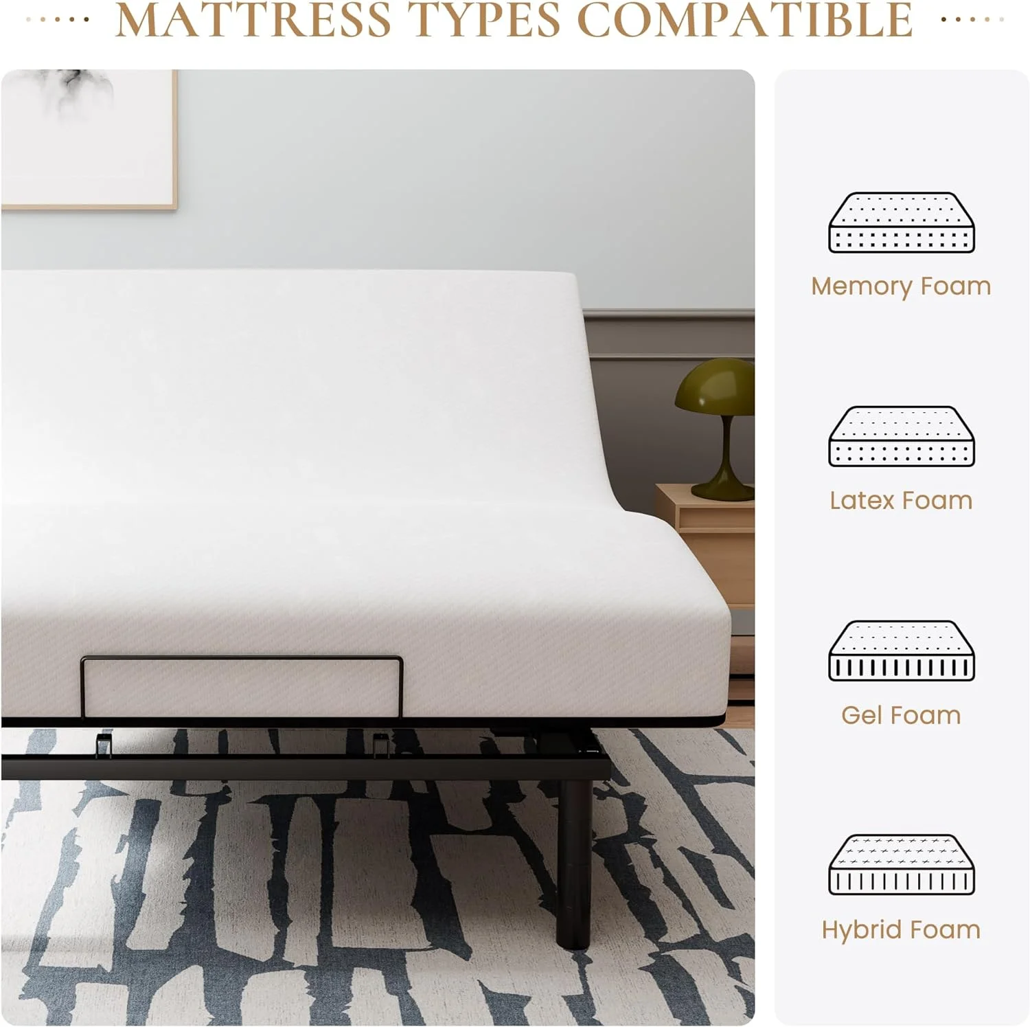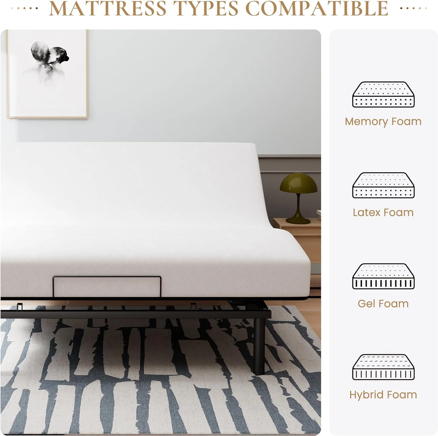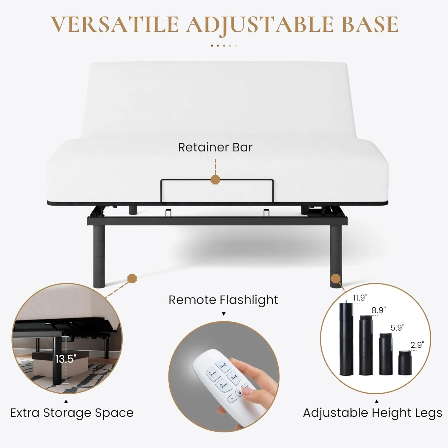 Ergonomic Electric Adjustable Queen Bed Base, Adjustable Leg Design, Independent Head and Foot Incline, Wireless Remote Control with Quiet Motor - Curated Treasures Market