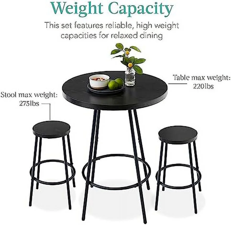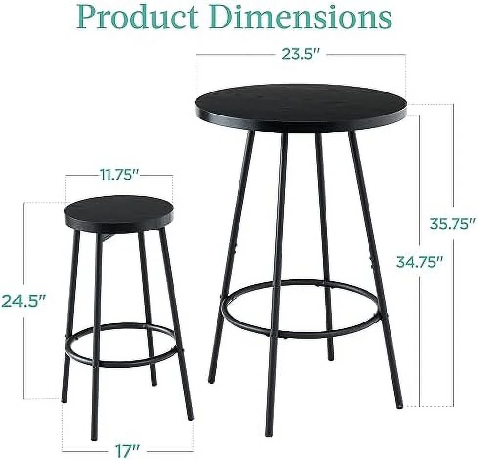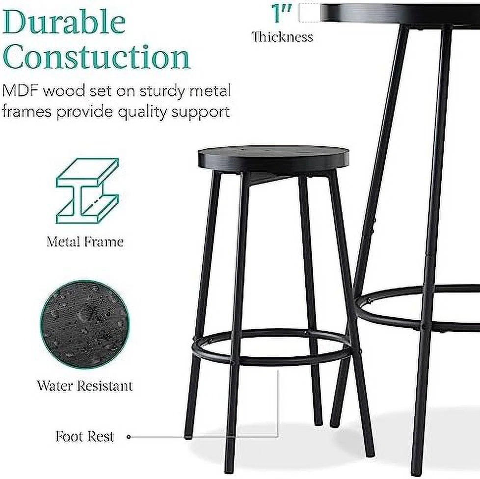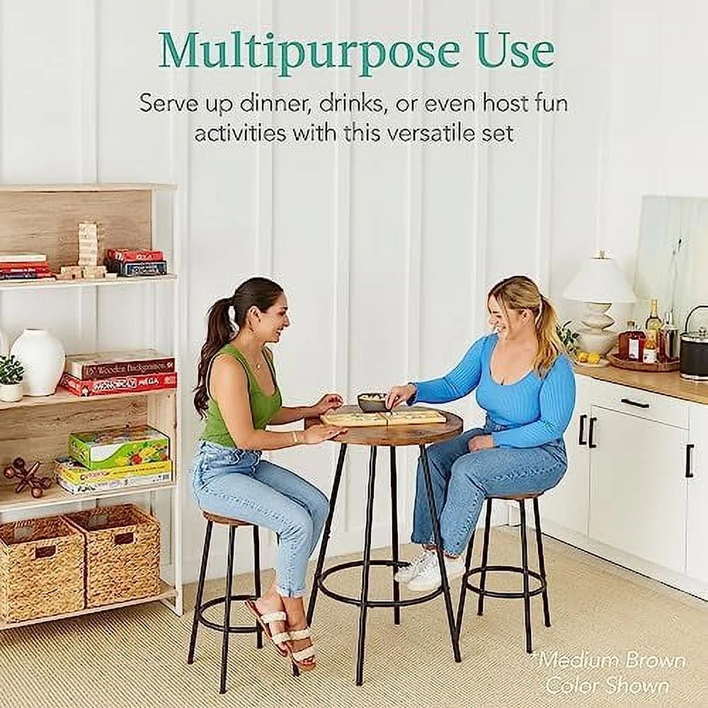 JDZHAPPYLIFE Bistro Dining Set 3 Piece Modern Round Counter Height Pub Table Compact High Top with Stools Pub Dining Set for Kitchen Breakfast Room - Medium Brown - Curated Treasures Market