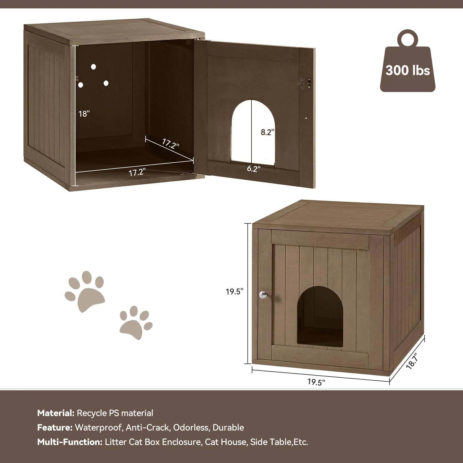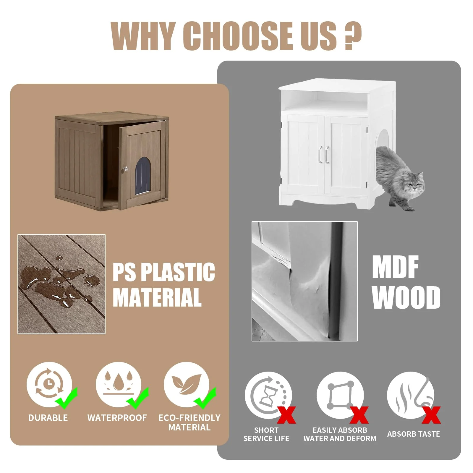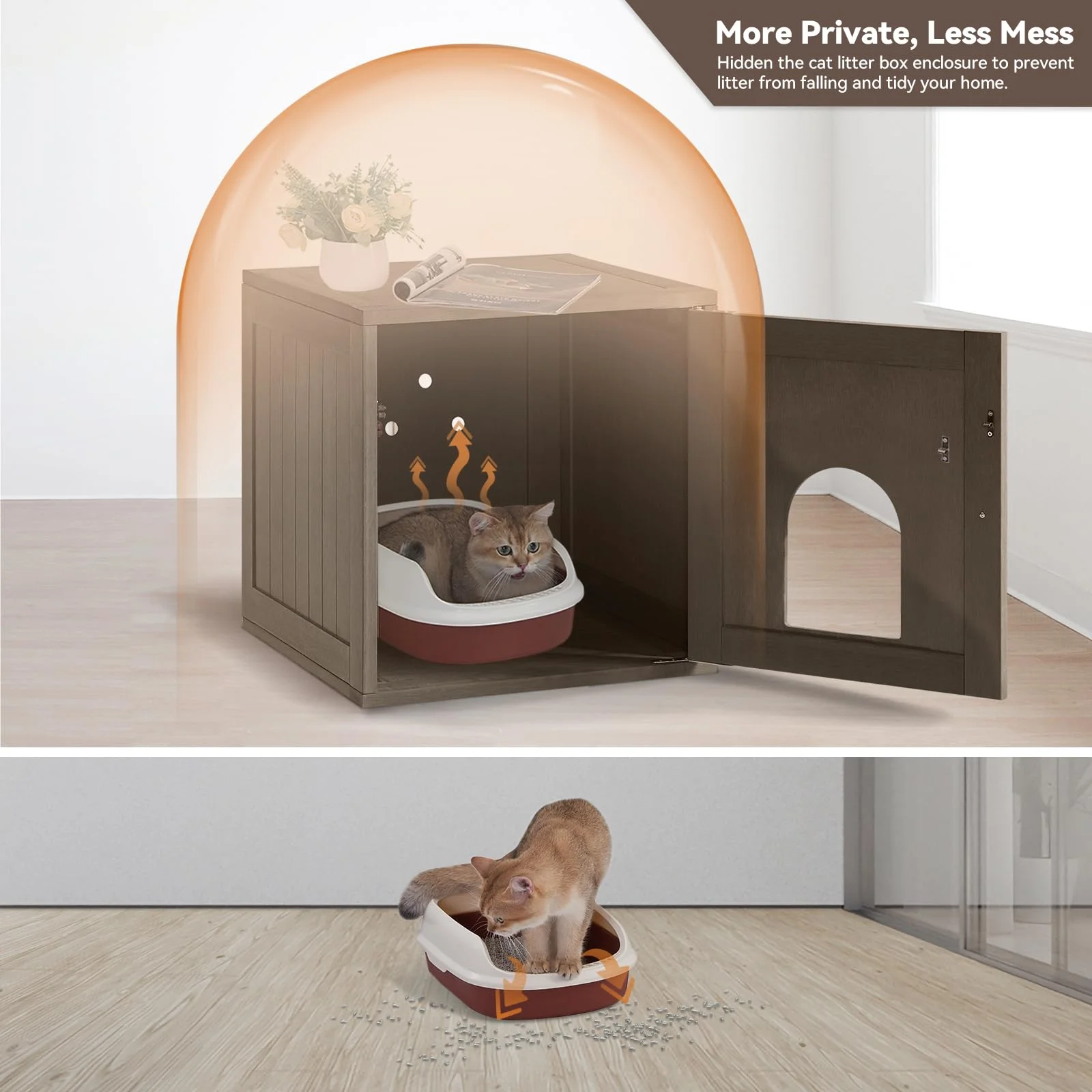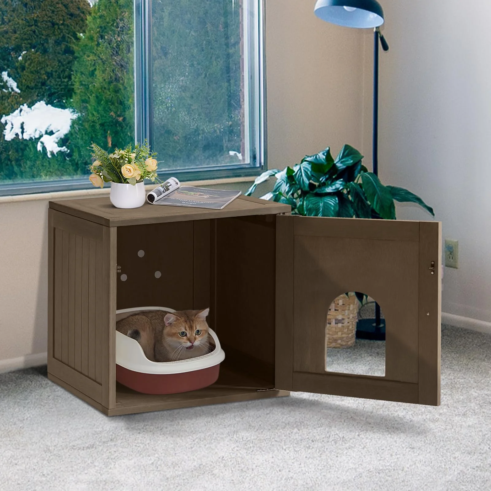Efurden Indoor Cat House, Litter Box Enclosure Furniture, Waterproof Cat Litter Box Furniture Hidden, Cat Litter Cabinet, Side Table, Nightstand (Brown) - Curated Treasures Market