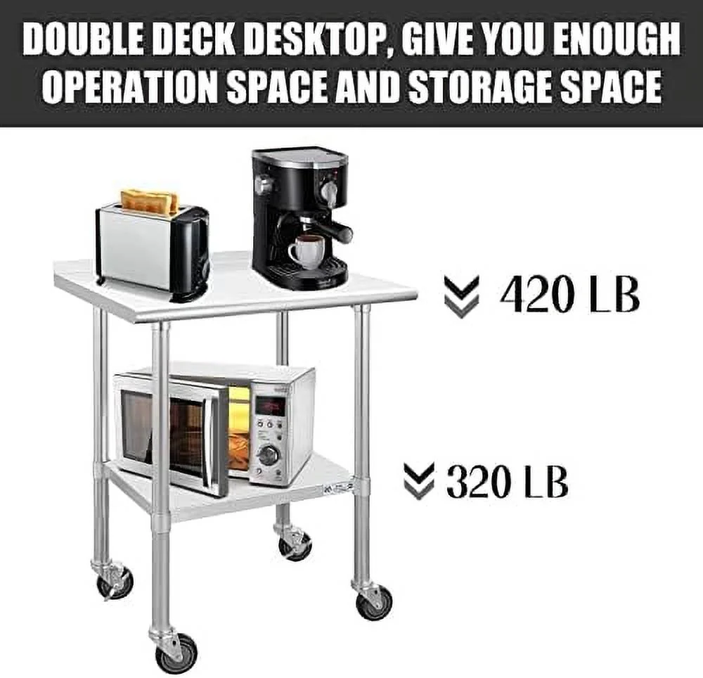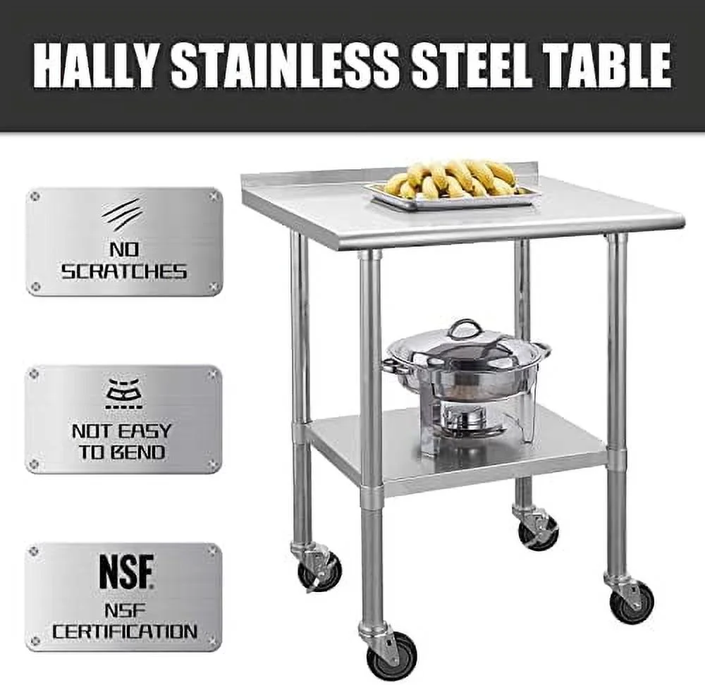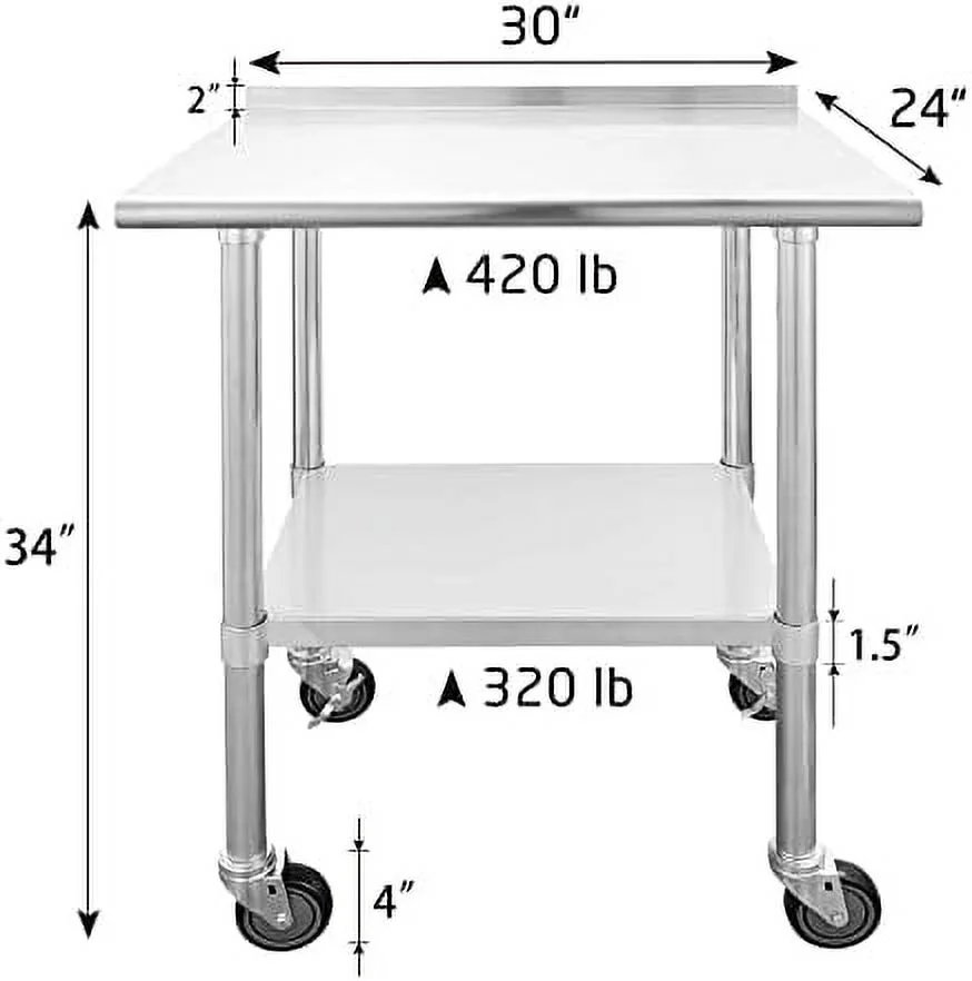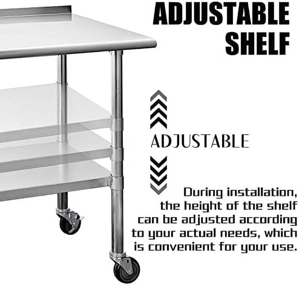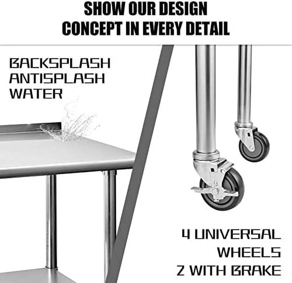 YPDCHB Stainless Steel Table with Wheels Stainless Steel Work Table for Garage NSF Kitchen Stainless Steel Prep Tables with Backsplash for Commercial Kitchen Workshop Hotel Laundry - Curated Treasures Market