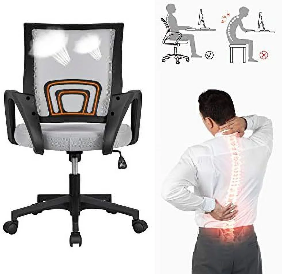 ZWNLKQG Office Chair Mid Back Swivel Lumbar Support Desk Chair Height Adjustable Computer Ergonomic Mesh Chair with Armrest Black 2-Pack - Curated Treasures Market