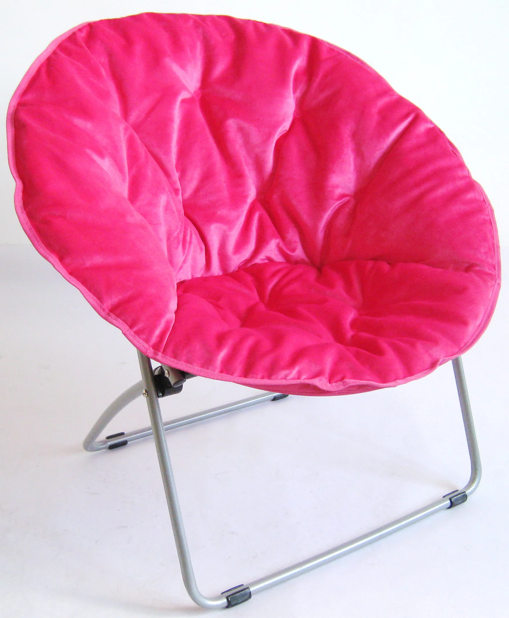 Zenithen Round Chair with High Gloss Silver Frame in Tufted Velvet Fabric, Pink - Curated Treasures Market