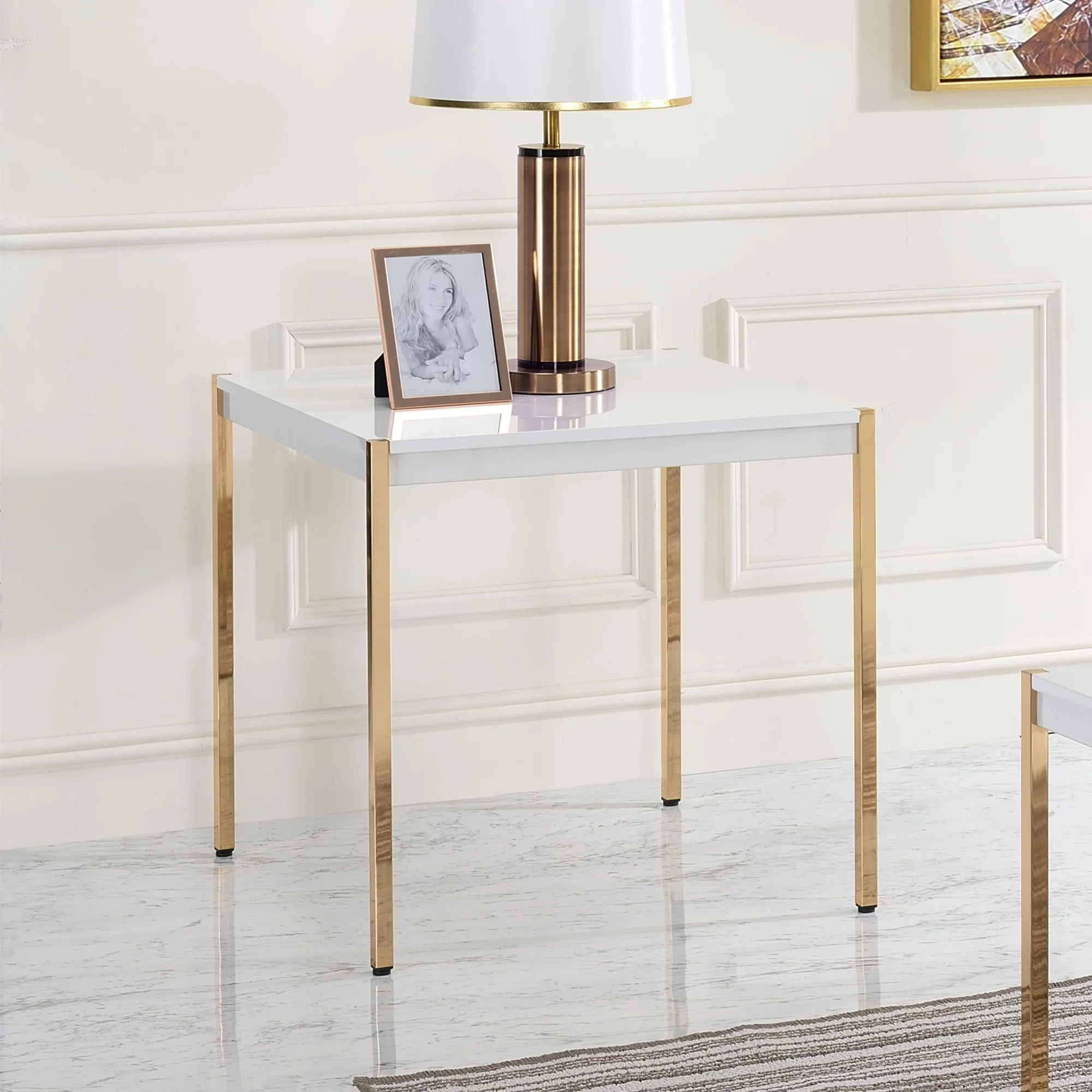 Miekor Furniture Otrac End Table in White & Gold Finish - Curated Treasures Market