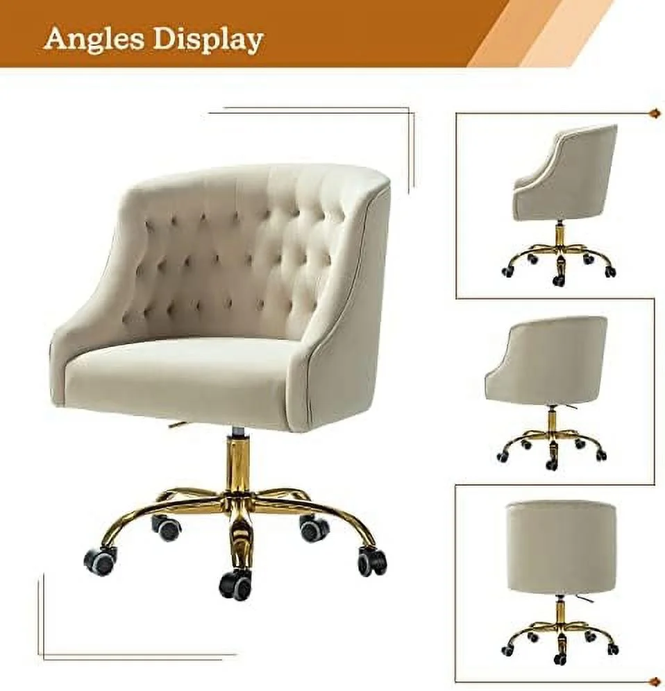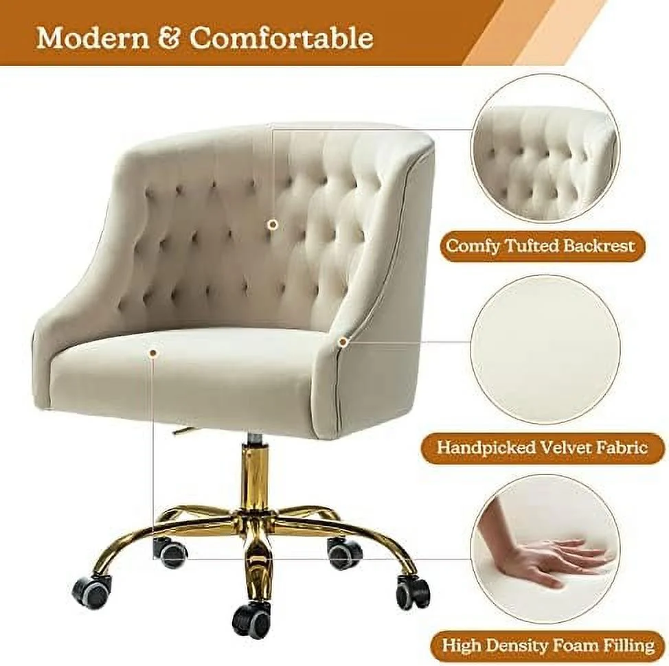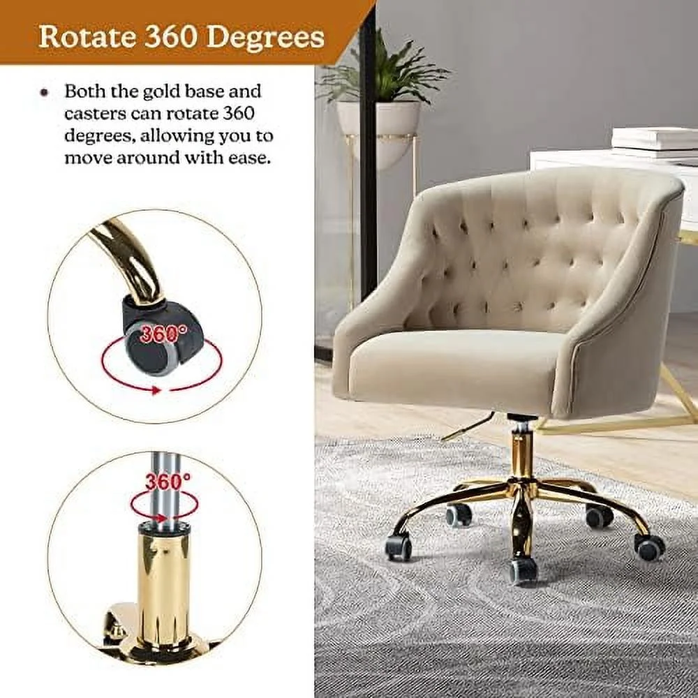HBROLJF TINA' Velvet Home Office Chair with Gold Base Comfortable Modern Cute Desk Chair Adjustable Swivel Task Chair for Living Room Bedroom Vanity Study Navy - Curated Treasures Market