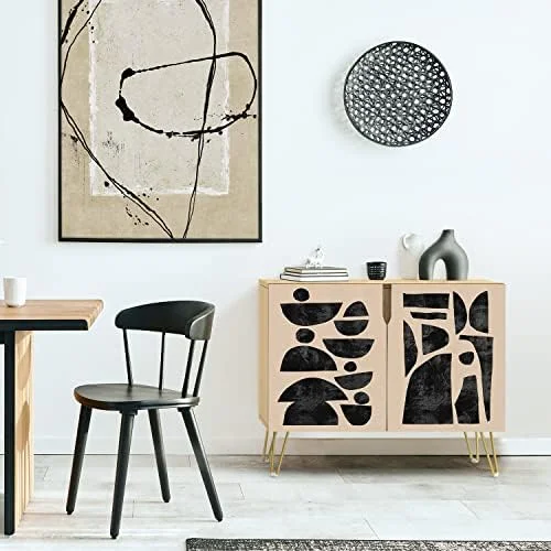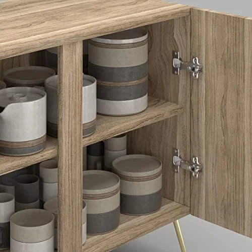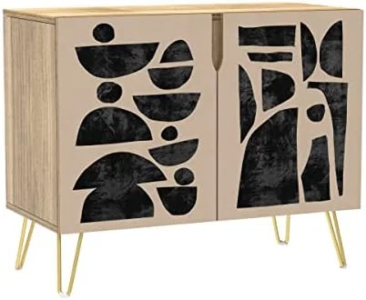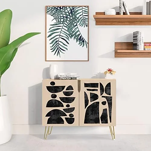 HBBOOMLIFE Sideboard Buffet Cabinet Kitchen Cabinet with 2 Doors Mid-Century Pastel Polygons Geometry Nordic Cupboard Console Table for Dining Room - 35" L x 18" W x 29" - Curated Treasures Market