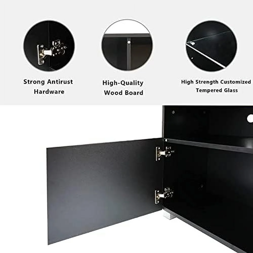 CKPFVY LED TV Stand for 75/80 inch TV Modern Television Table Center Media Console with Drawer and Led Lights High Glossy Entertainment Center for Living Game Room Bedroom(Black) - Curated Treasures Market