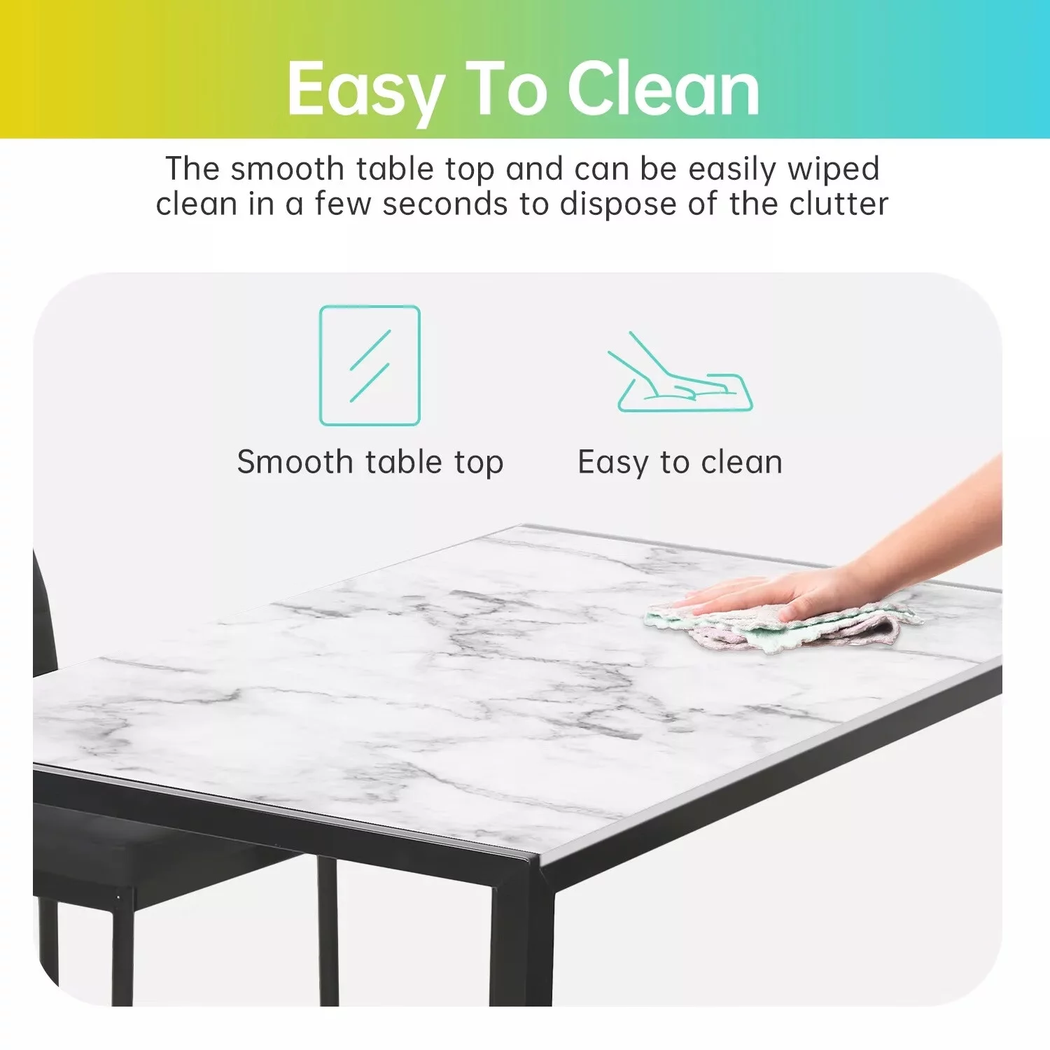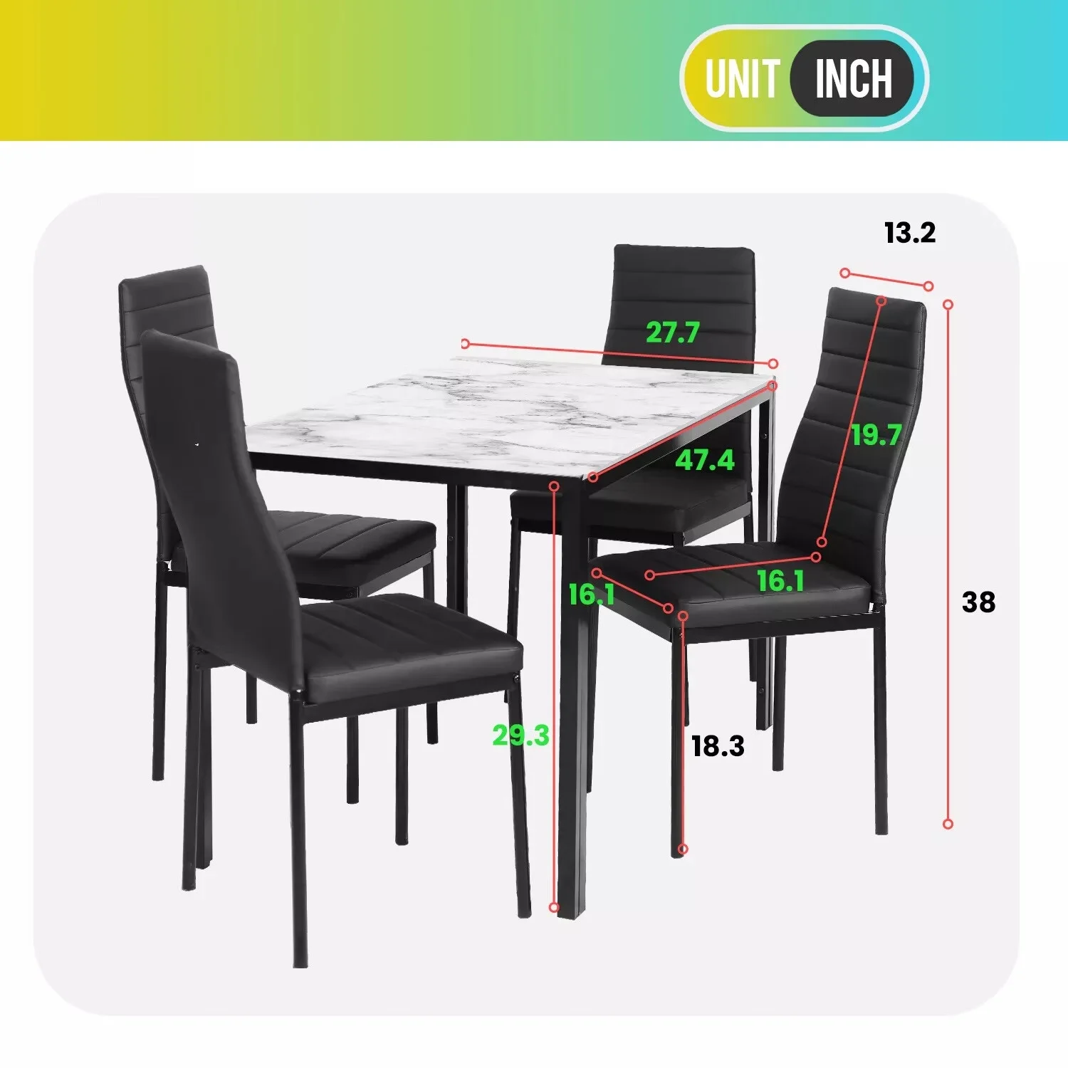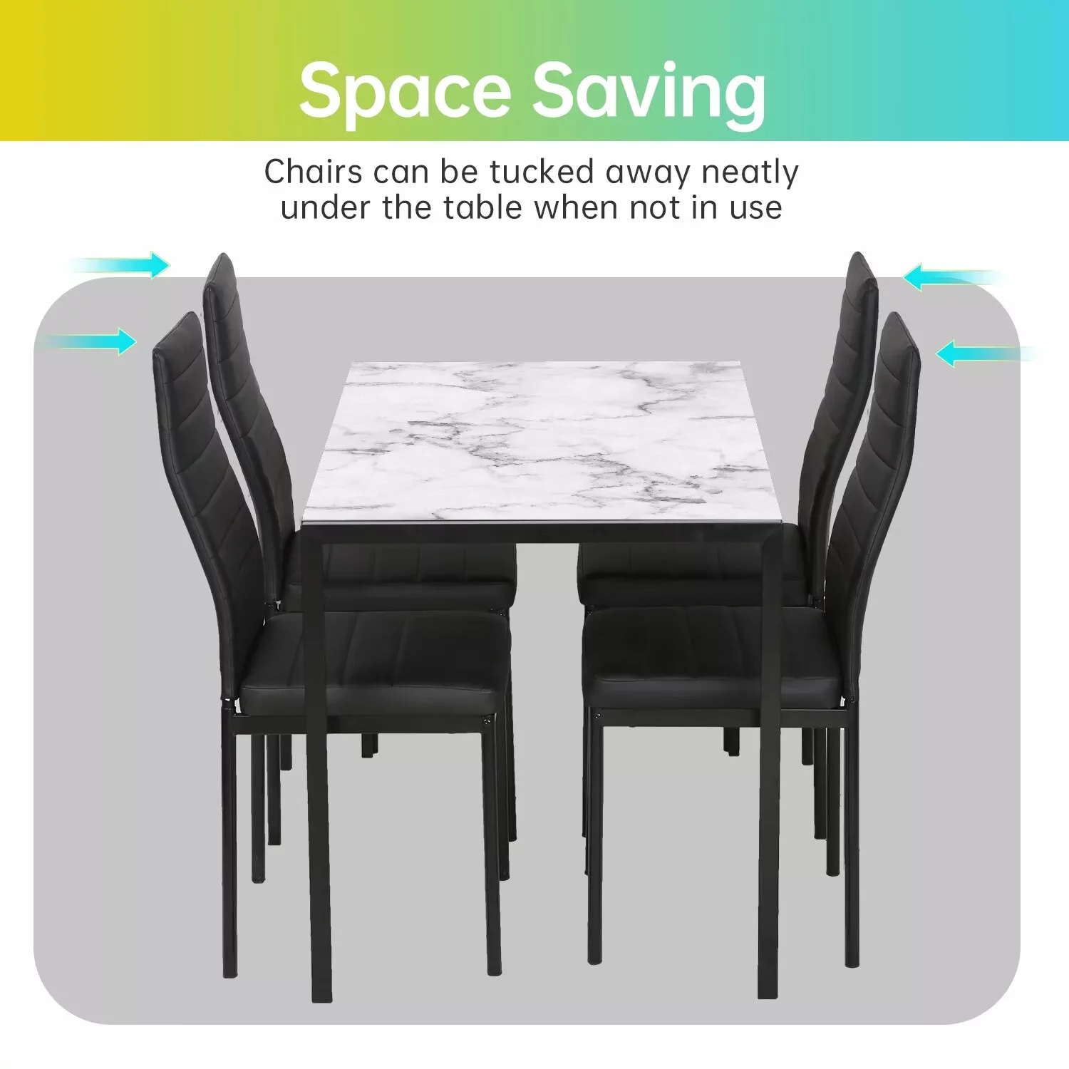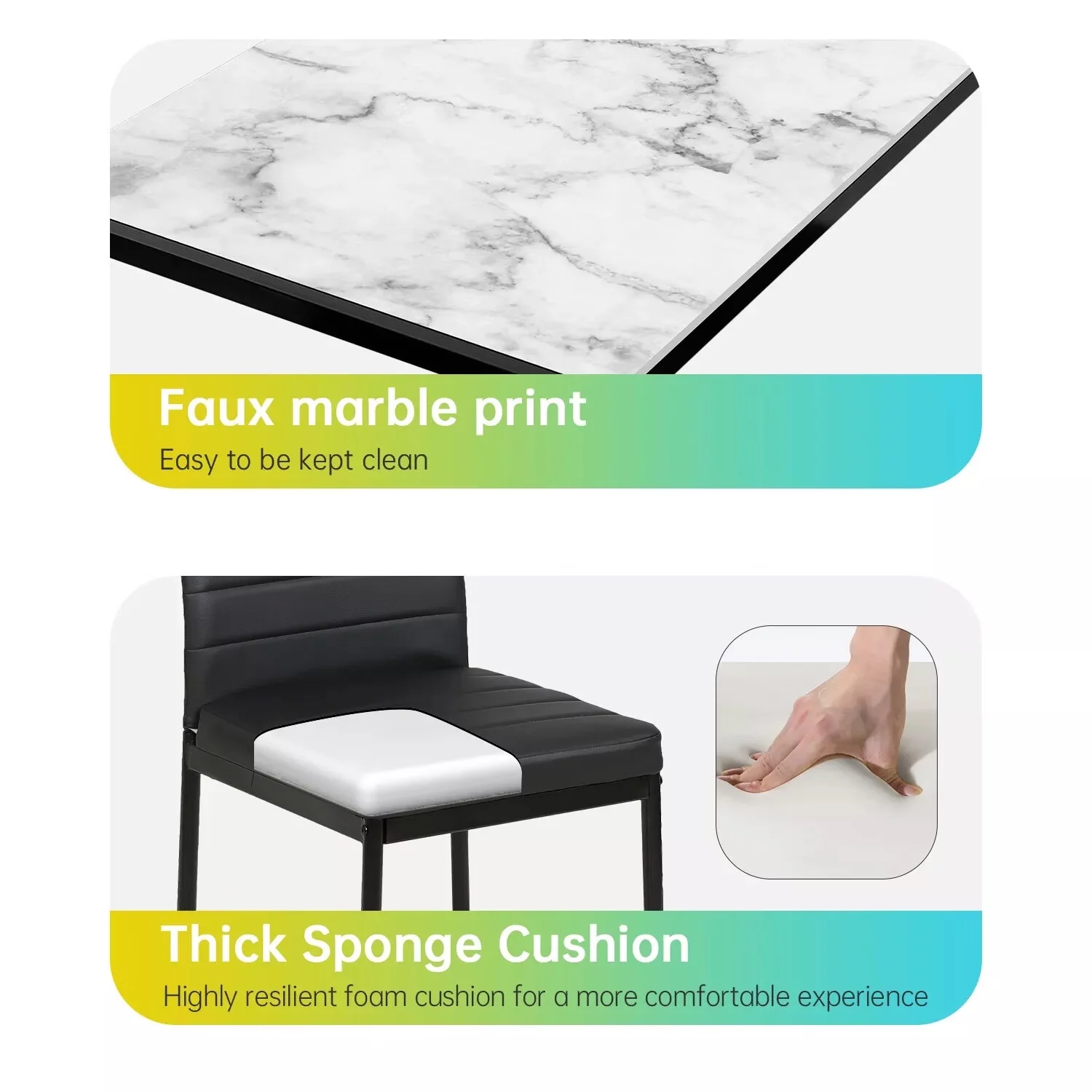 YRLLENSDAN Rectangle Kitchen Table Sets with Chairs 5 Piece, Small Dining Table Set 5 Piece White With Faux Leather Metal Chairs Dining Room Table Set for Small Spaces Kitchen - Curated Treasures Market