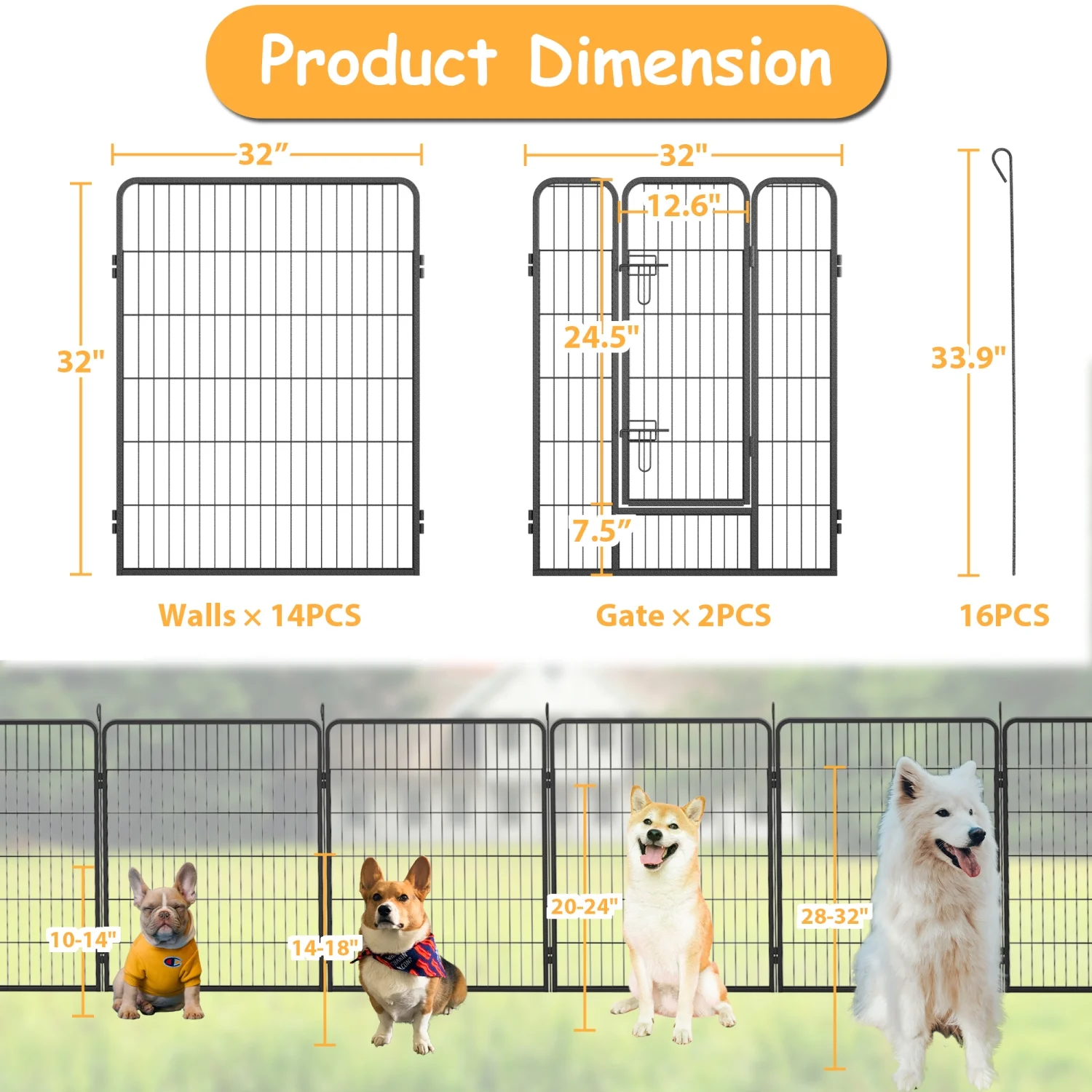 JHOOTUUO Heavy Duty Dog Pens Outdoor Dog Fence Dog Playpen for Large Dogs 40”Dog Kennel Outdoor Pet Playpen with Doors 8 Panels Metal Exercise Pens Puppy Playpen Temporary Camping Fence - Curated Treasures Market