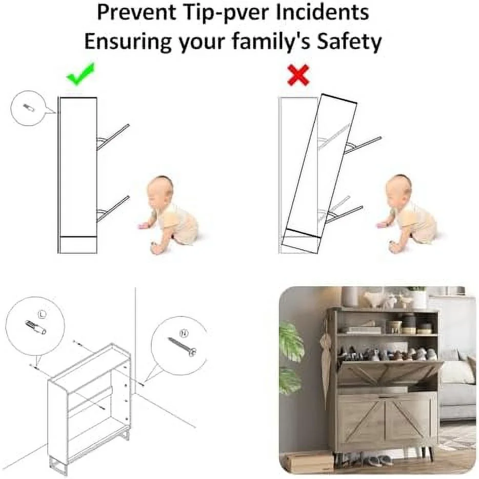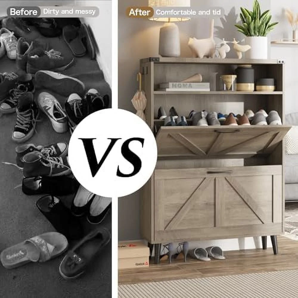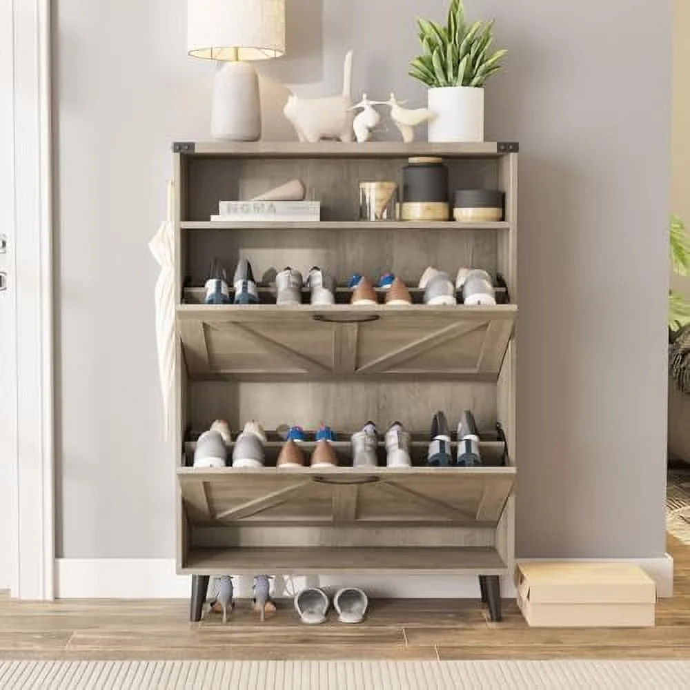 TJCGDTY Shoe Cabinet with 2 Flip Drawers Shoe Cabinet for Entryway Freestanding Shoe Cabinet Organizer with Open Narrow Farmhouse Shoe Rack with Legs Brown - Curated Treasures Market