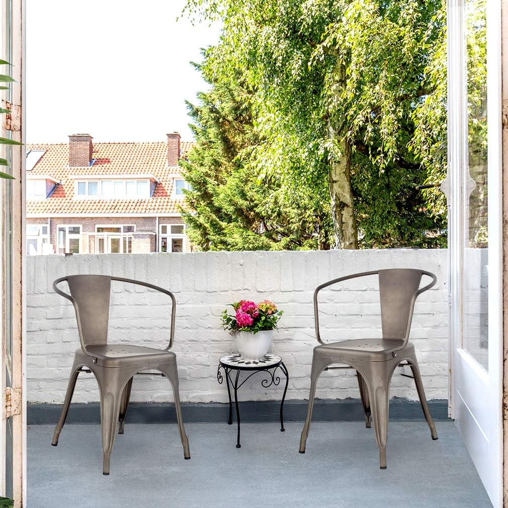 YRLLENSDAN Dining Chairs Set of 4 Metal Chair Indoor Outdoor Chairs Patio Chairs Kitchen Dining Chairs 18 Inch Seat Height Tolix Side Metal Stackable Bar Chairs 330LBS Weight Capacity,Bronze - Curated Treasures Market