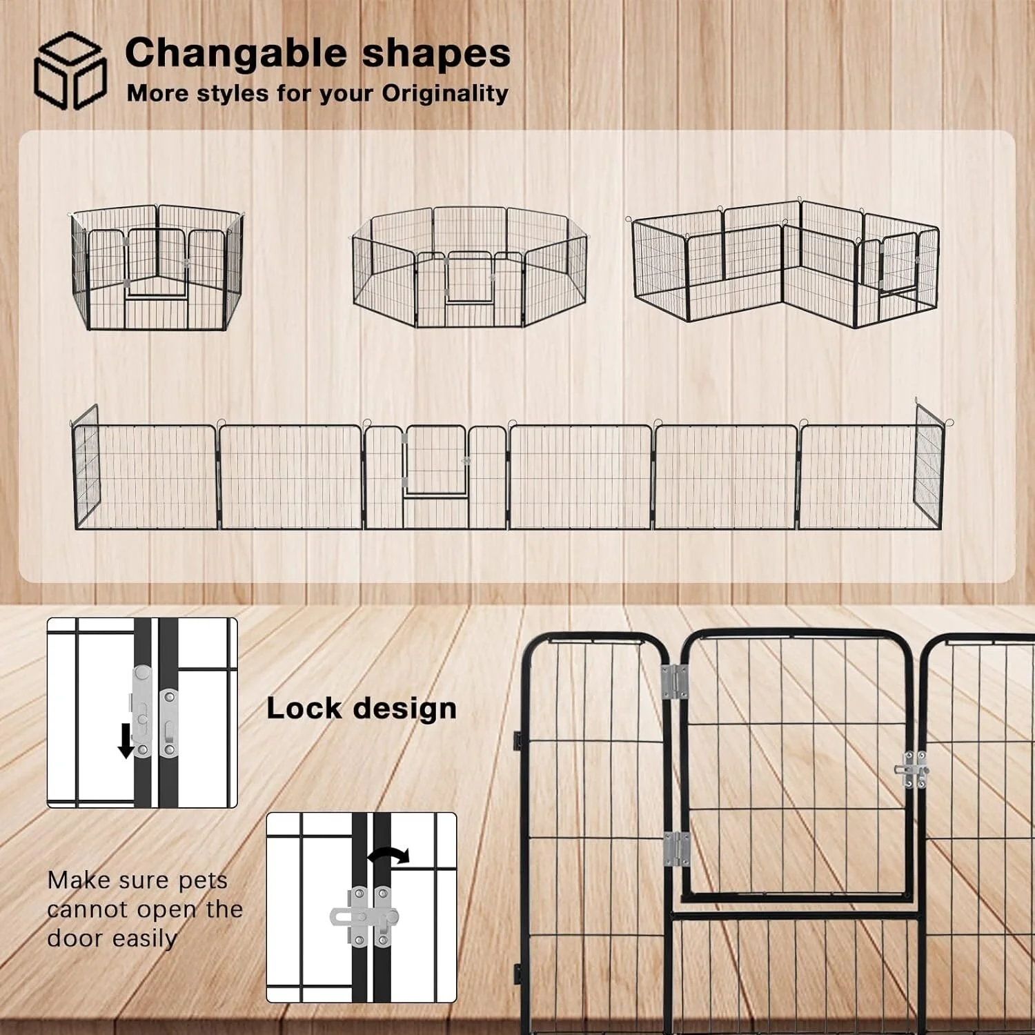 Bossin Dog Playpen Dog Kennel Pen Cage Dog Fence Exercise Pen with Doors 8/16/24 Panel 24inch 24 inch 8 Panels - Curated Treasures Market