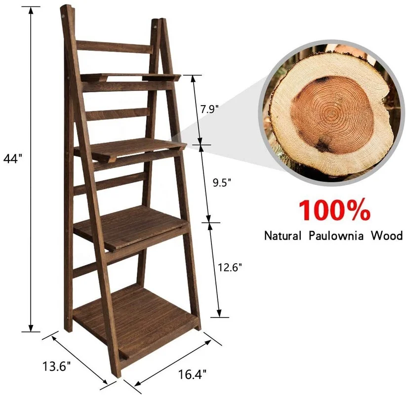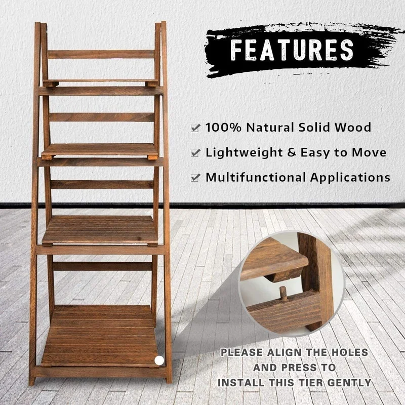 Generic 4 Tier Flower Plant Ladder Shelf Stand Storage Rack Vintage Foldable Bookshelf (Brown) - Curated Treasures Market