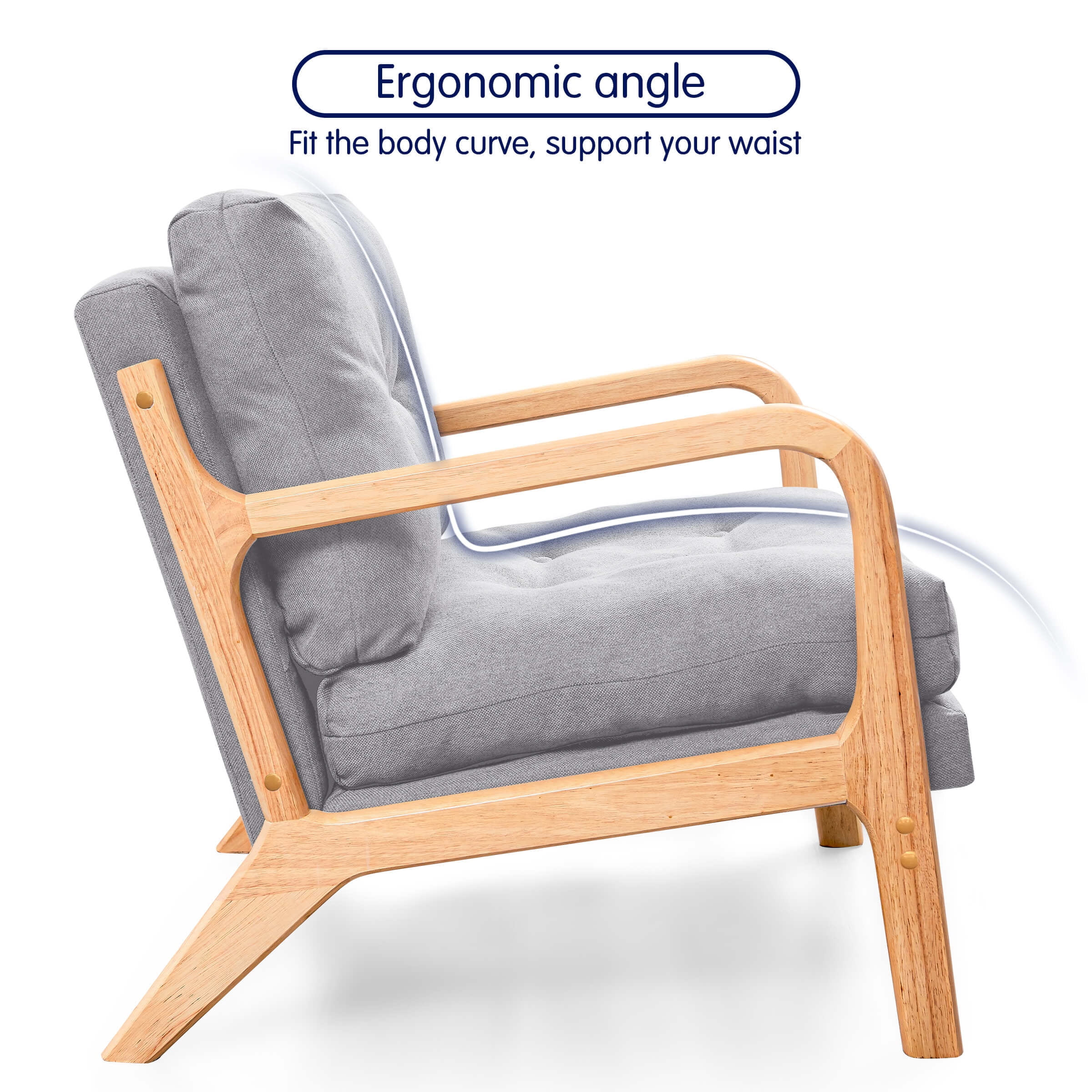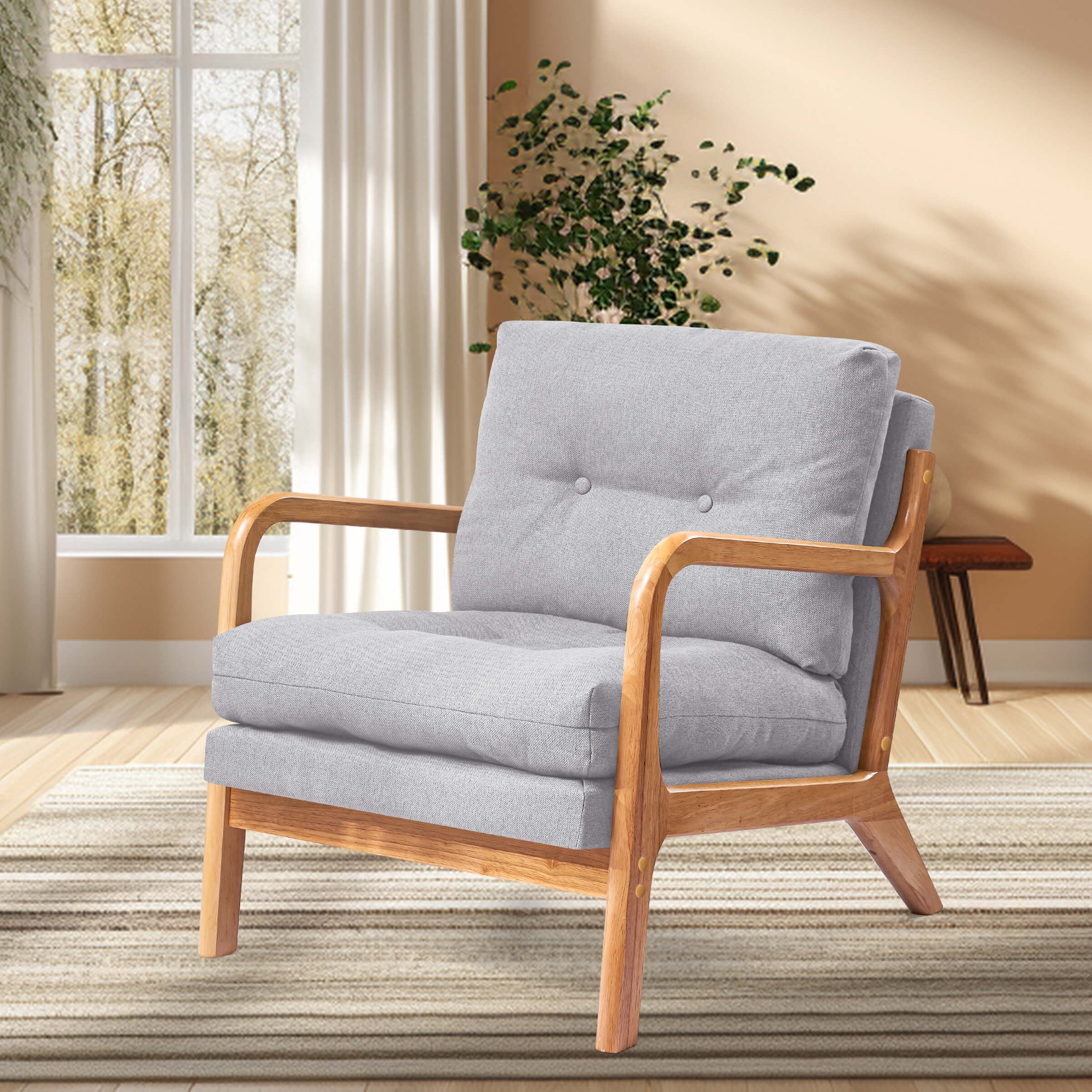 Subrtex Modern Accent Chair Linen Upholstered Arm Chairs with Solid Wood Frame, Set of 2, Gray - Curated Treasures Market