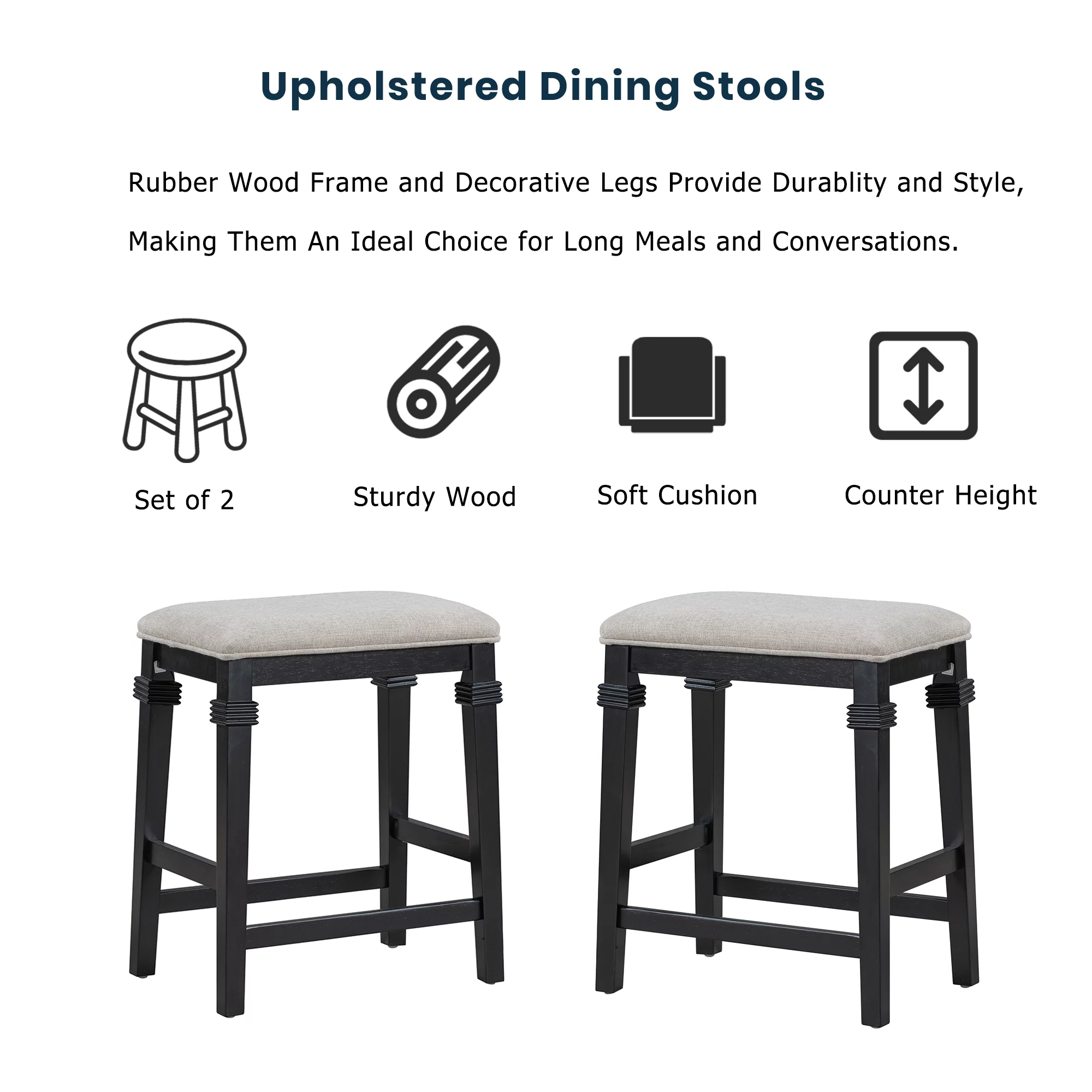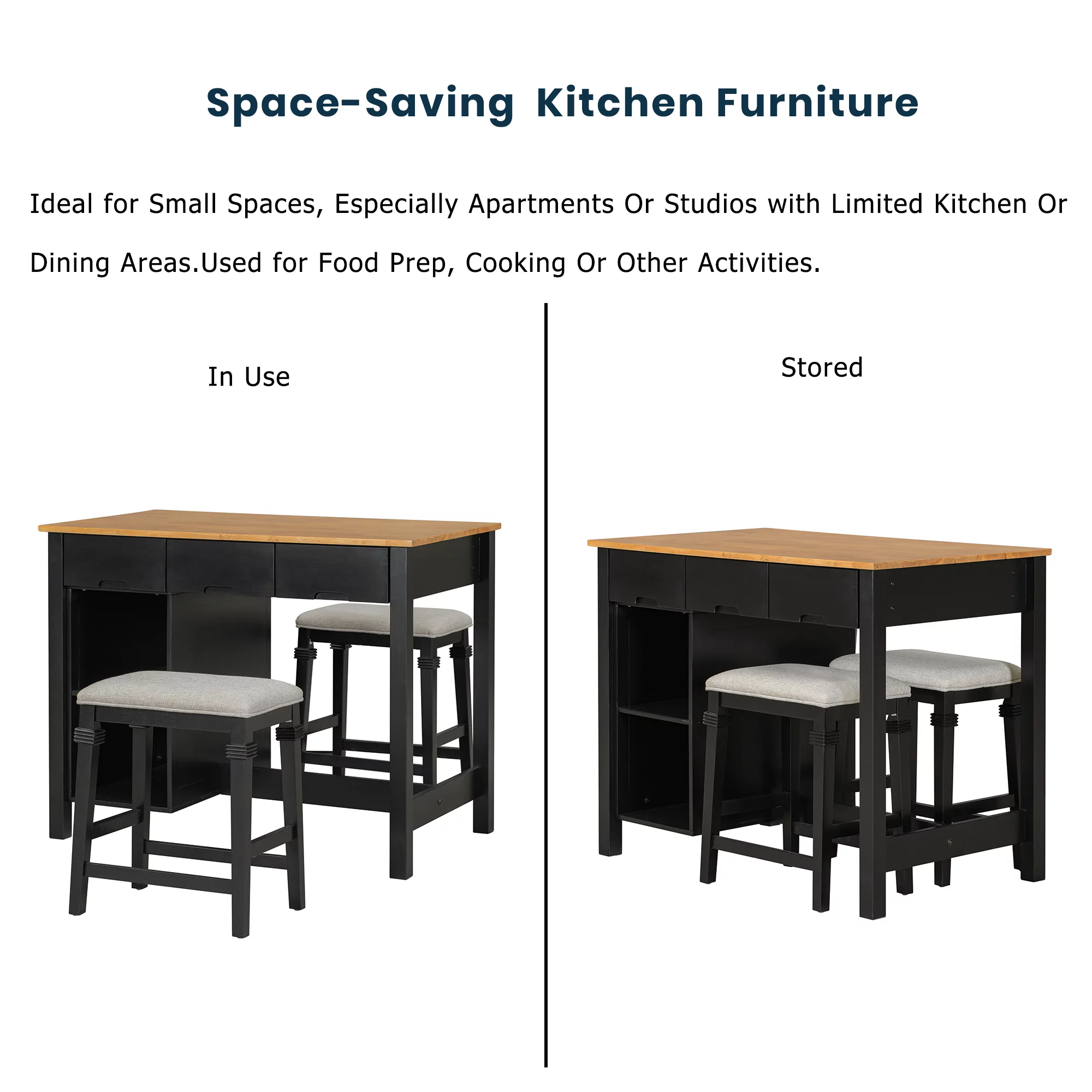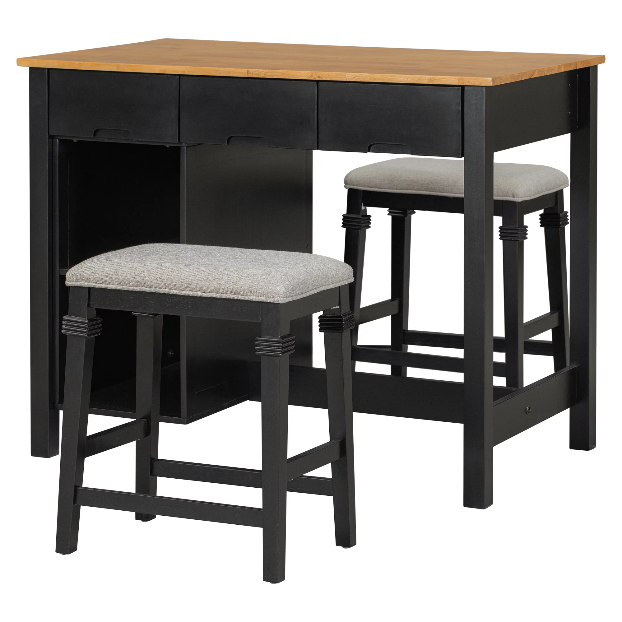 EUROCO Kitchen Island with Seatings,45" Farmhouse 3-piece Stationary Kitchen Island with 2 Shelves&3 Drawers and Wine Rack for Small Places,Black - Curated Treasures Market