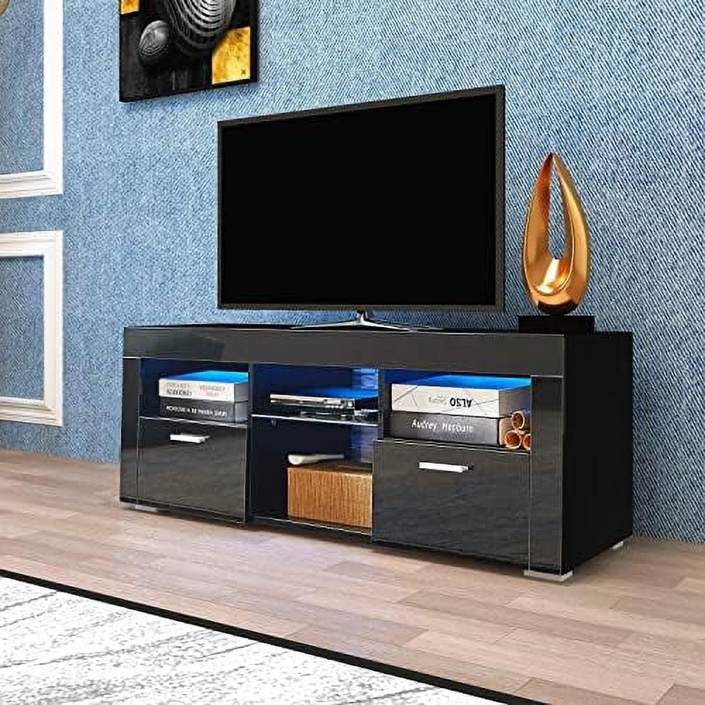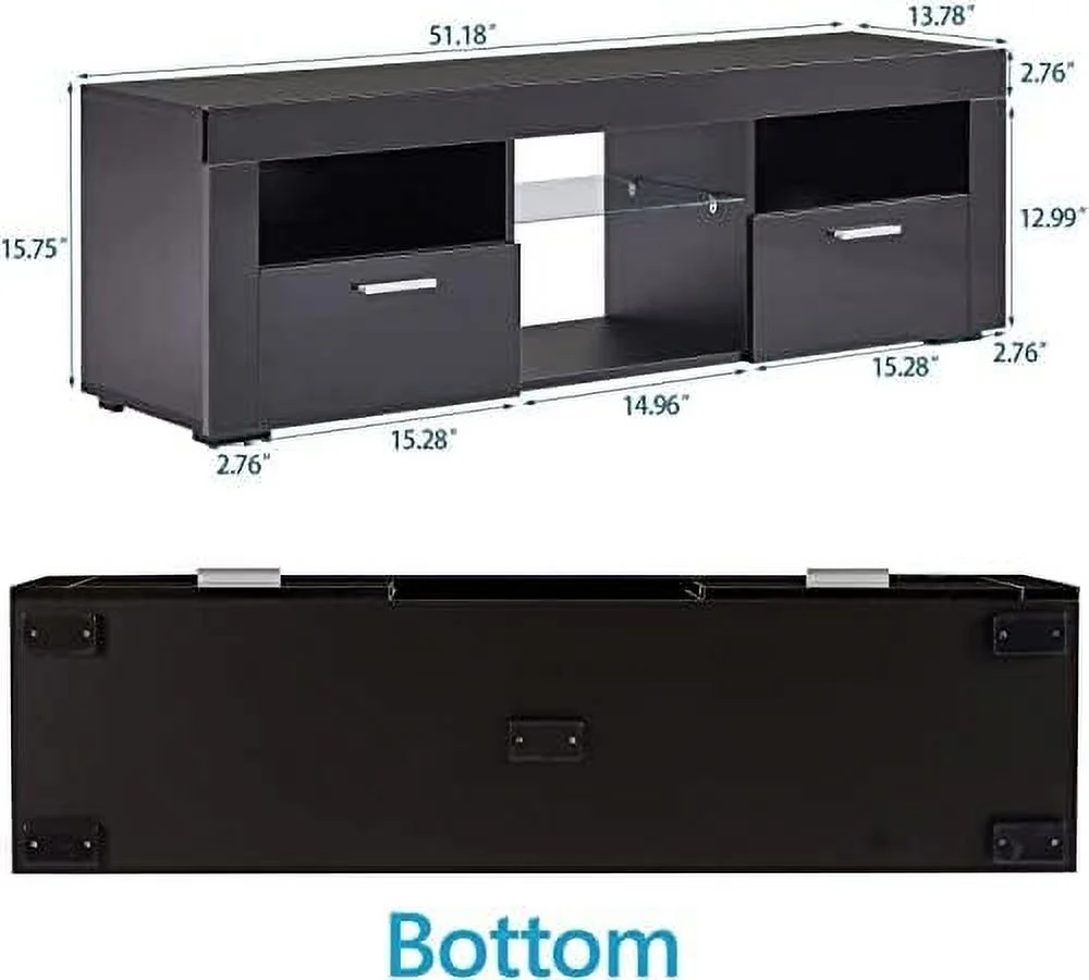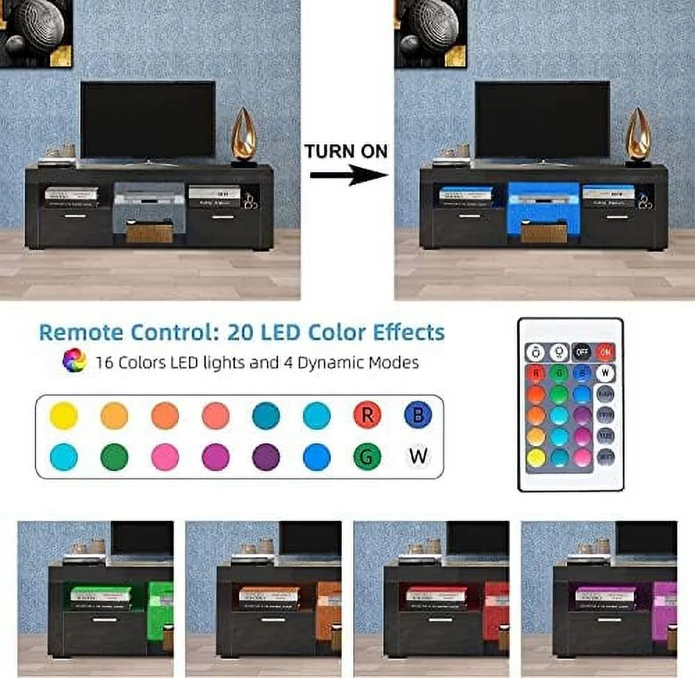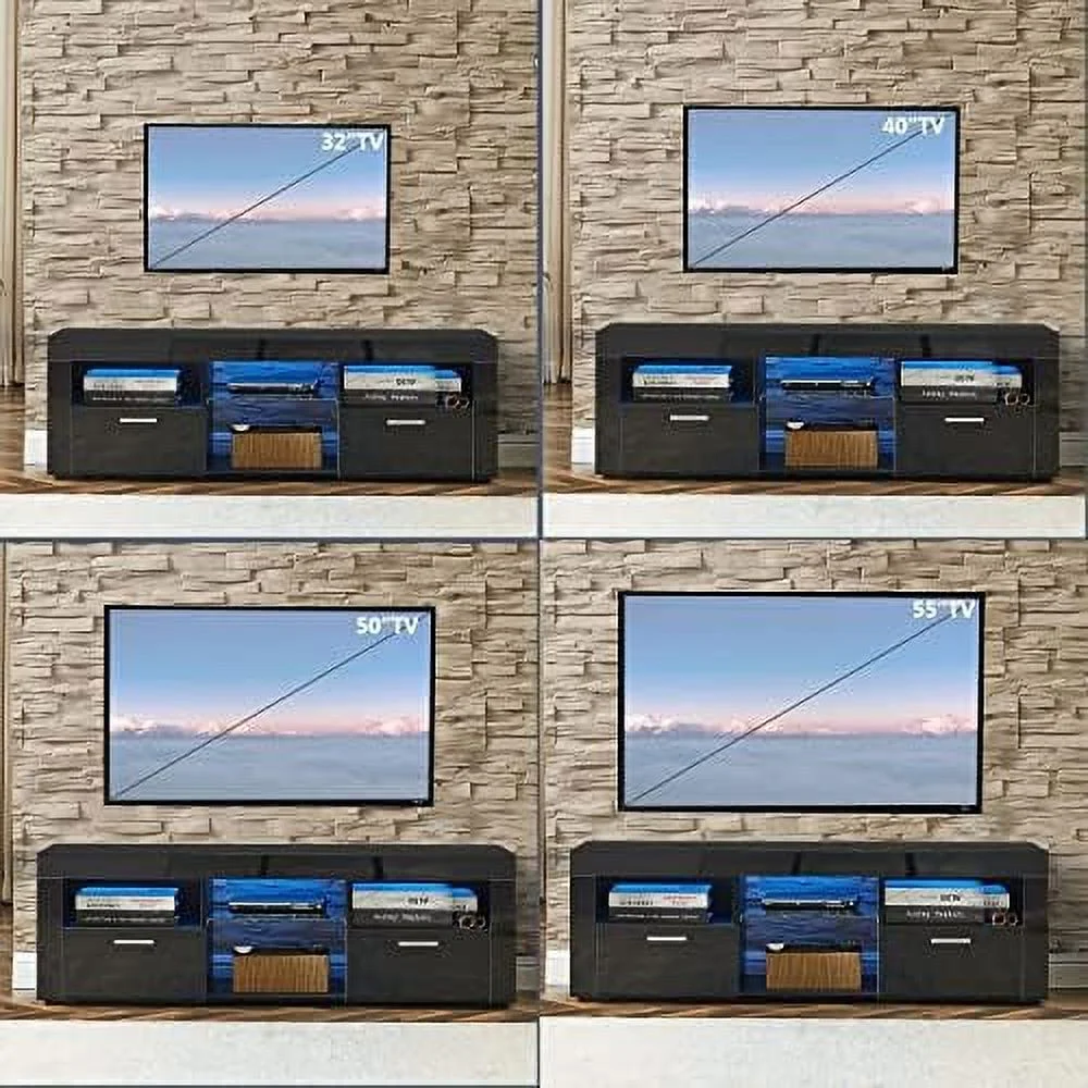 CGFHYP TV Stands 55 inch with 2 Drawer - Black TV Stand with LED Lights TV Console Table Entertainment Center for 55+ inch Media Table Television Stands for Living Room Bedroom - Curated Treasures Market