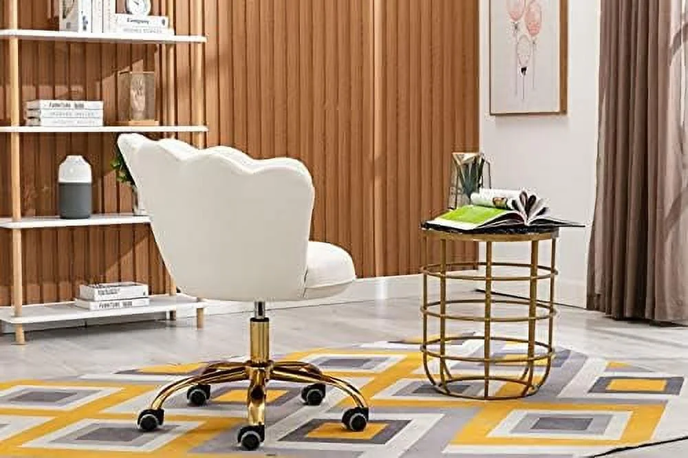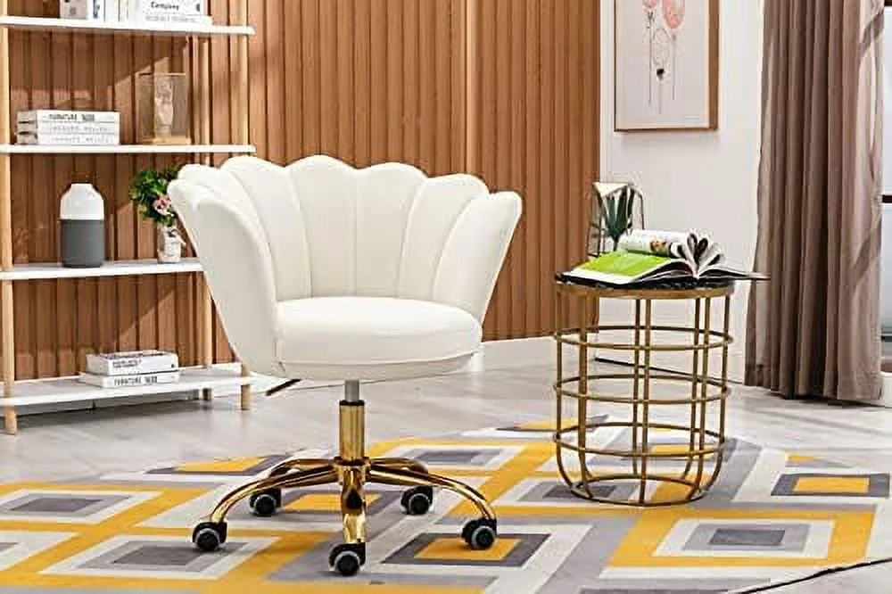 TJCGDTY Comfy Home Office Task Chair with Wheels Cute Modern Upholstered Velvet Seashell Back Adjustable Swivel Vanity Desk Chair for Women for for Girls Living Room Bedroom (White - Curated Treasures Market