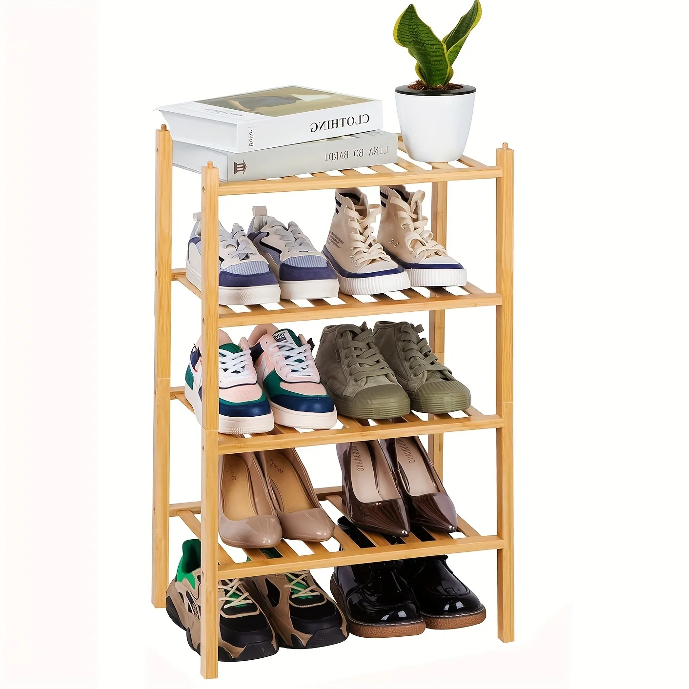 Narrow Shoe Rack for Closet,Sturdy Small Shoe Rack Organizer,4 Tier Stackable Shoe Storage for Small Space,Beautiful Natural Bamboo Shoe Rack Entryway - Curated Treasures Market