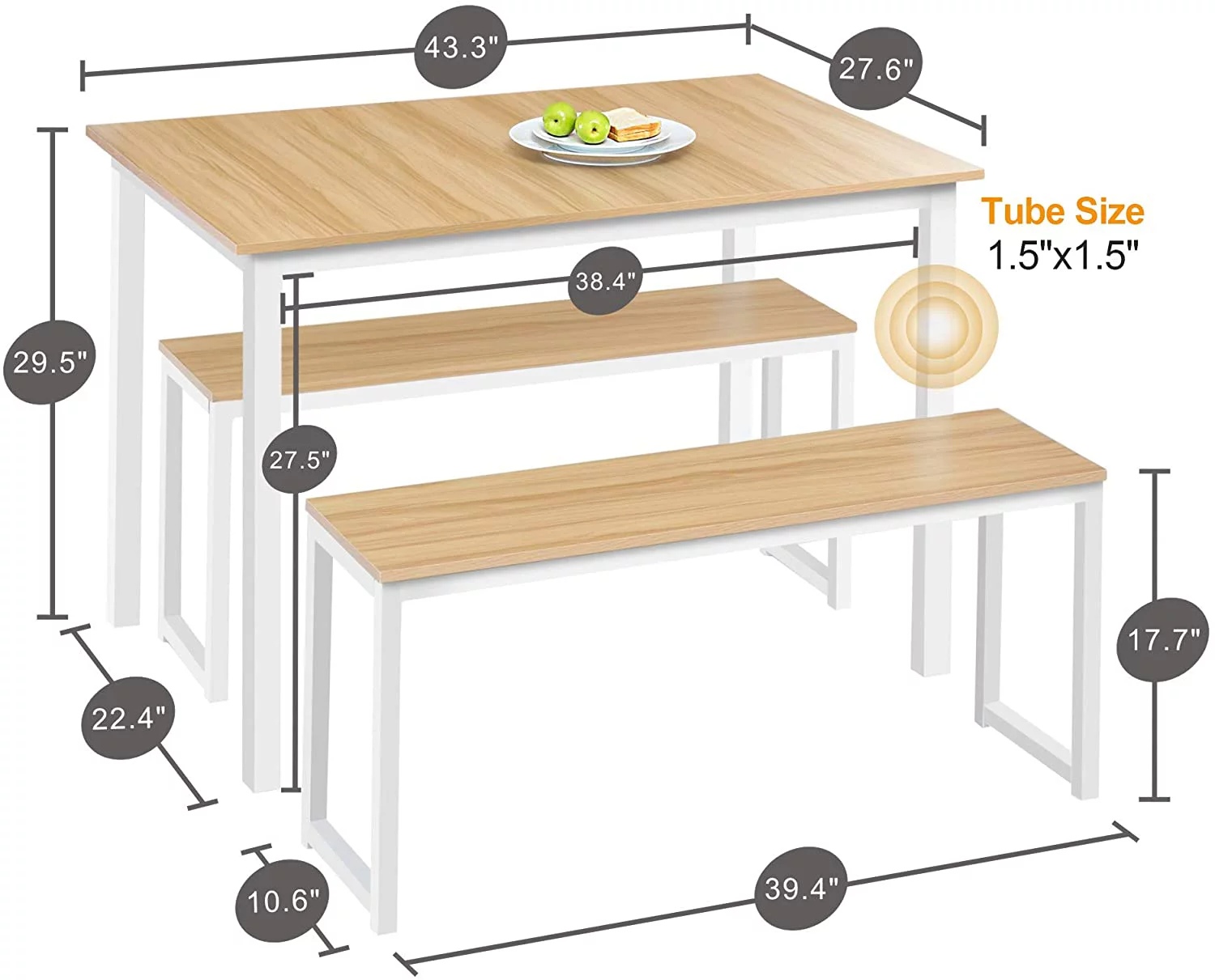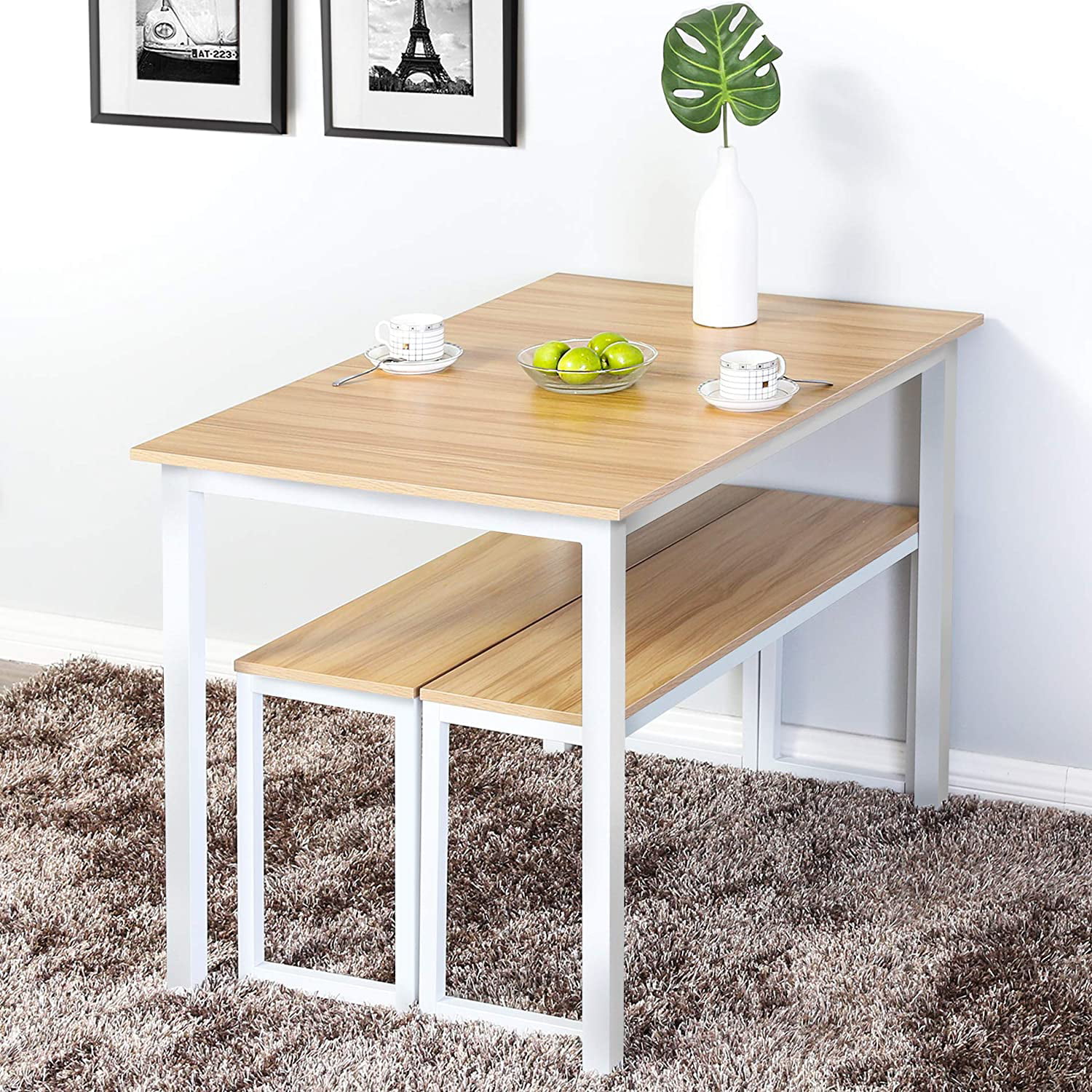 FITUEYES 3-Piece Dining Table Set with 2 Benches, White - Curated Treasures Market