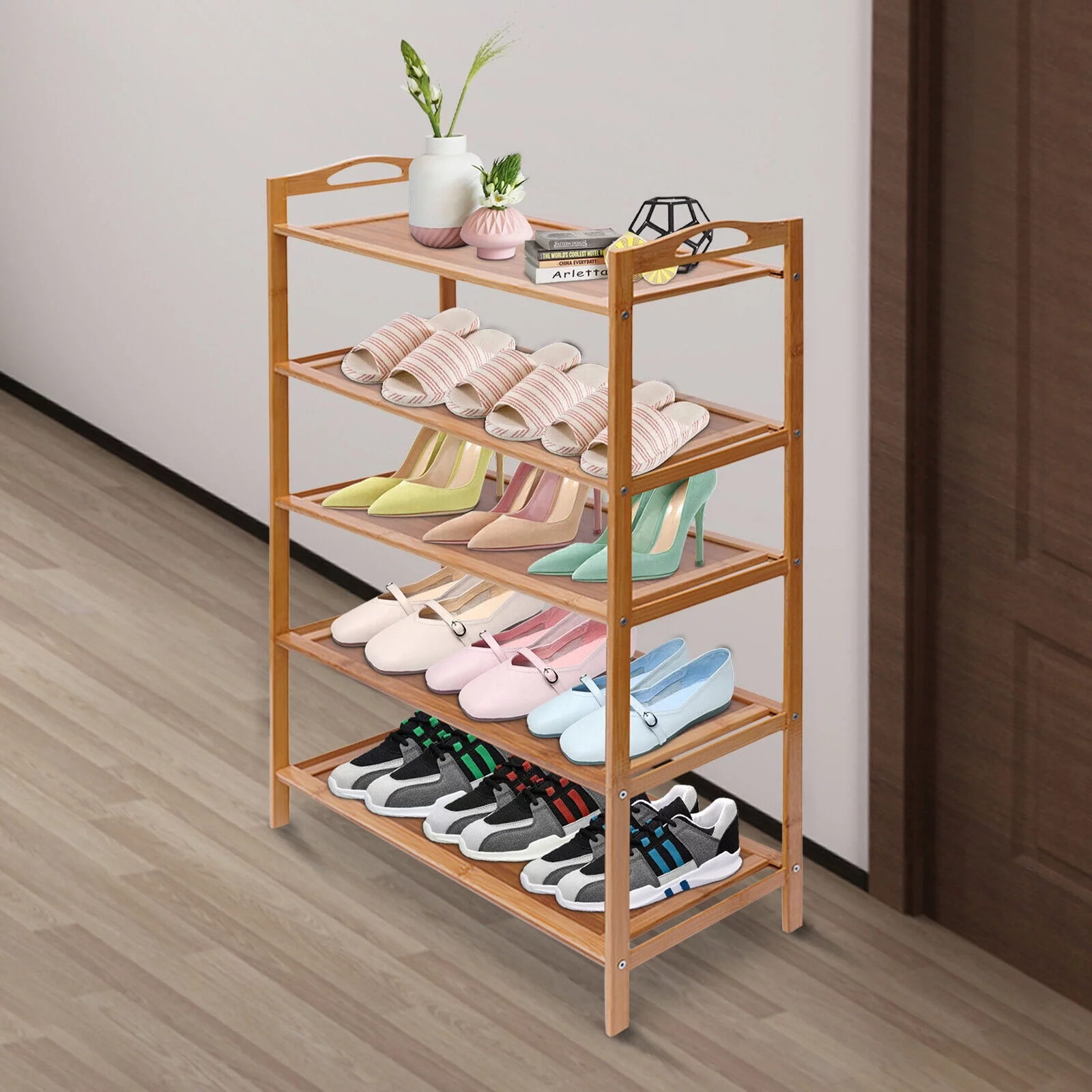 Bamboo Shoe Rack 5-Tier Shoe Storage Organizer W/Adjustable Height, Entryway Shoe Shelf for Entranceways, Living Rooms, Bedrooms, Balconies - Curated Treasures Market