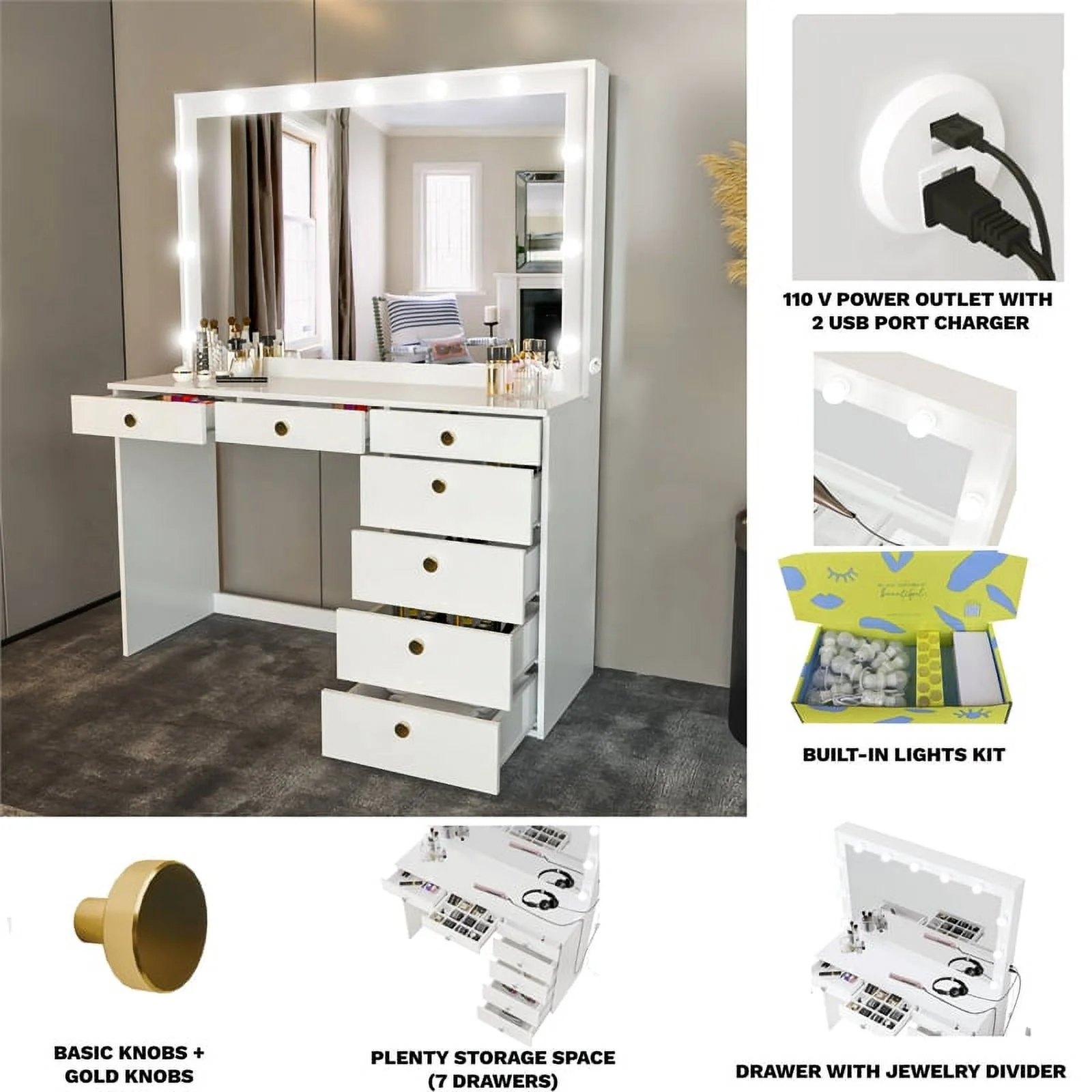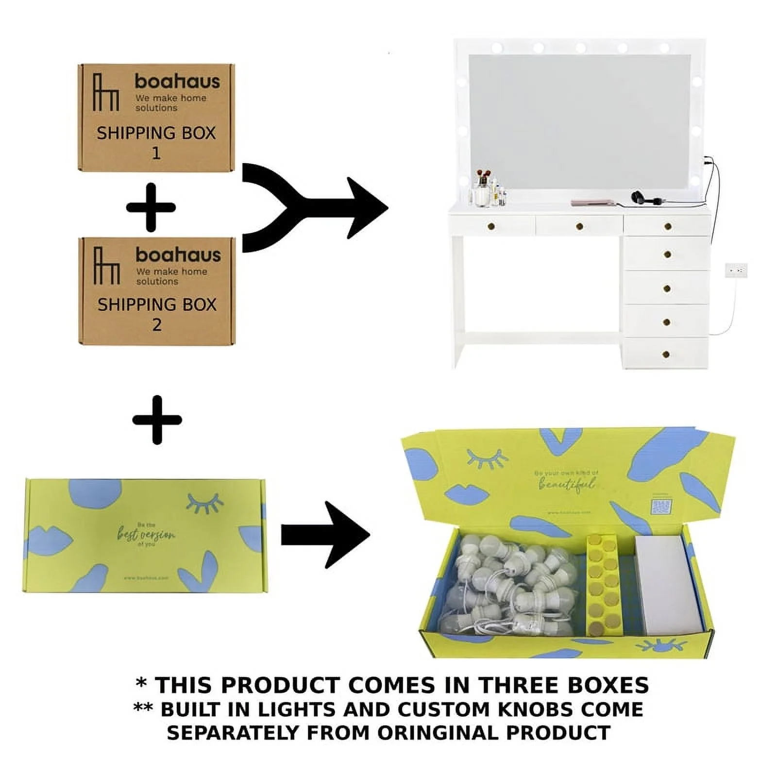 Boahaus Diana White Dressing Table Light Bulbs (Gold Knobs) - Curated Treasures Market