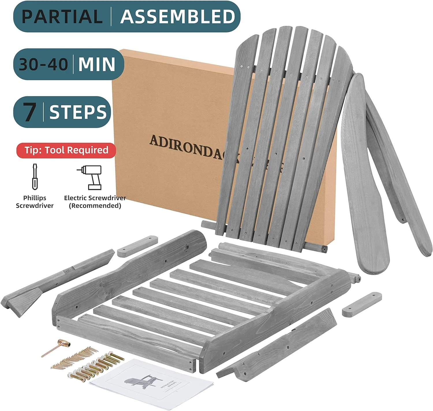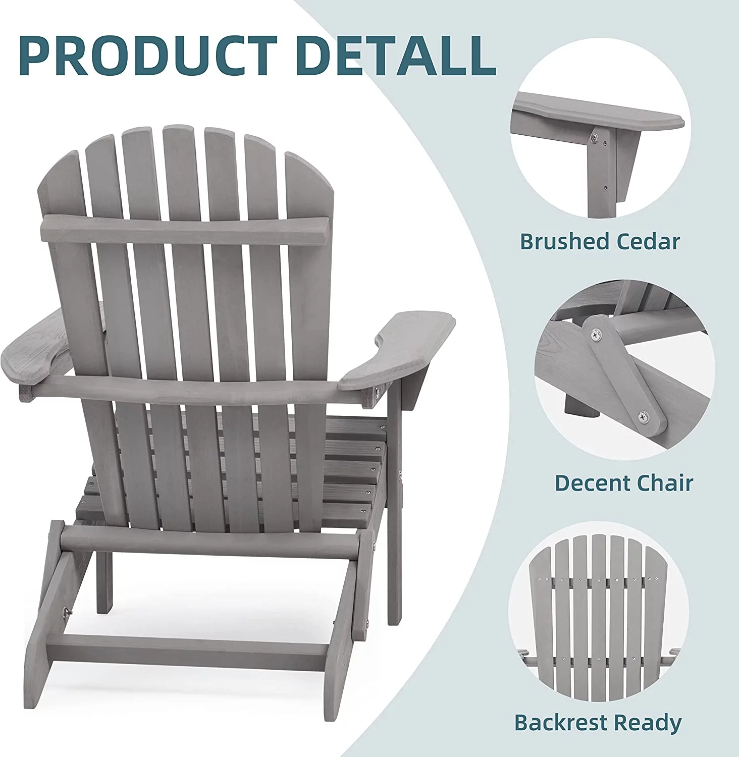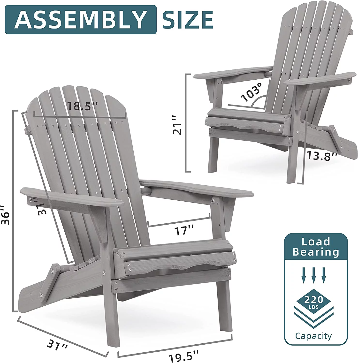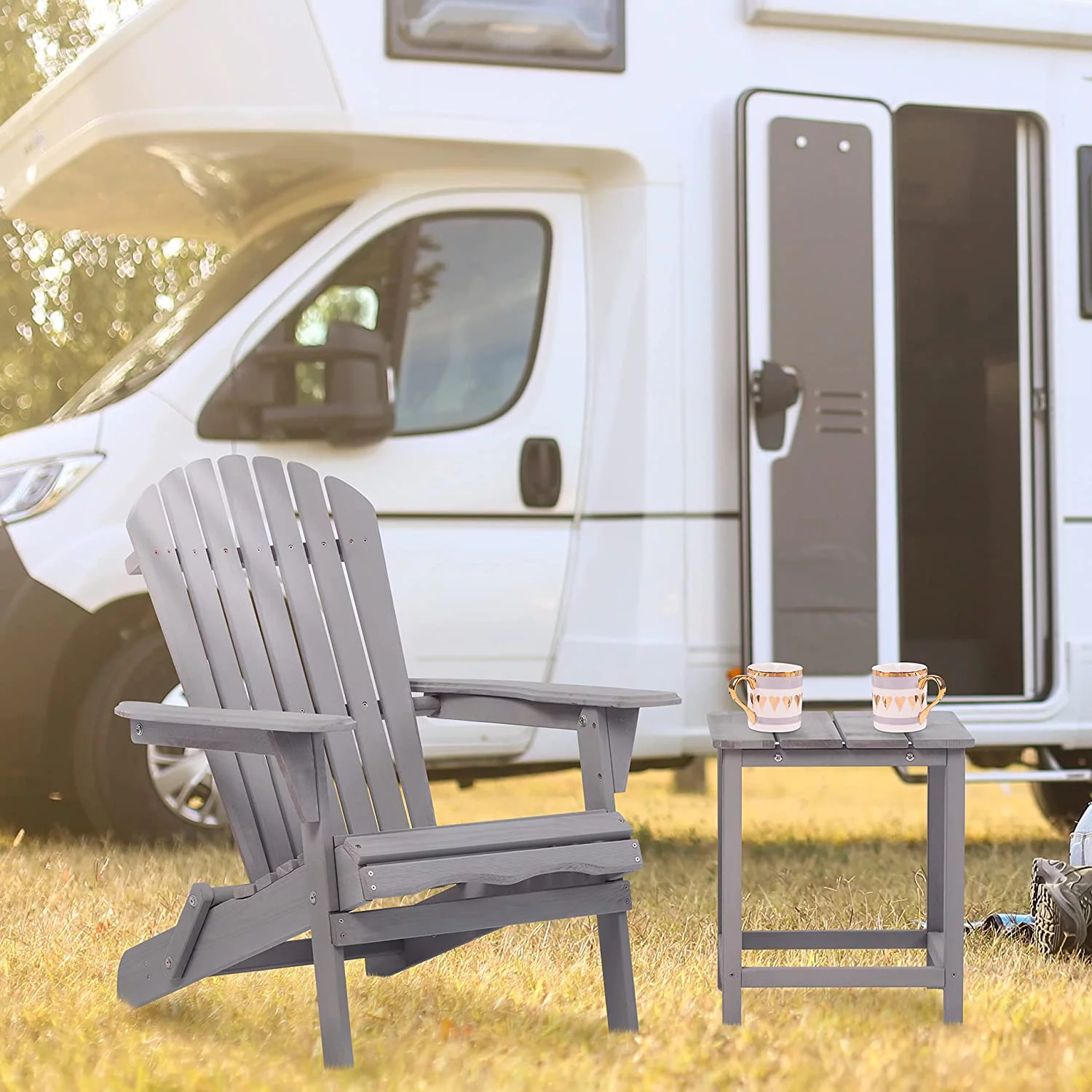 Holaki Set of 2 Outdoor Wooden Folding Adirondack Chair, Backrest Pre-Assembled, Solid Wood Lounge Patio Chair for Garden Backyard Fire Pit, Gray - Curated Treasures Market